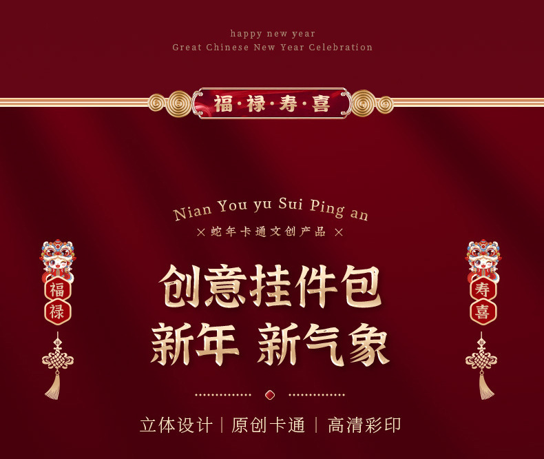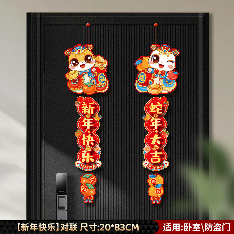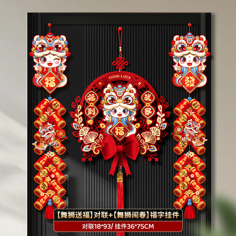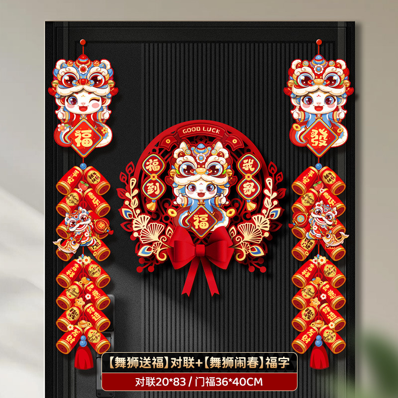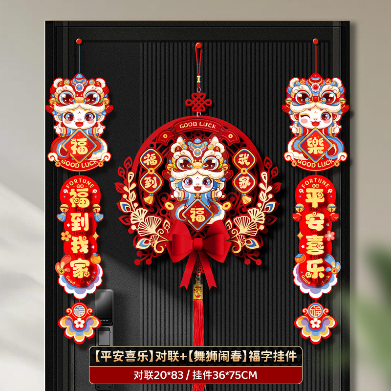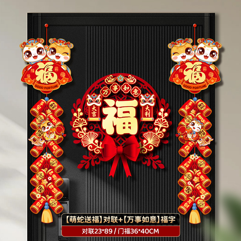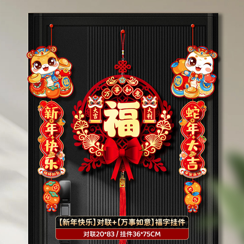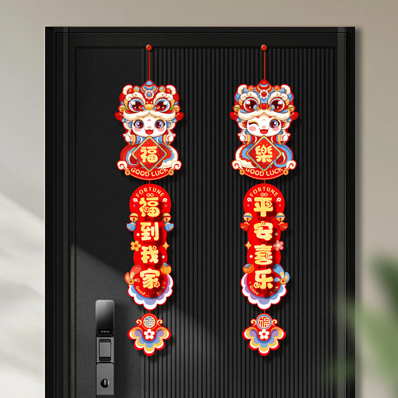 2025新款春节新年卡通毛毡布横彩福字挂饰客厅背景墙房门装饰布置