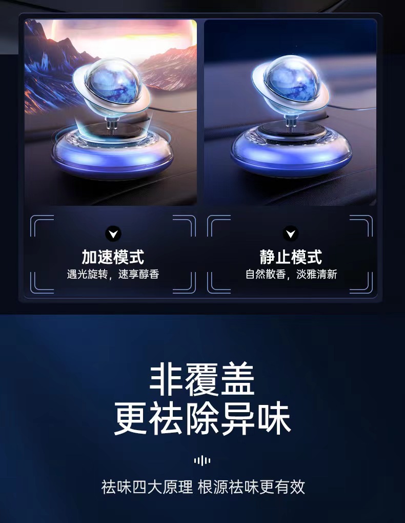 太阳能汽车香水摆件车载香薰室内除异味旋转内饰用品宇宙星球