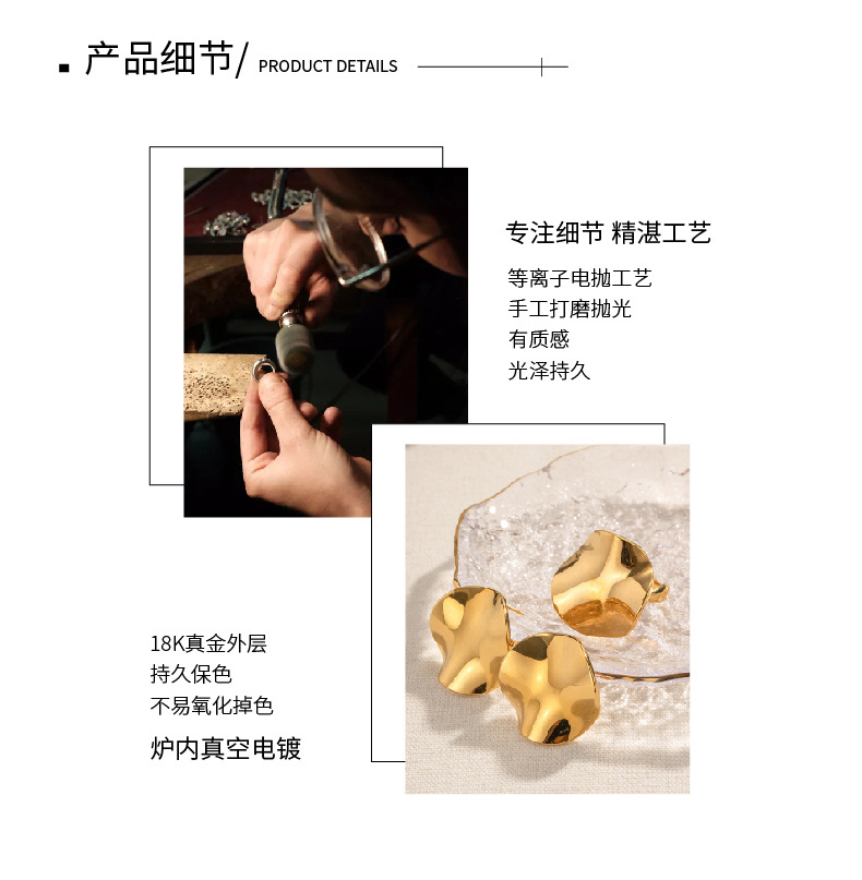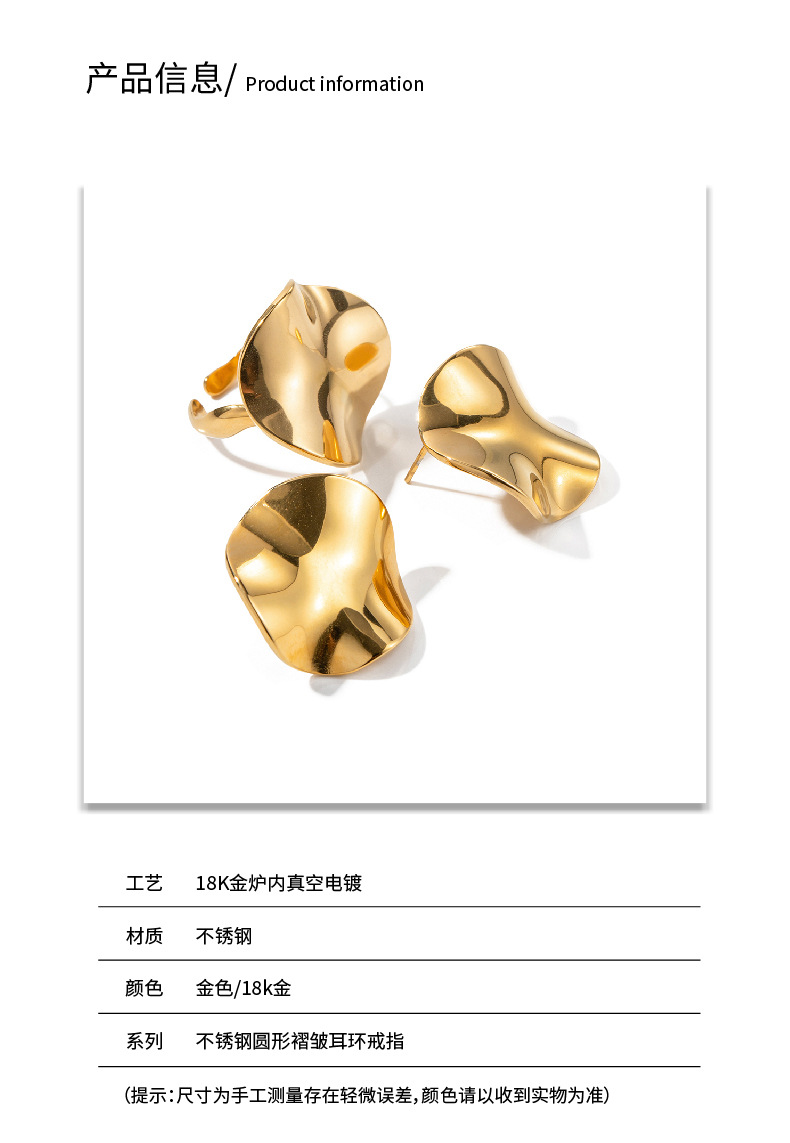亚马逊新款大光面弯曲设计感轻奢圆形褶皱耳环高级感女不掉色饰品
