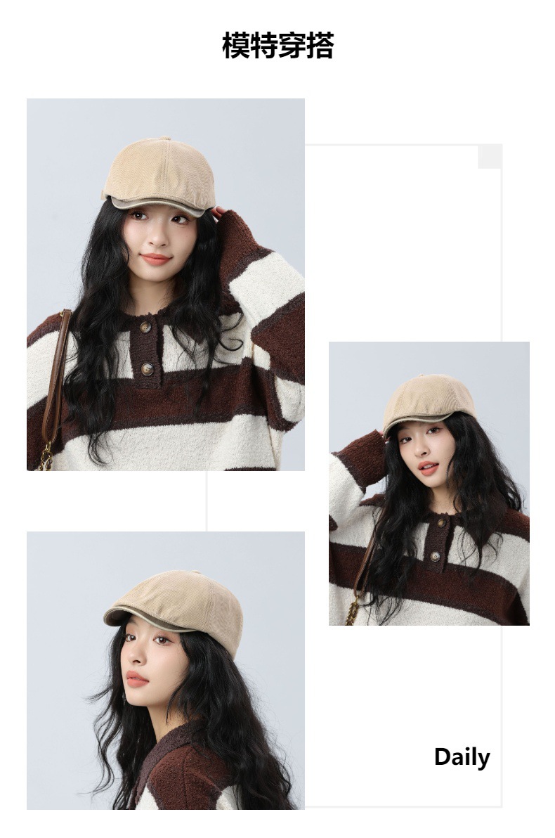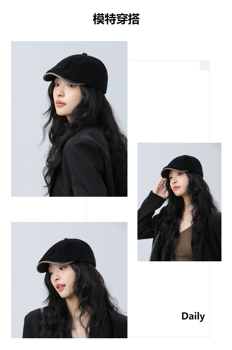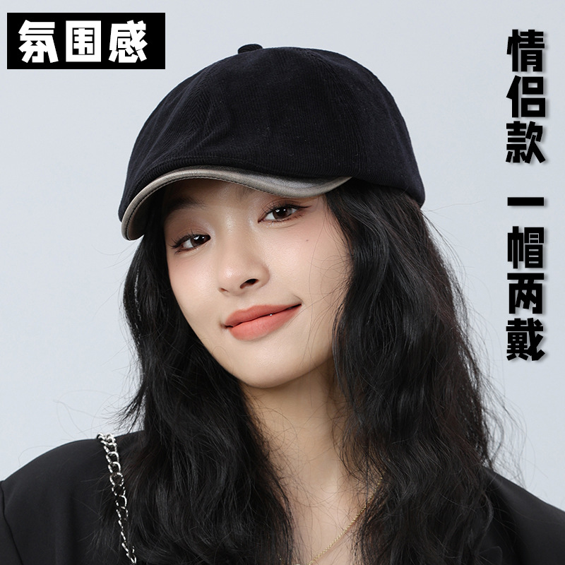 日系复古前进帽正反可戴潮款情侣帽潮人款时尚贝雷帽男女鸭舌帽子