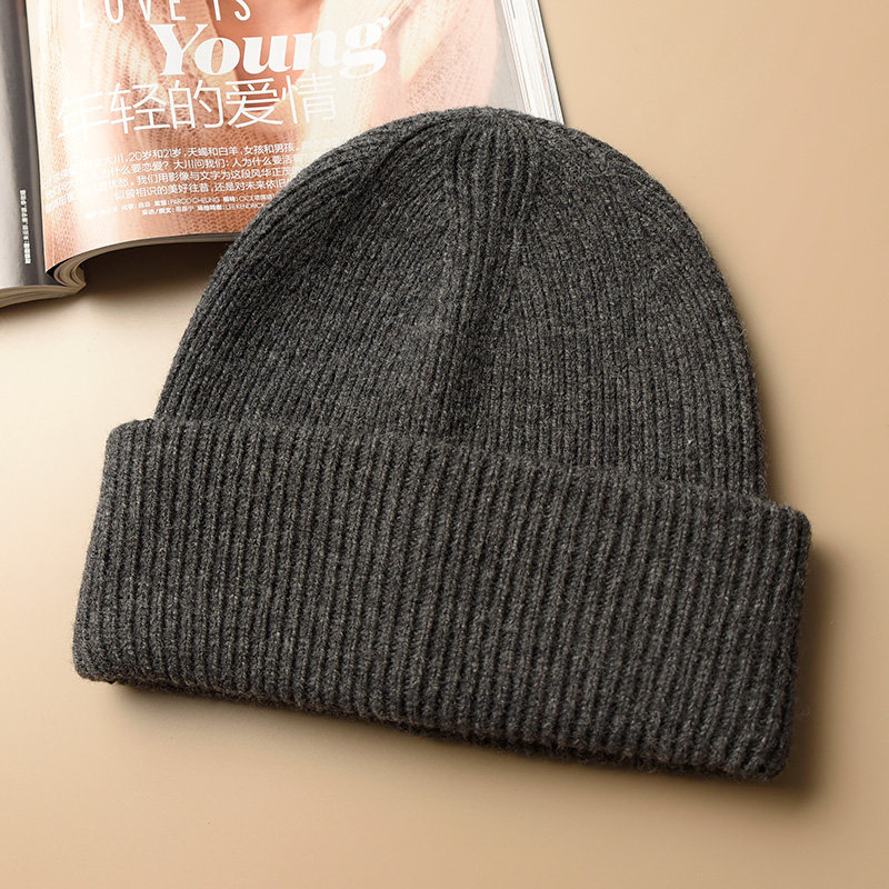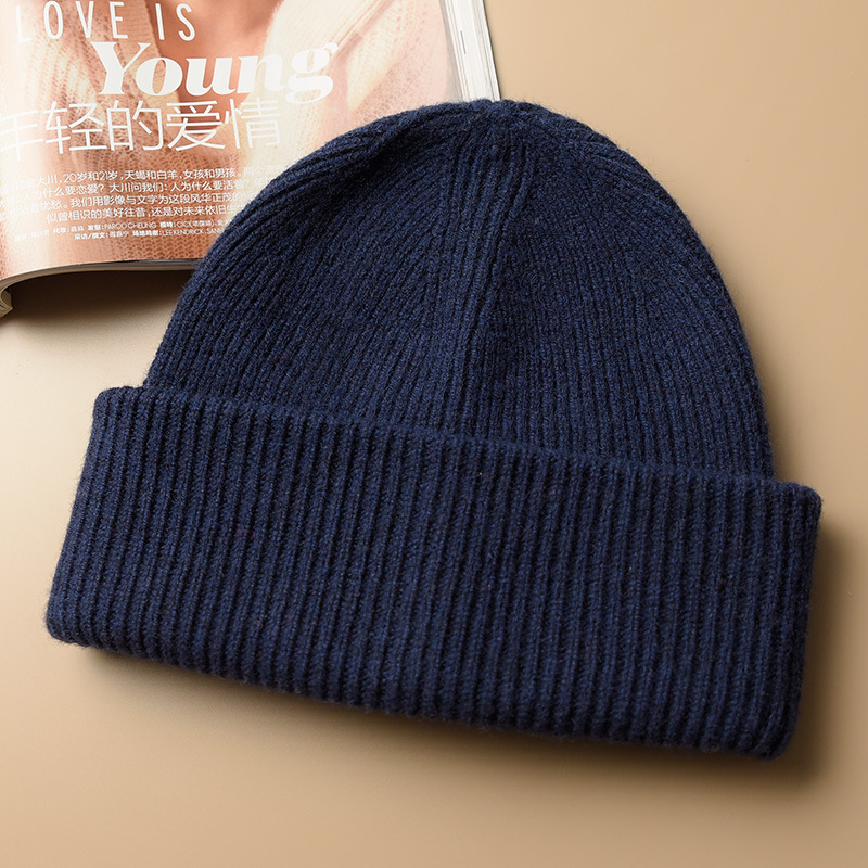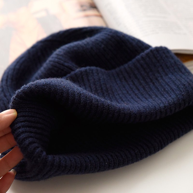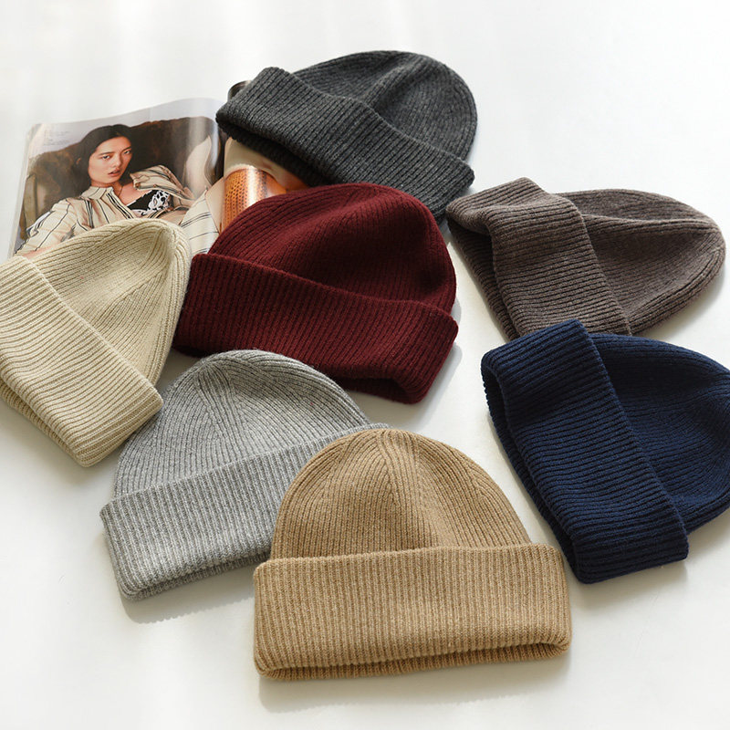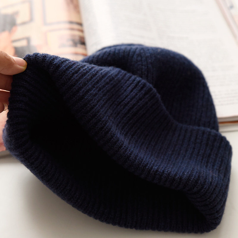 情侣款 厚款男士女士纯色羊毛翻边针织圆帽毛线帽秋冬款 保暖