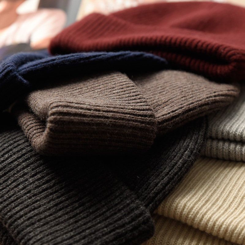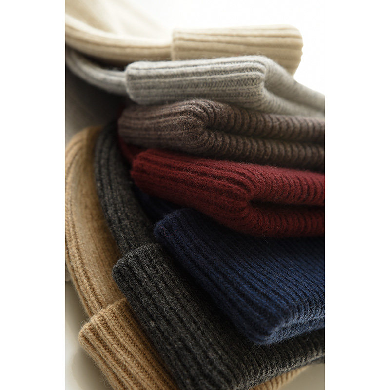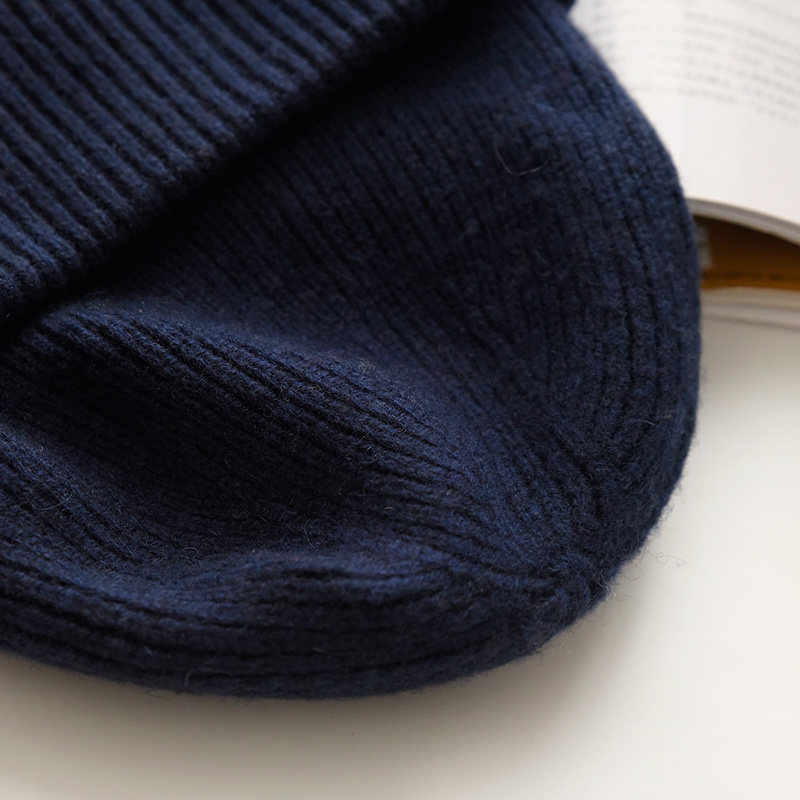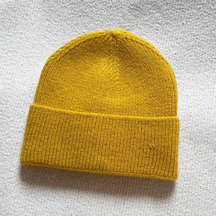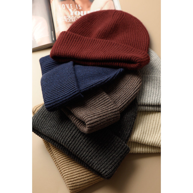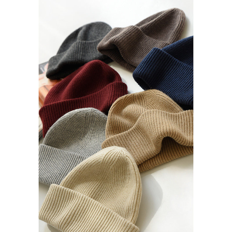 情侣款 厚款男士女士纯色羊毛翻边针织圆帽毛线帽秋冬款 保暖