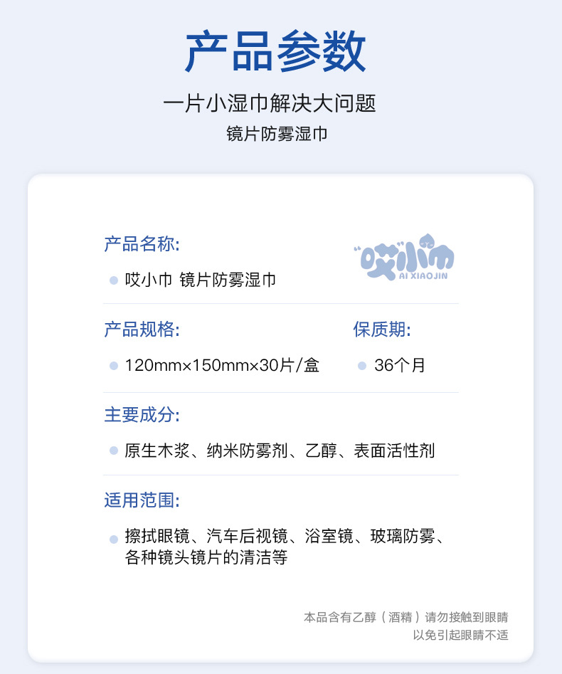 哎小巾眼镜防雾湿纸巾一次性擦眼镜布镜片镜头挡风玻璃除尘清洁巾