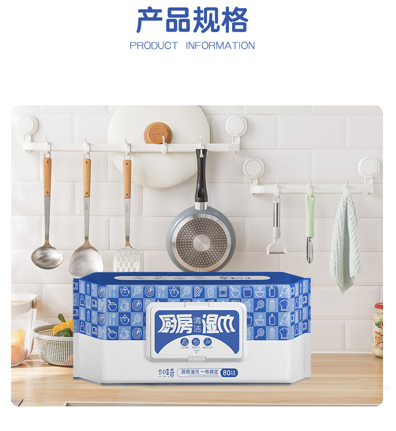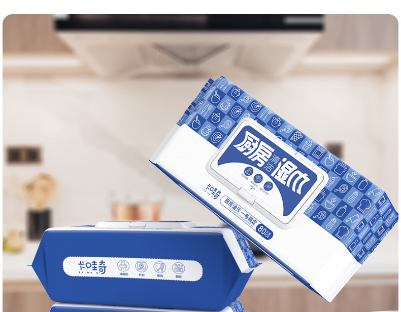 80抽厨房湿巾油烟机灶台清洁去油污纸巾家用一次性湿抹布吸油纸巾