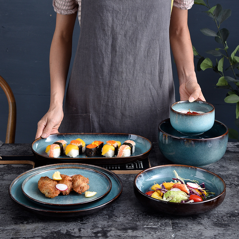 碗碟盘套装日式窑变陶瓷餐具酒店饭碗鱼盘碟子