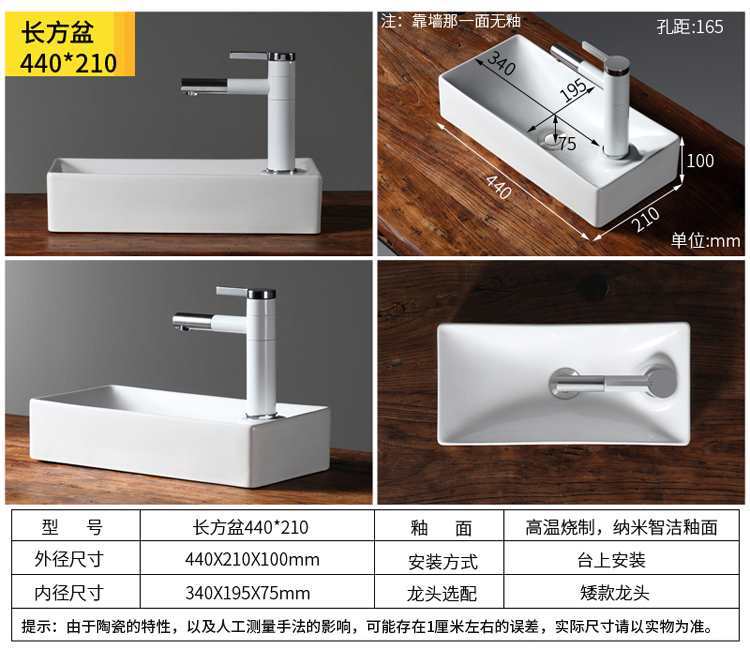 长方盆440*210需要左龙头 后面无釉联系客服 USD $57.64 492 piece available