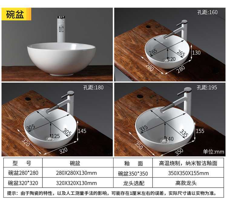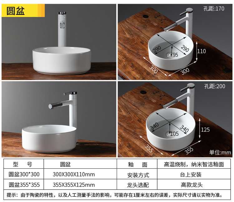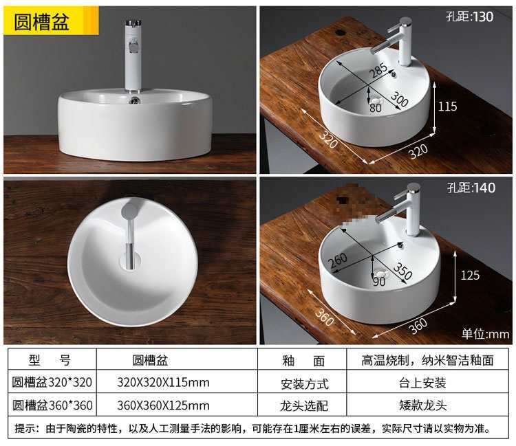 春树小尺寸台上盆洗手盆超小号小型阳台面盆陶瓷小户型迷你洗脸盆