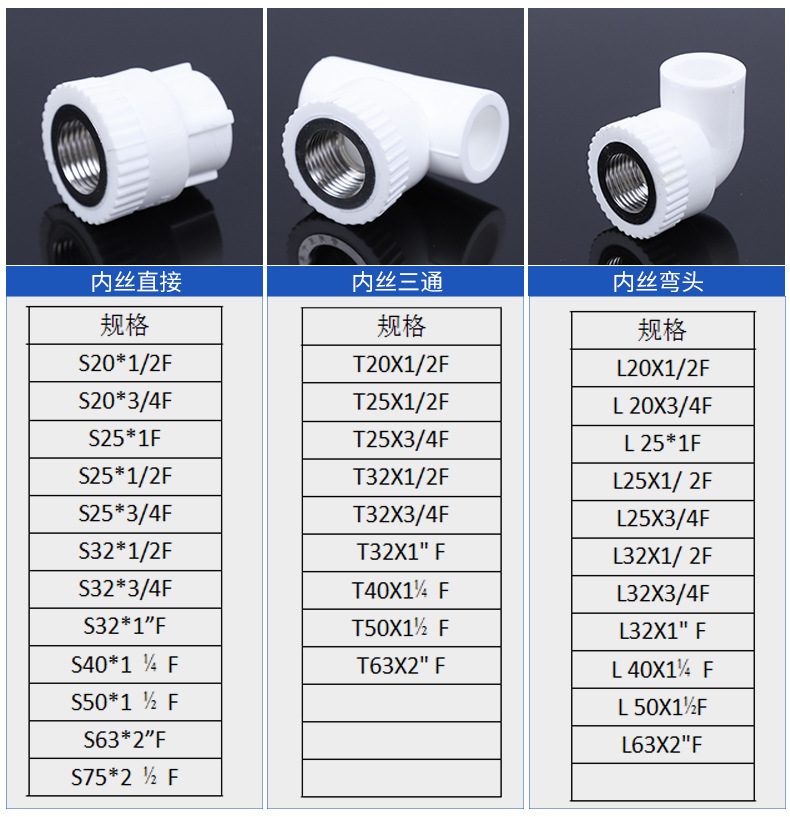 | ppr32 * 4 points (1/2) internal thread tee(PPR32*4分(二分之一)内丝三通) | USD $0.41 | 99200 piece available |