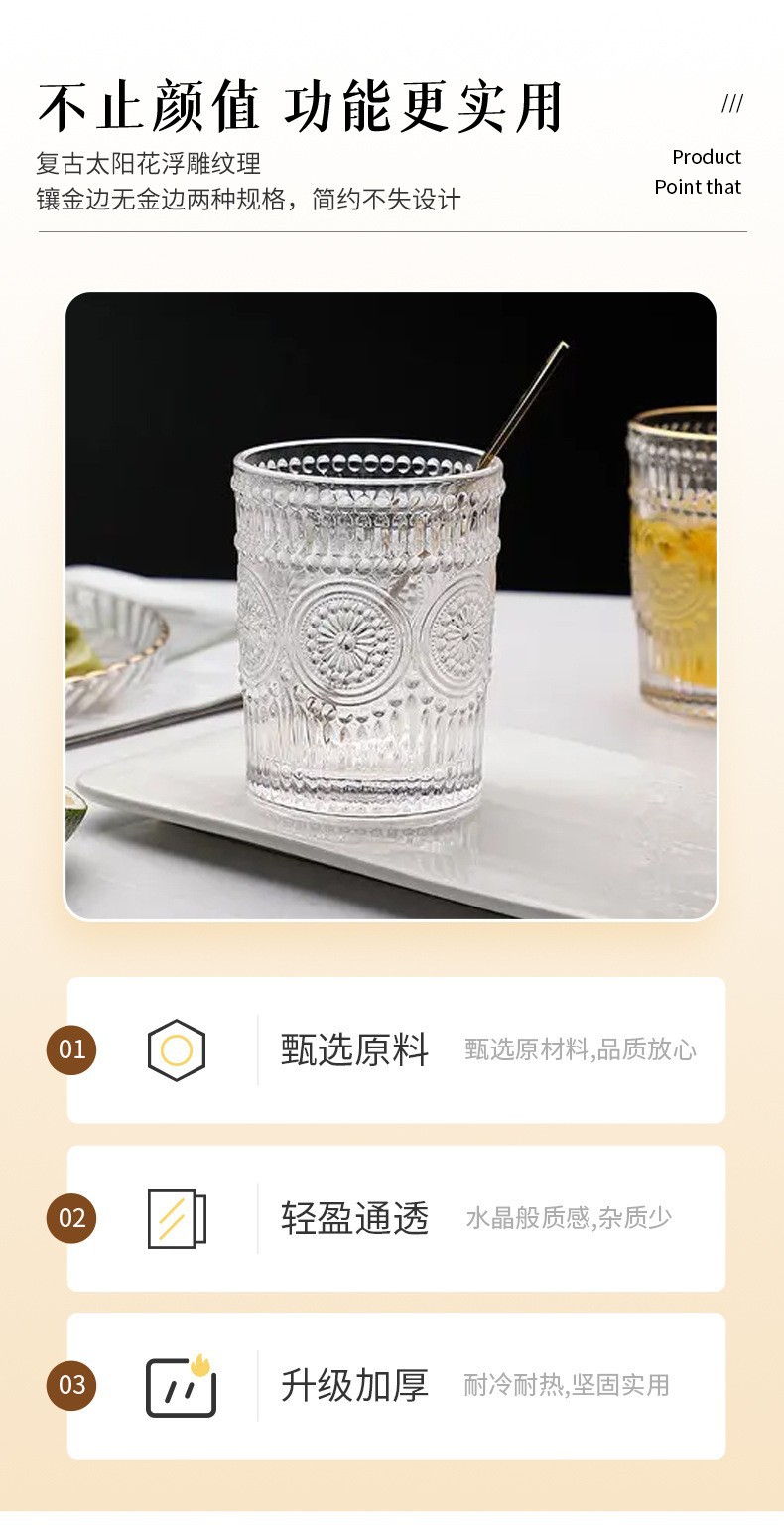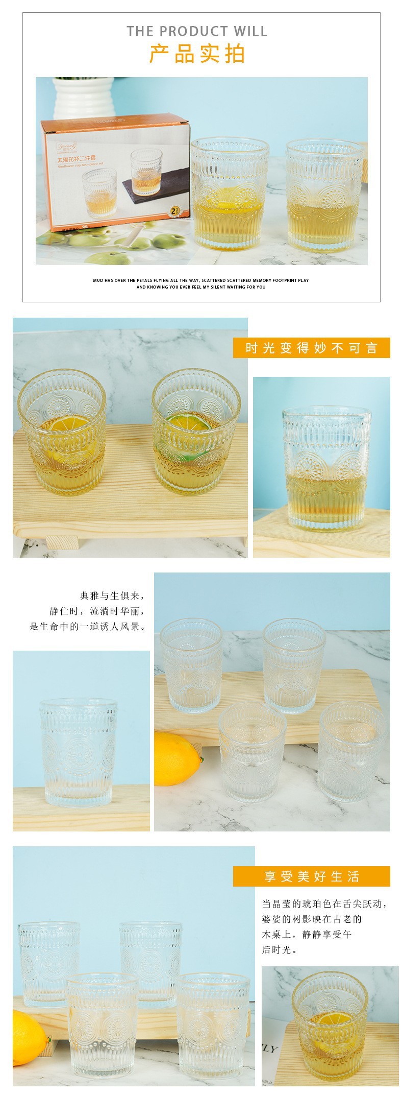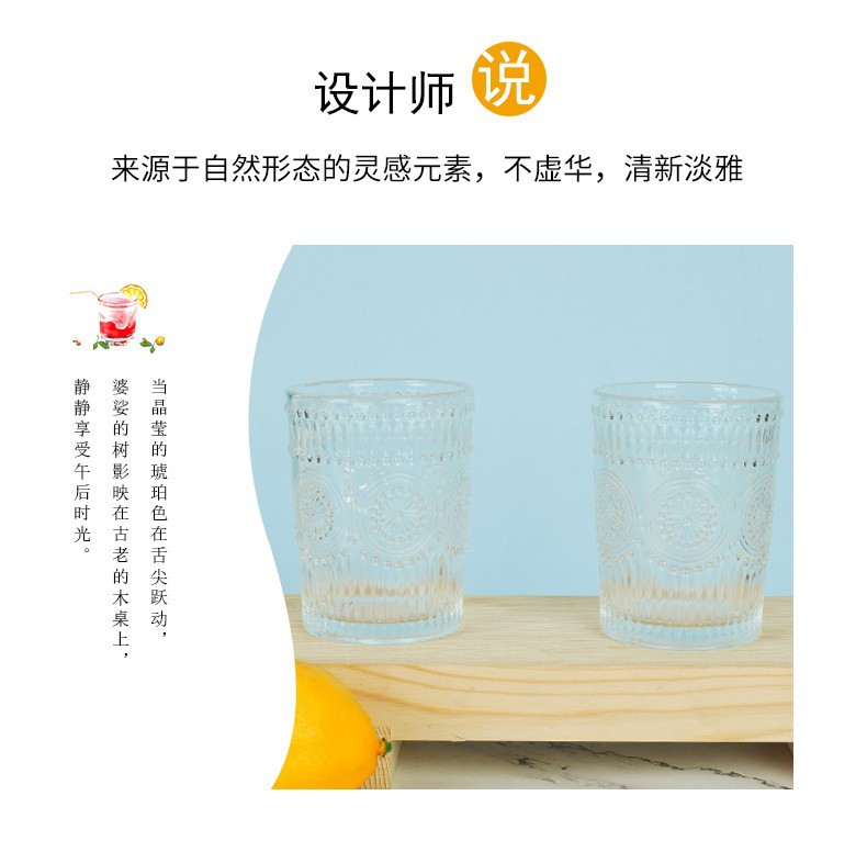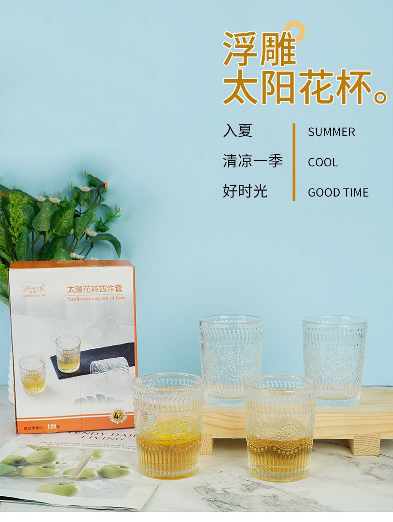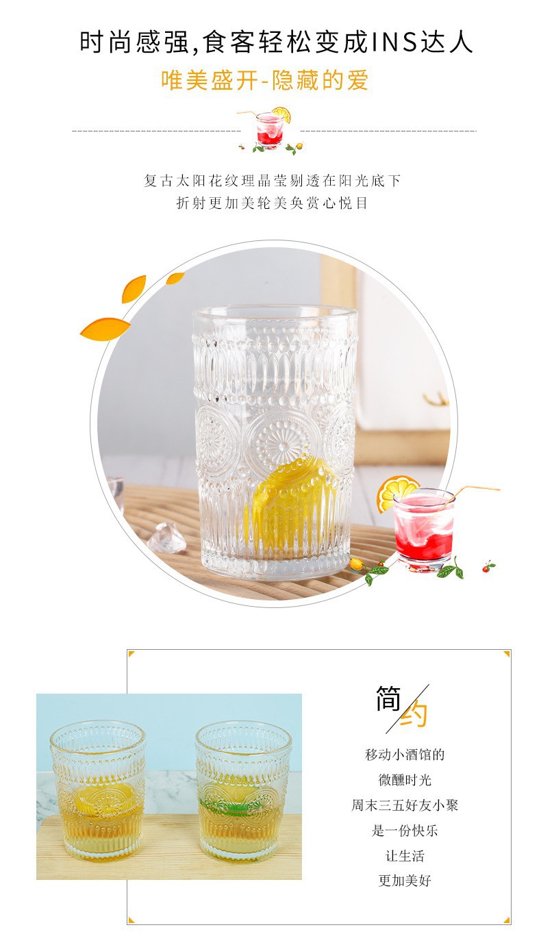浮雕水杯欧式太阳花杯子玻璃杯透明色果汁杯