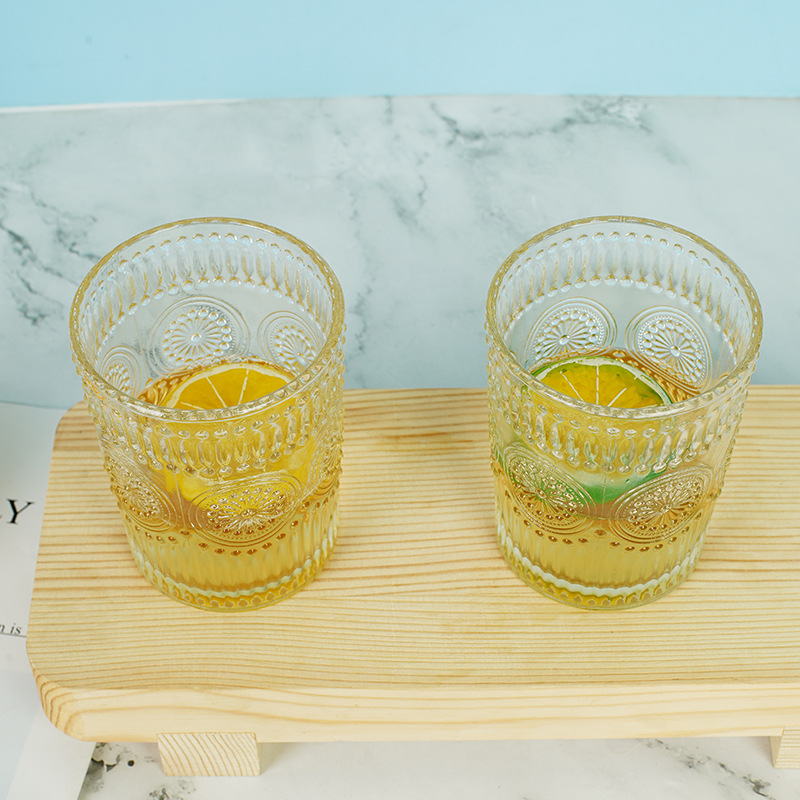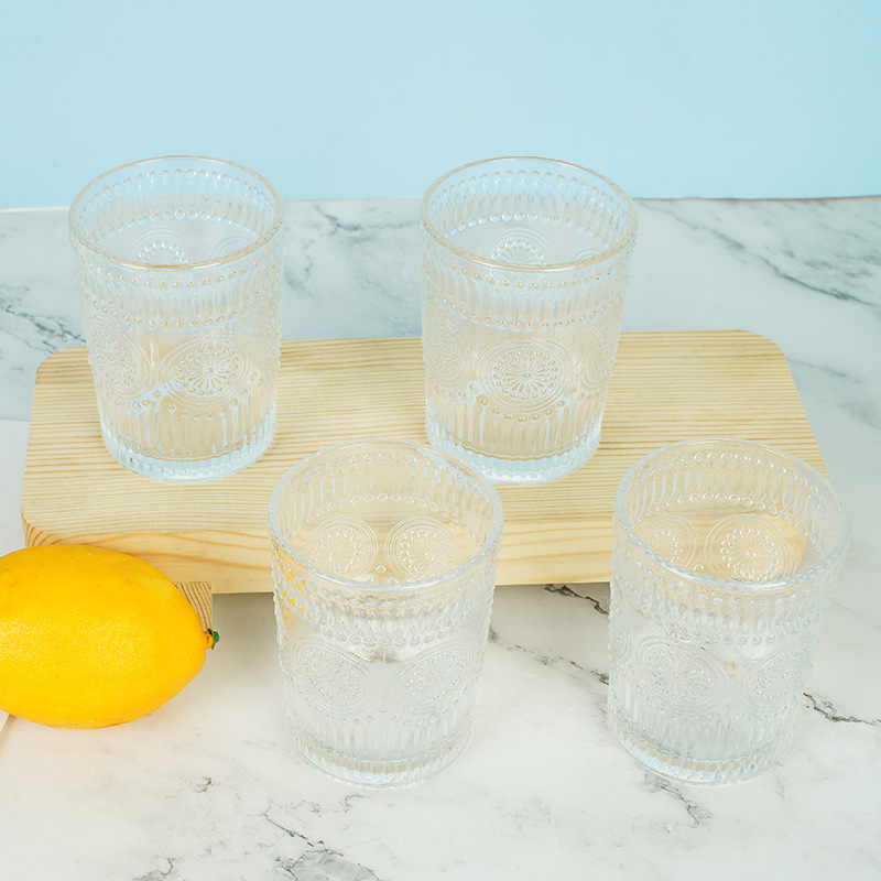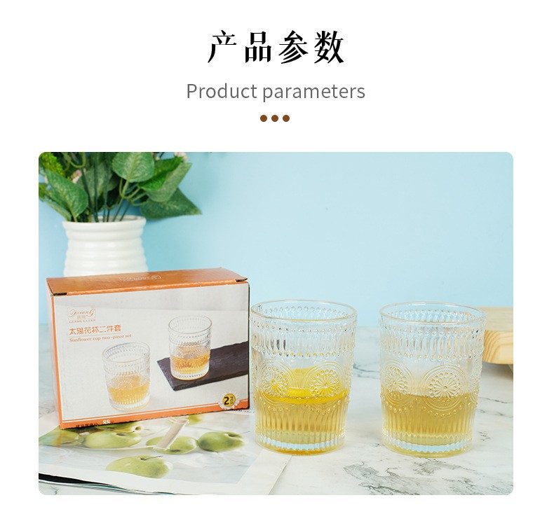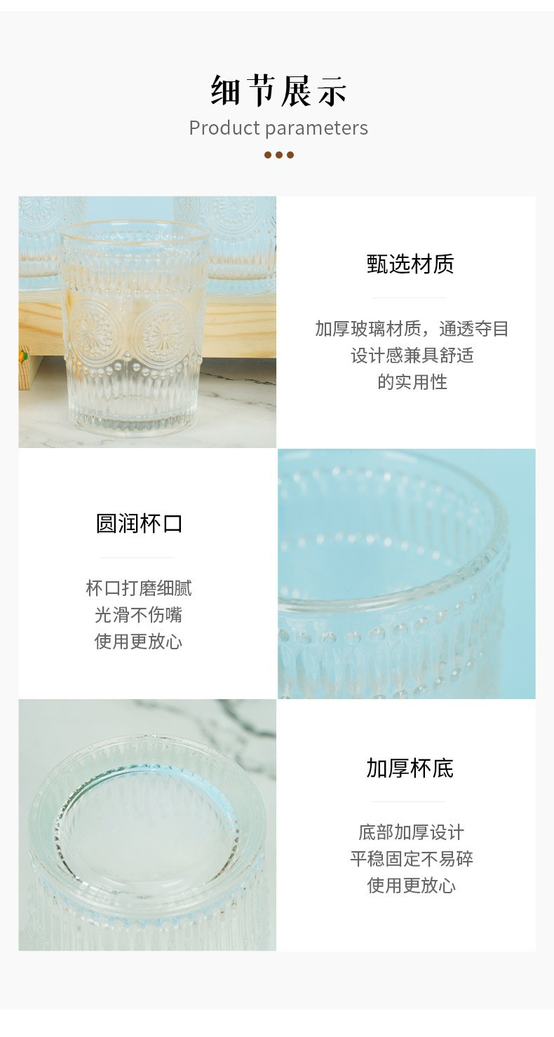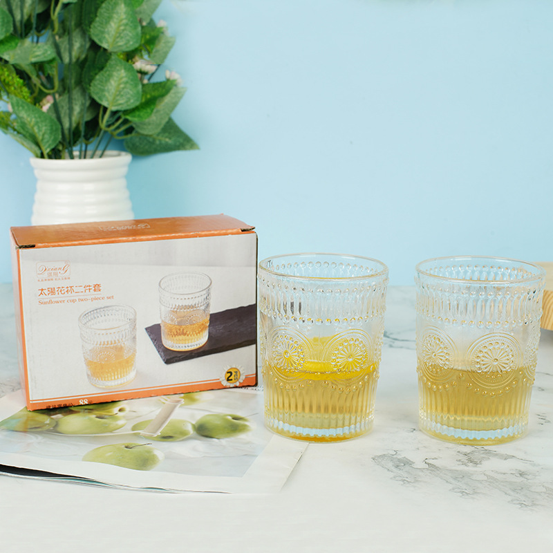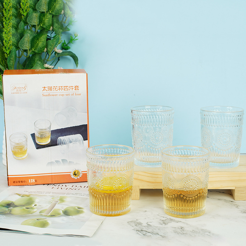 浮雕水杯欧式太阳花杯子玻璃杯透明色果汁杯