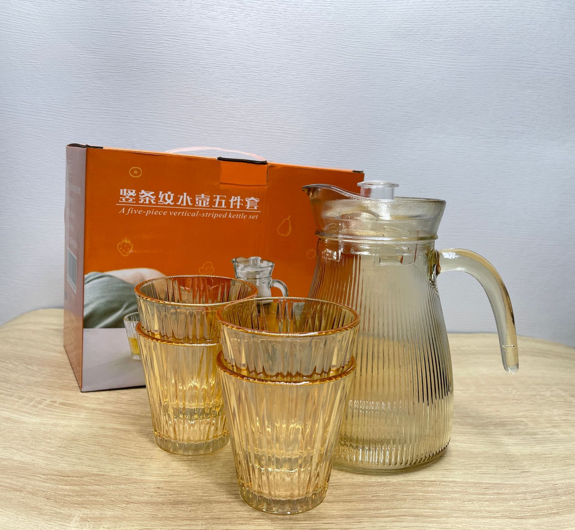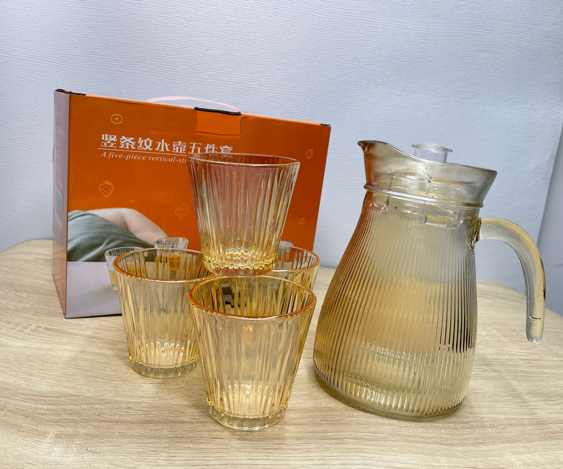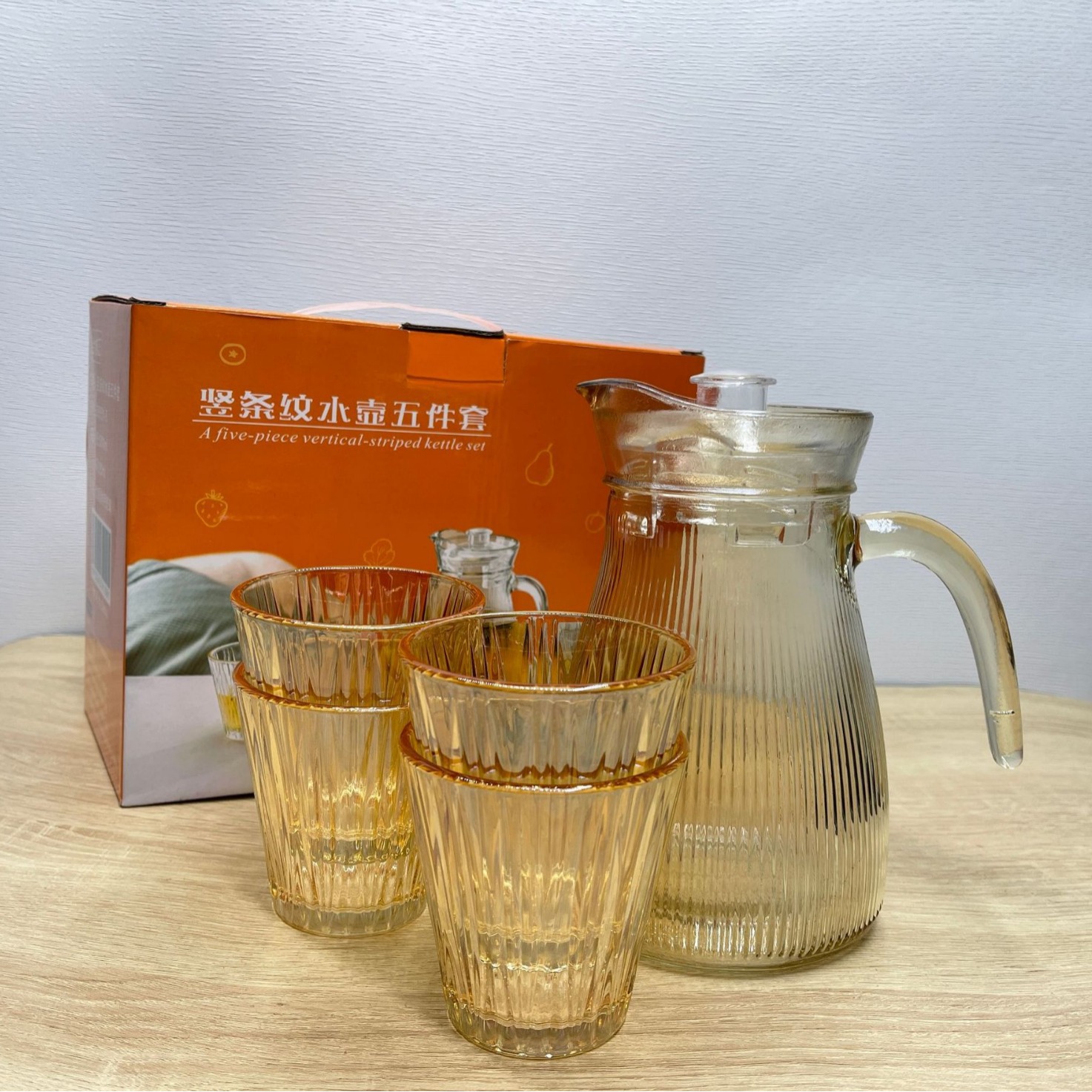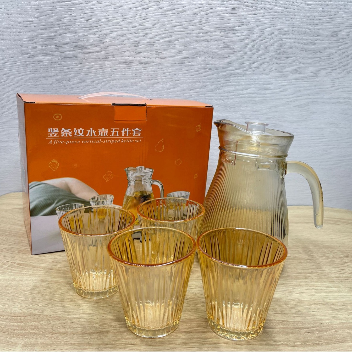 琥珀色竖纹杯玻璃杯五件套套装果汁饮料水具套装