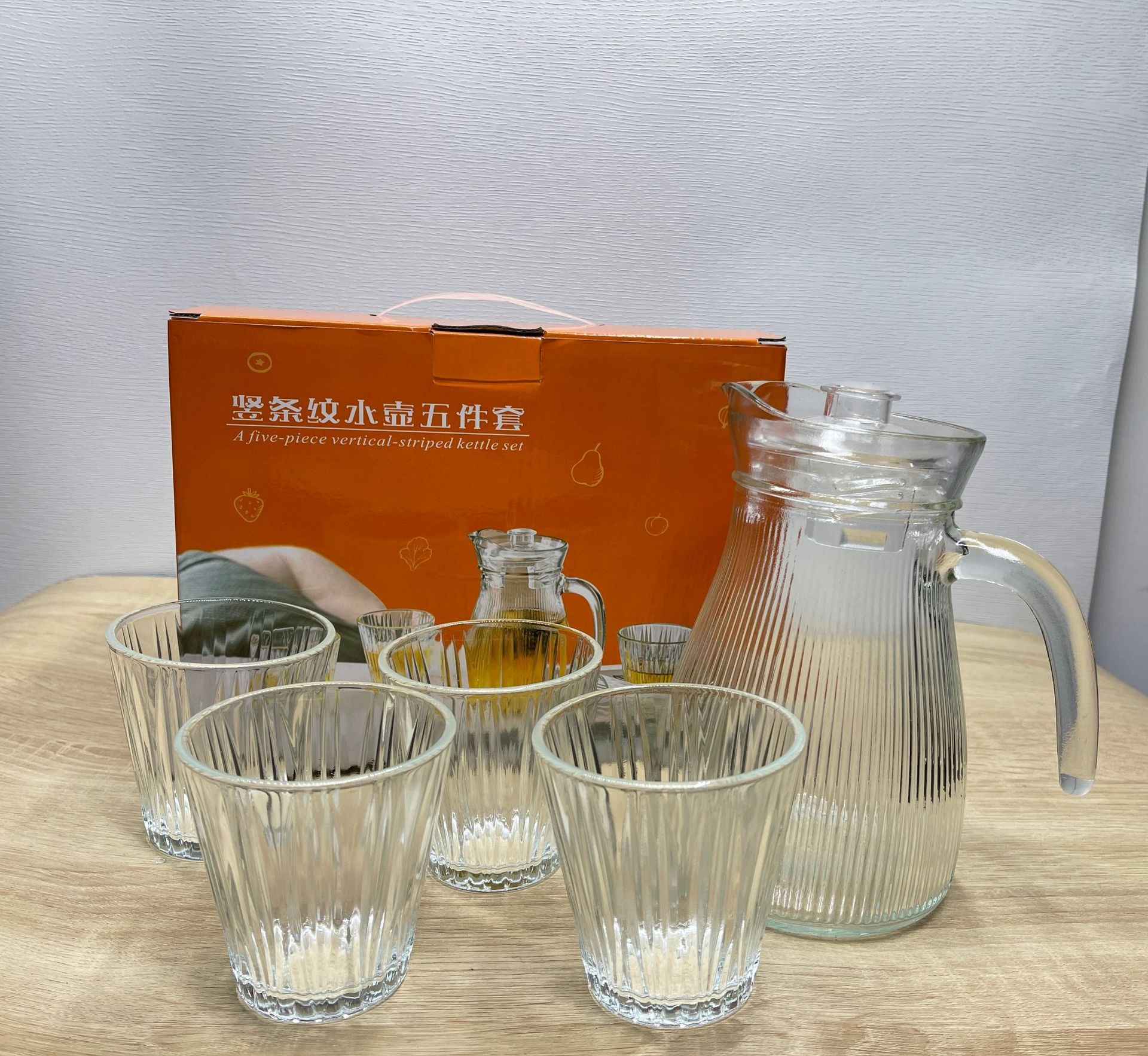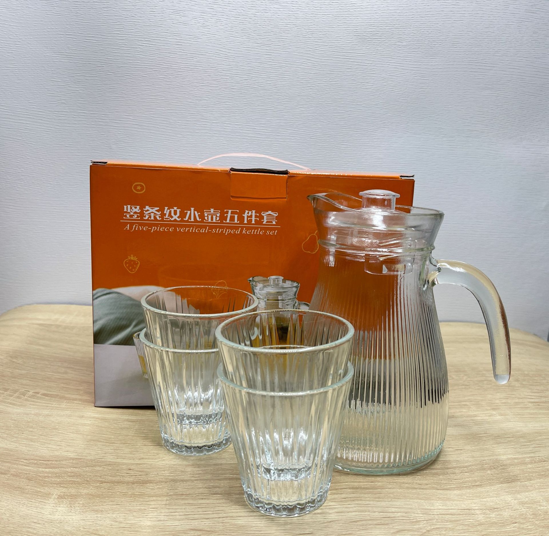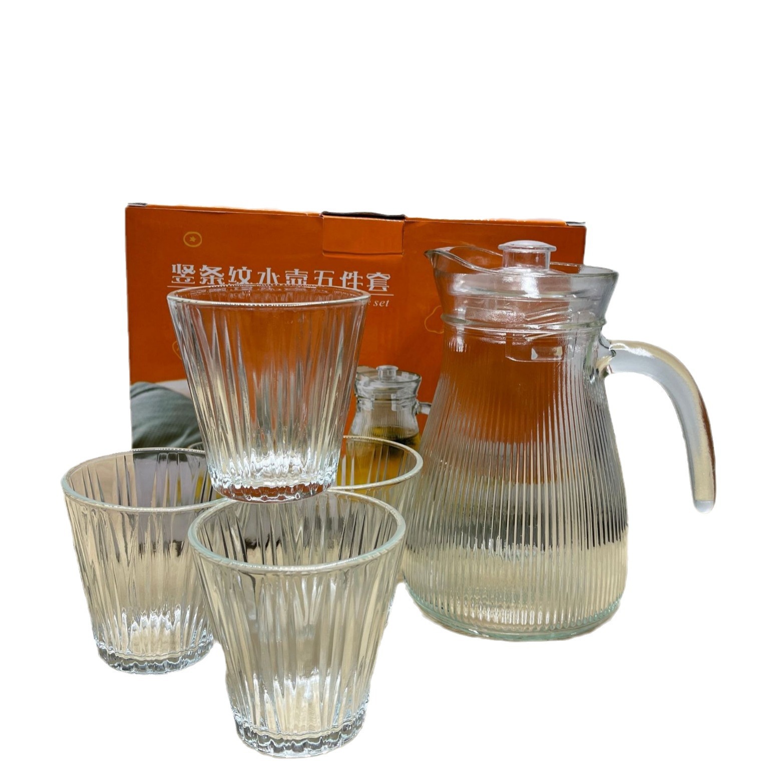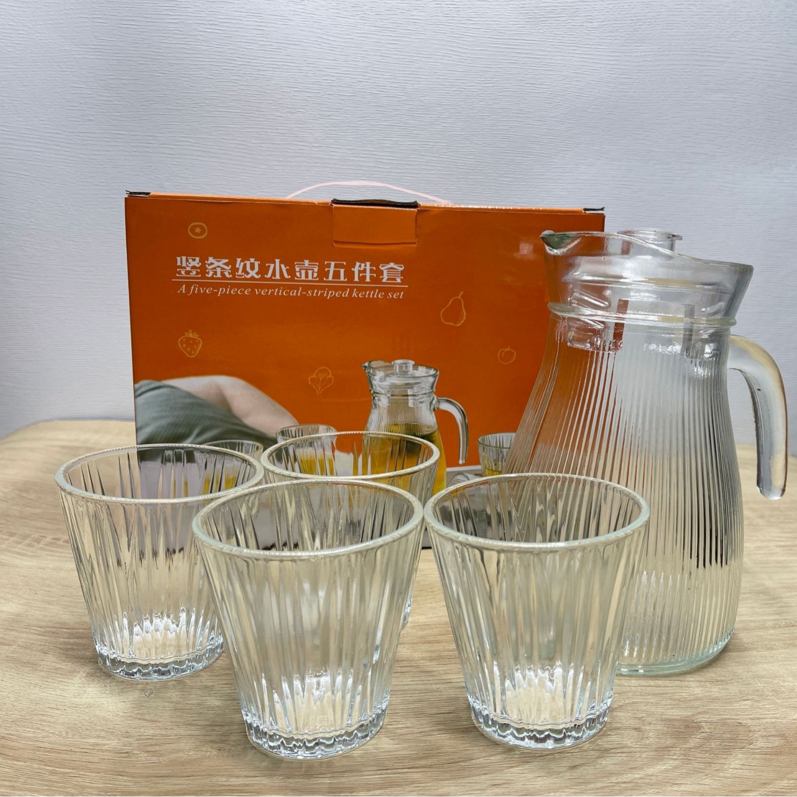琥珀色竖纹杯玻璃杯五件套套装果汁饮料水具套装