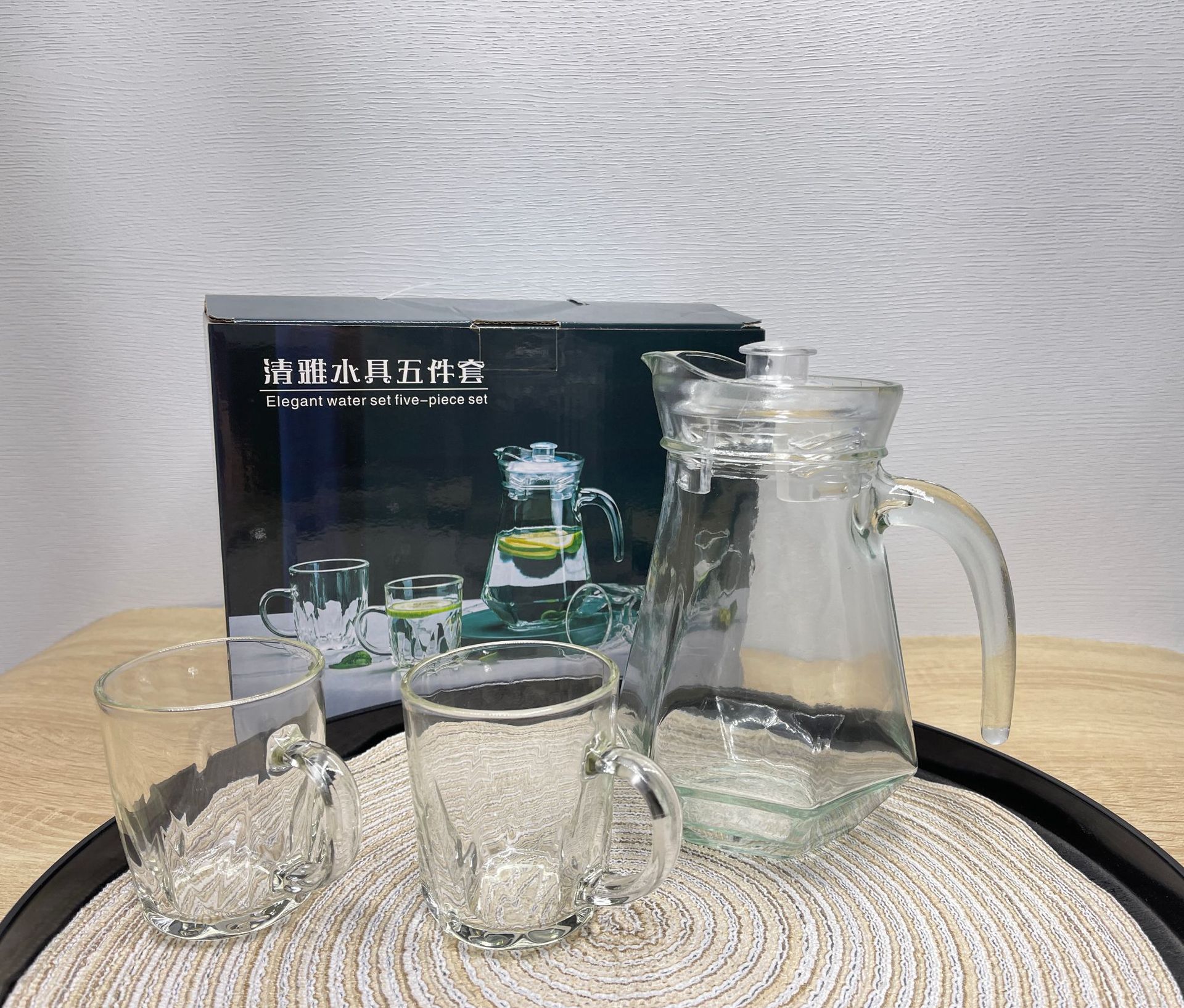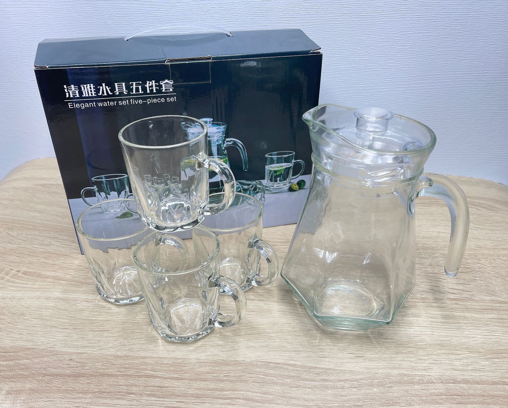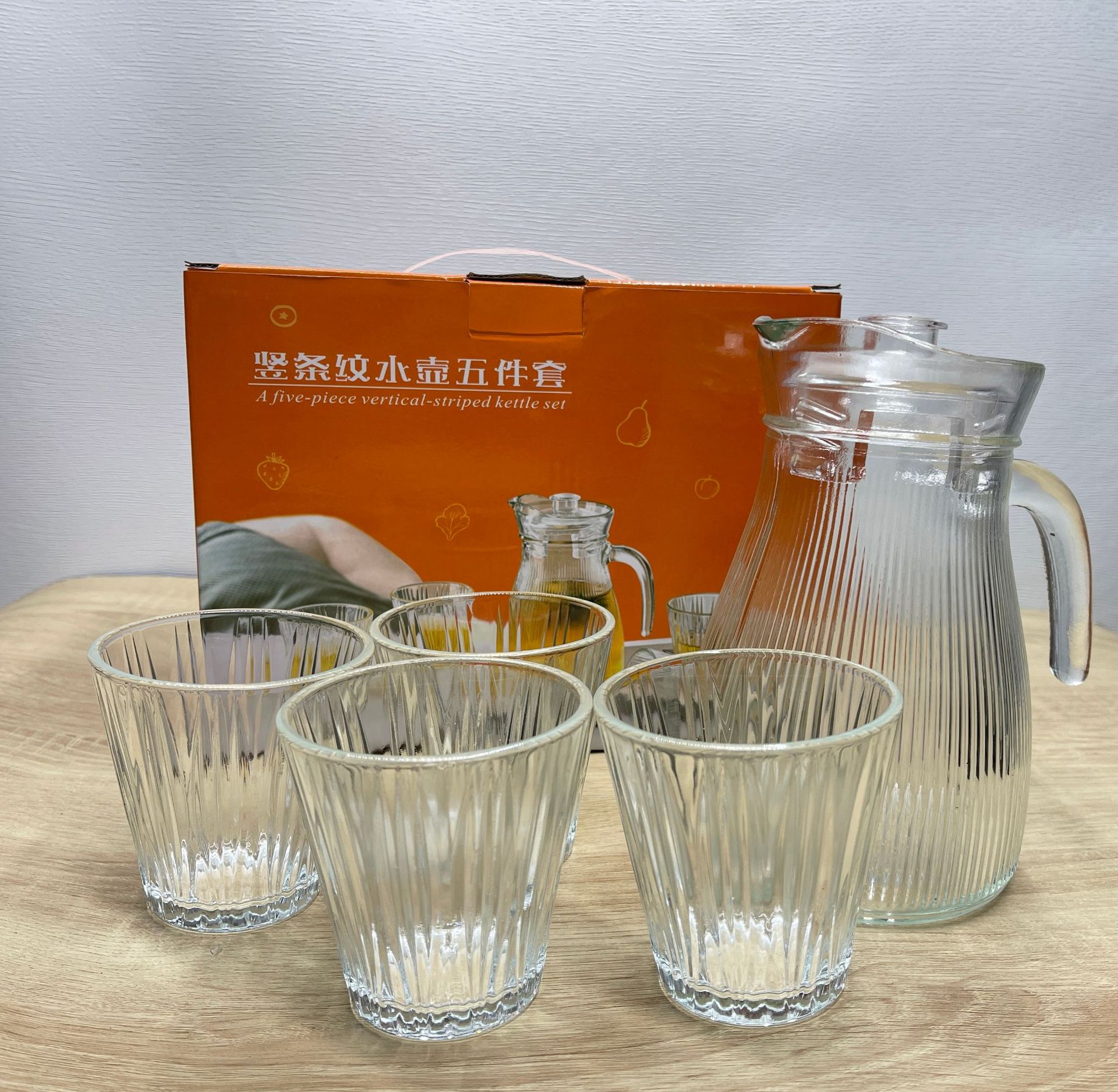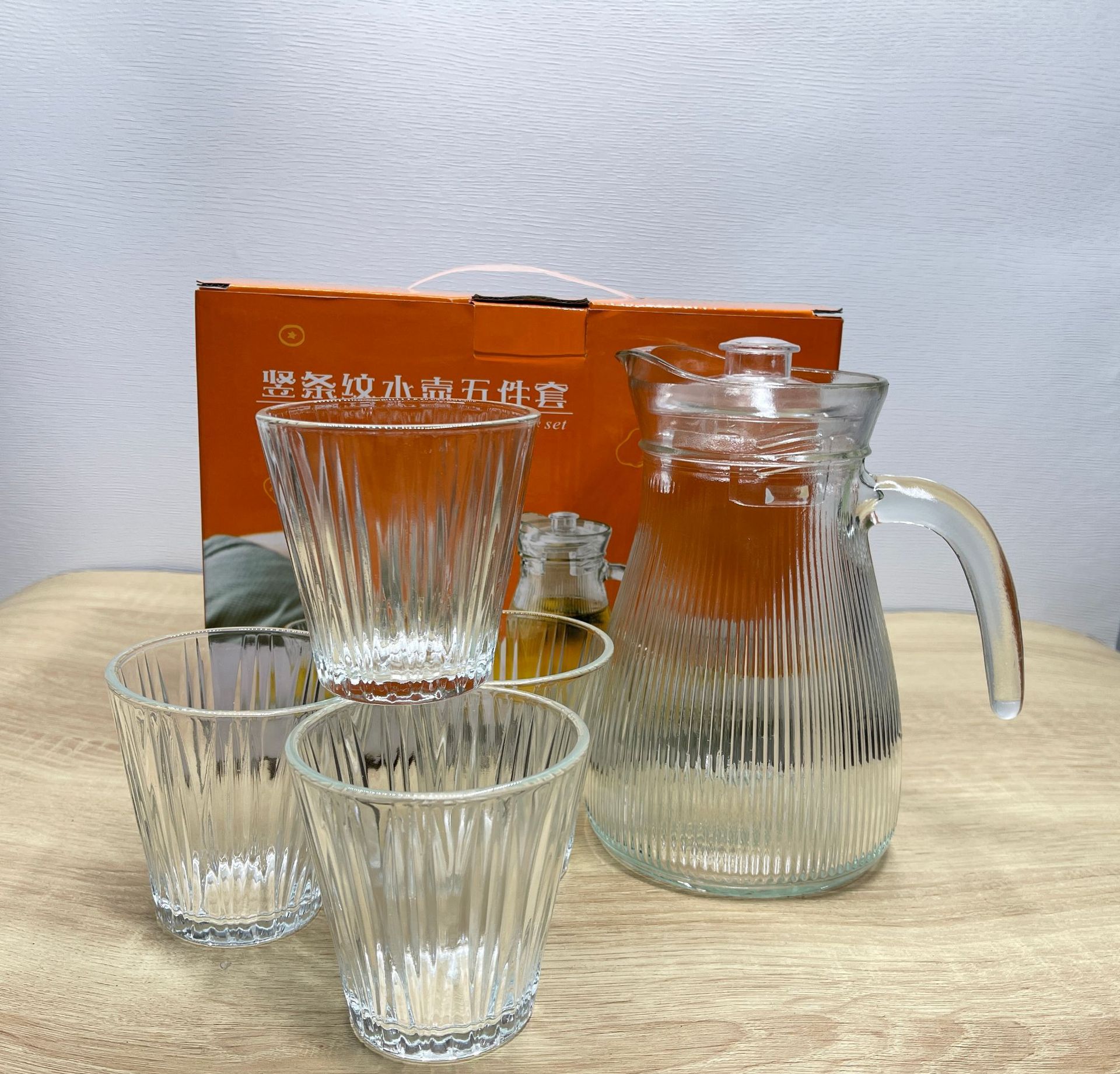 琥珀色竖纹杯玻璃杯五件套套装果汁饮料水具套装