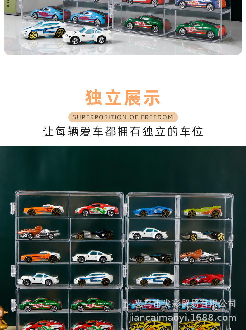 工厂直销 小汽车模型收纳盒 展示架陈列柜风火轮玩具车位分格透明
