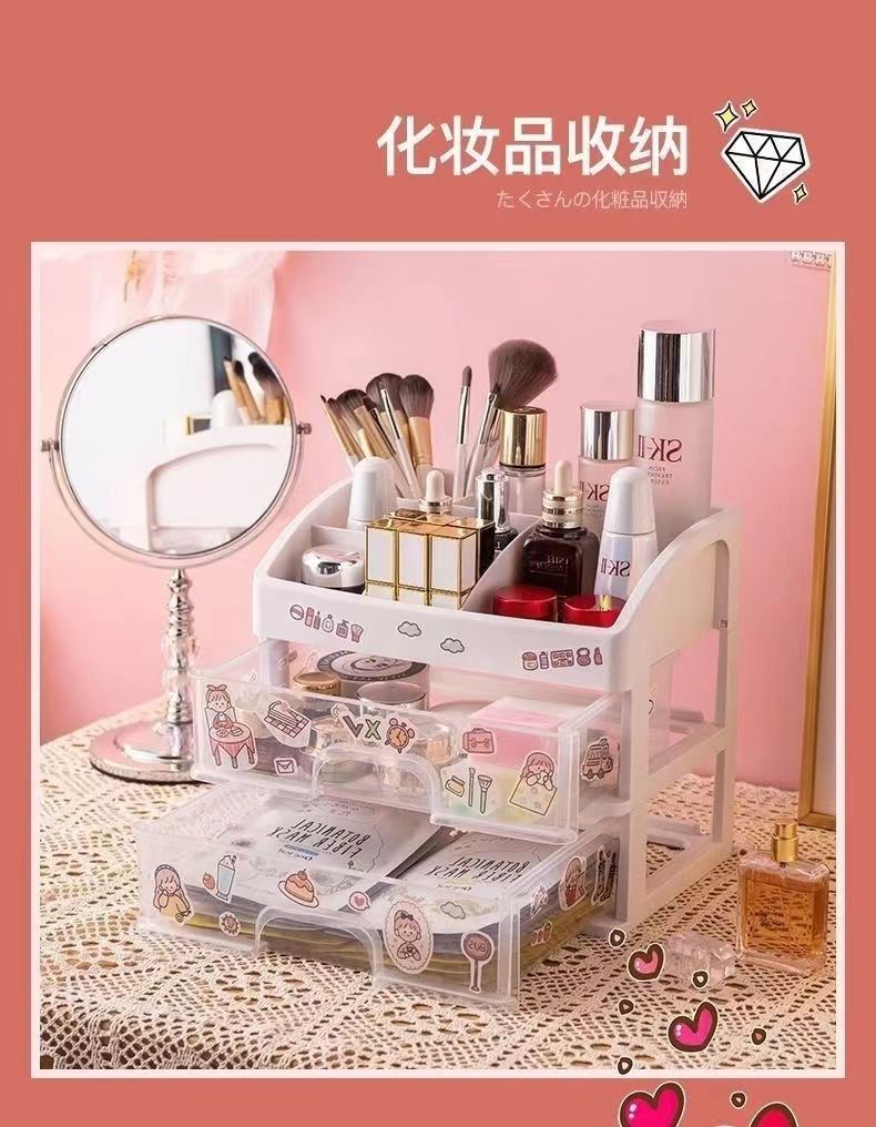 大容量收纳盒抽屉式桌面化妆盒化妆品书桌整理盒置物架学生桌上