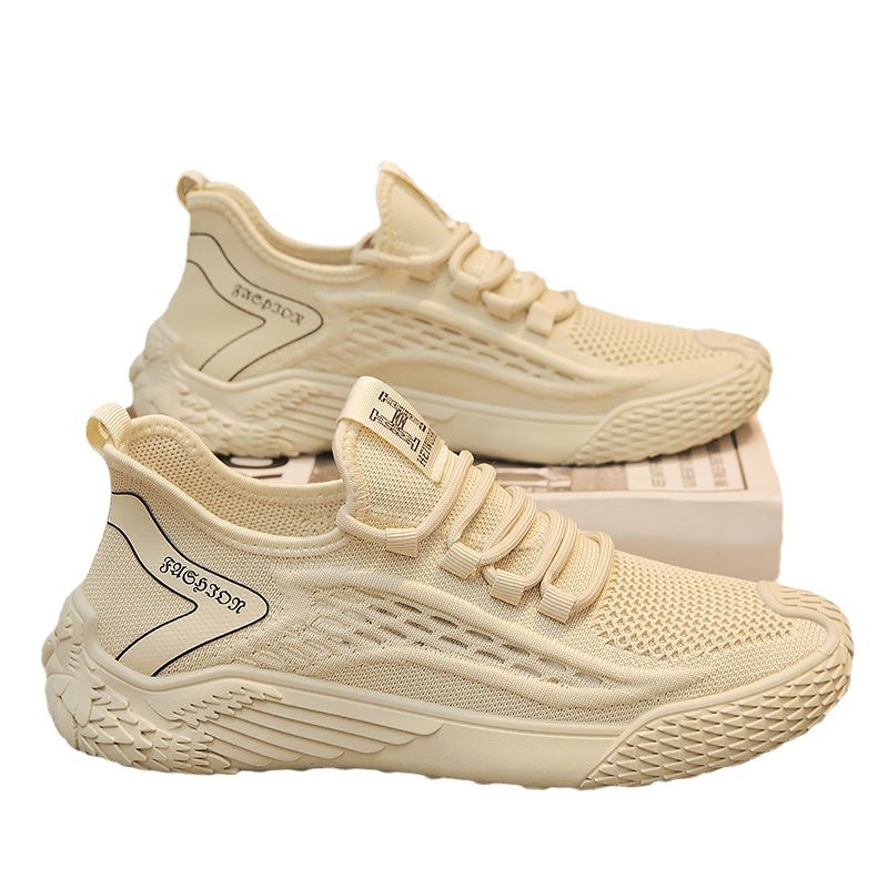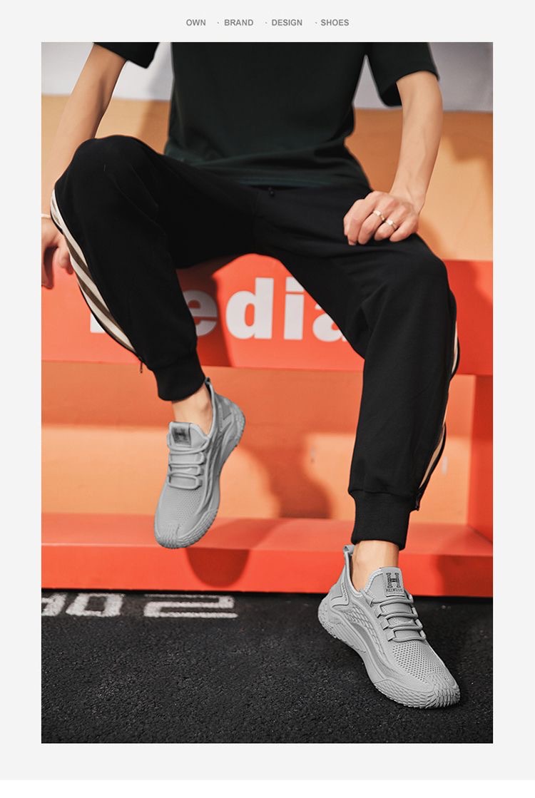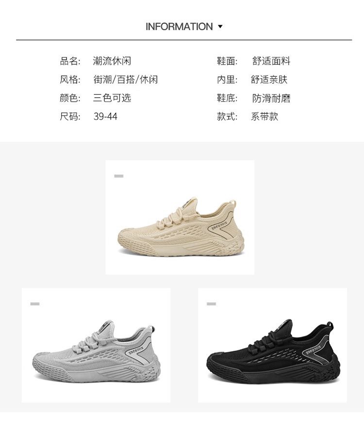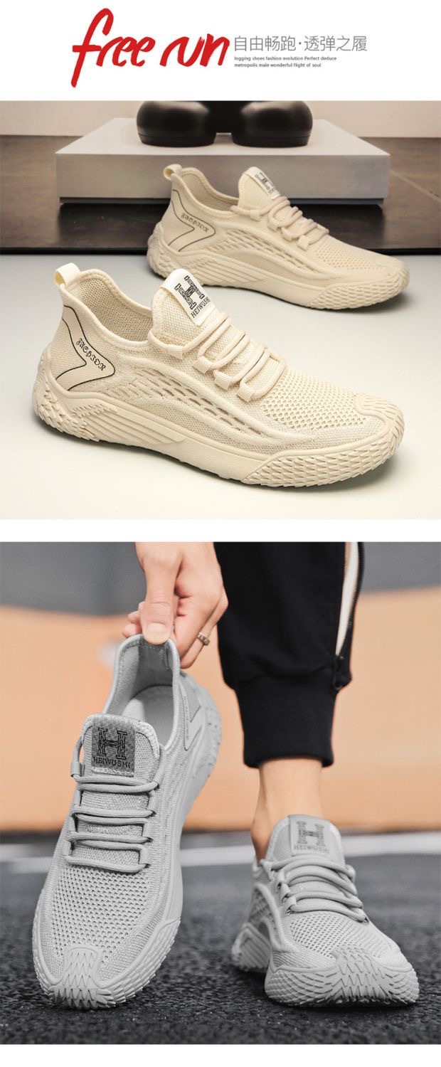男鞋2024新款夏季透气薄款休闲鞋男士防臭运动跑步飞织鞋网面潮鞋
