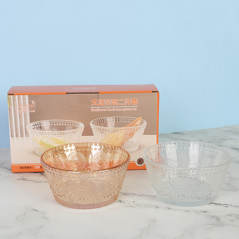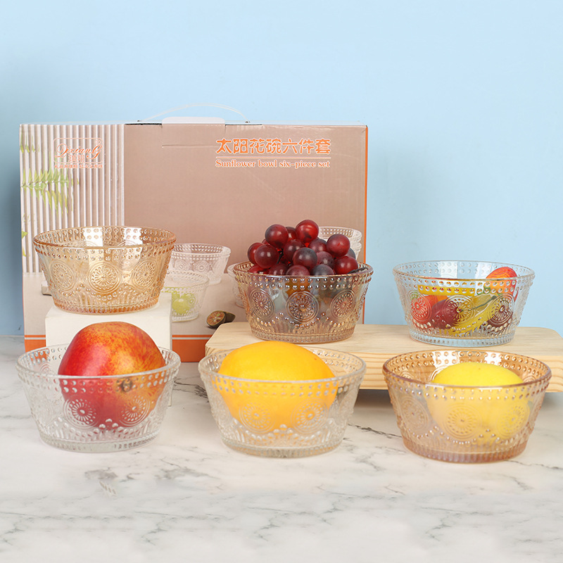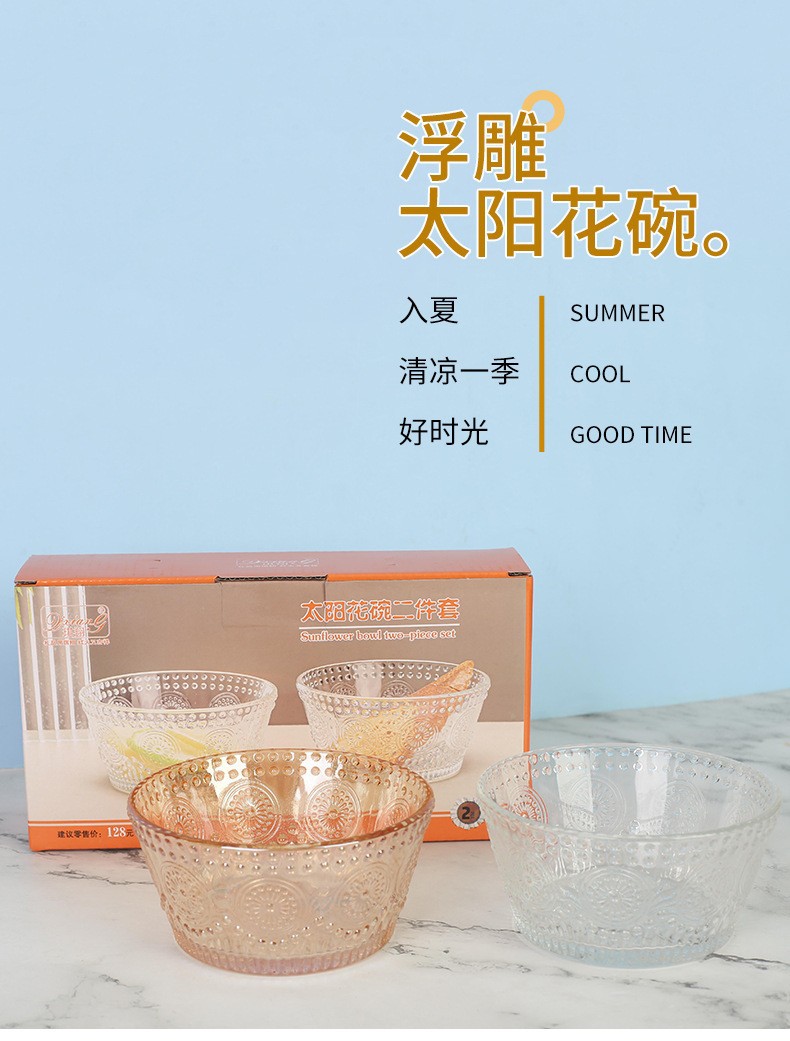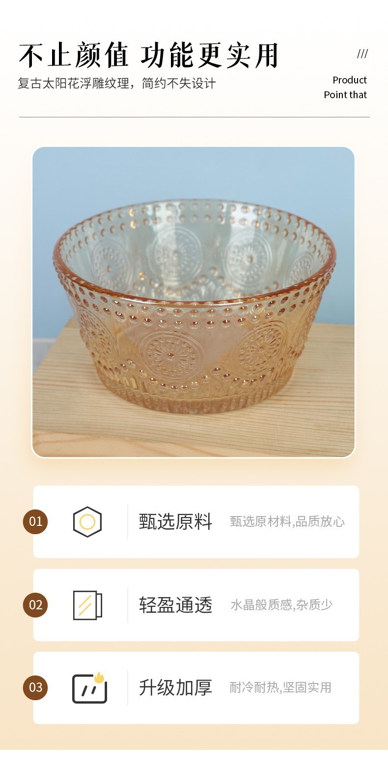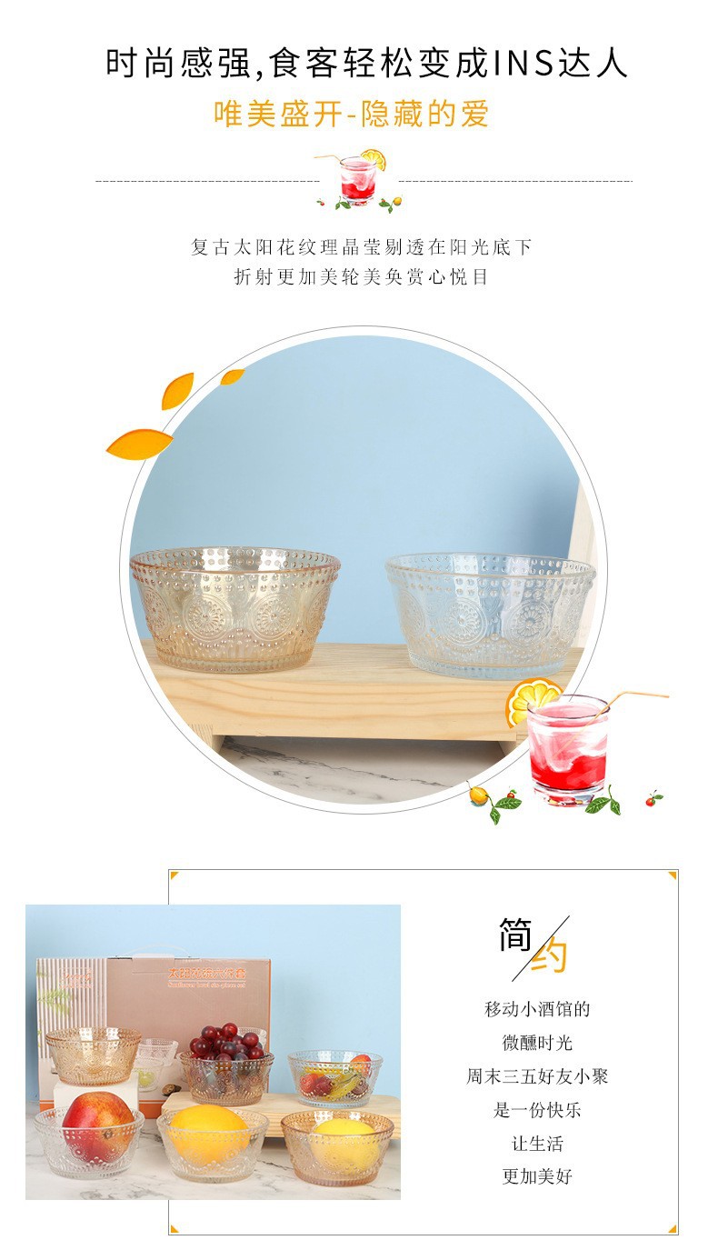 纳钙玻璃太阳花浮雕碗盘套装沙拉碗