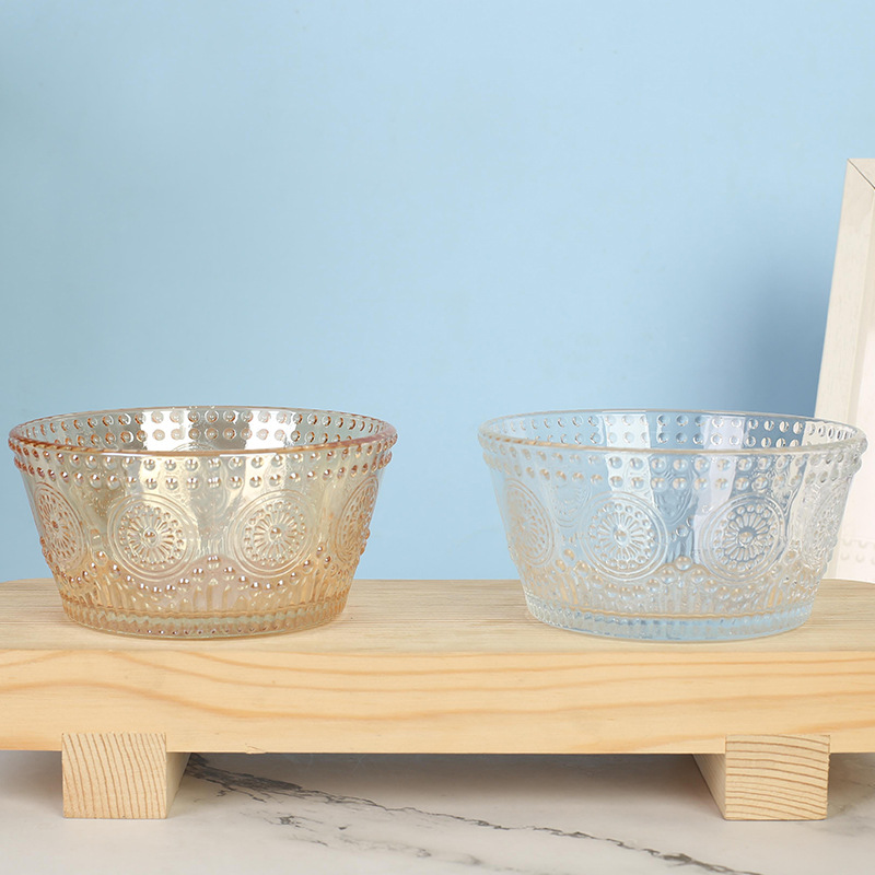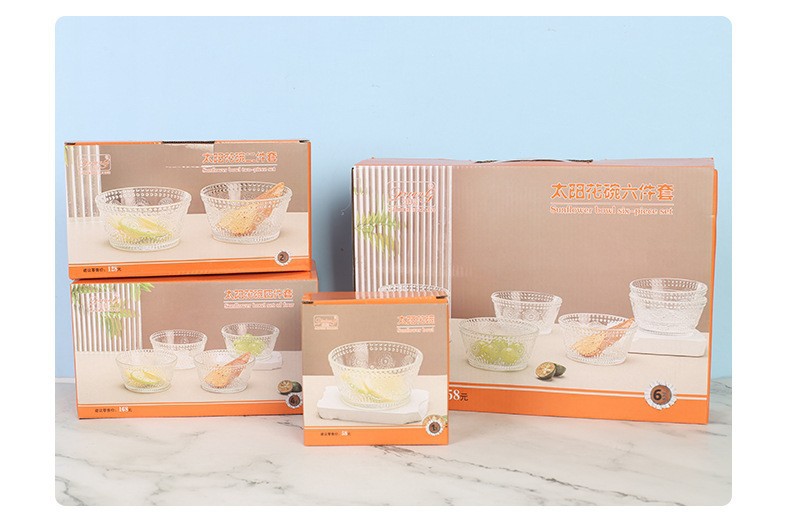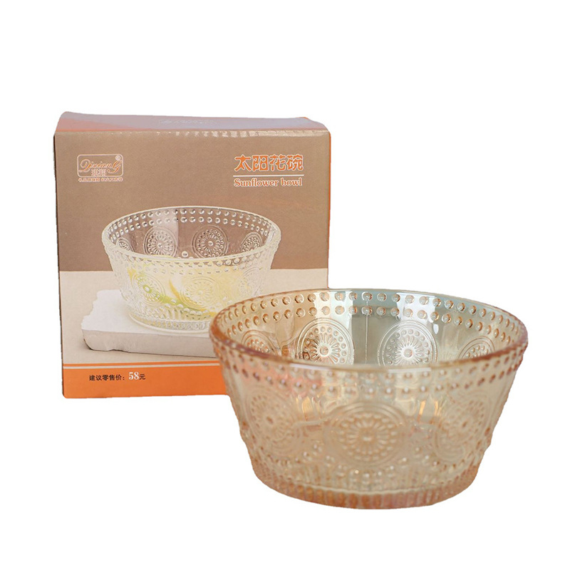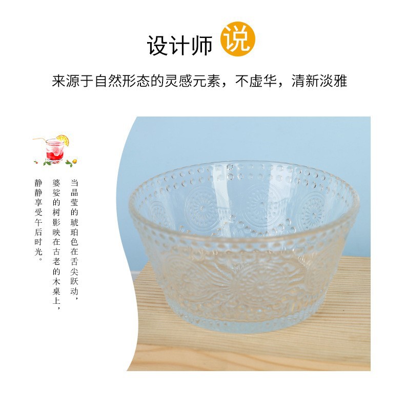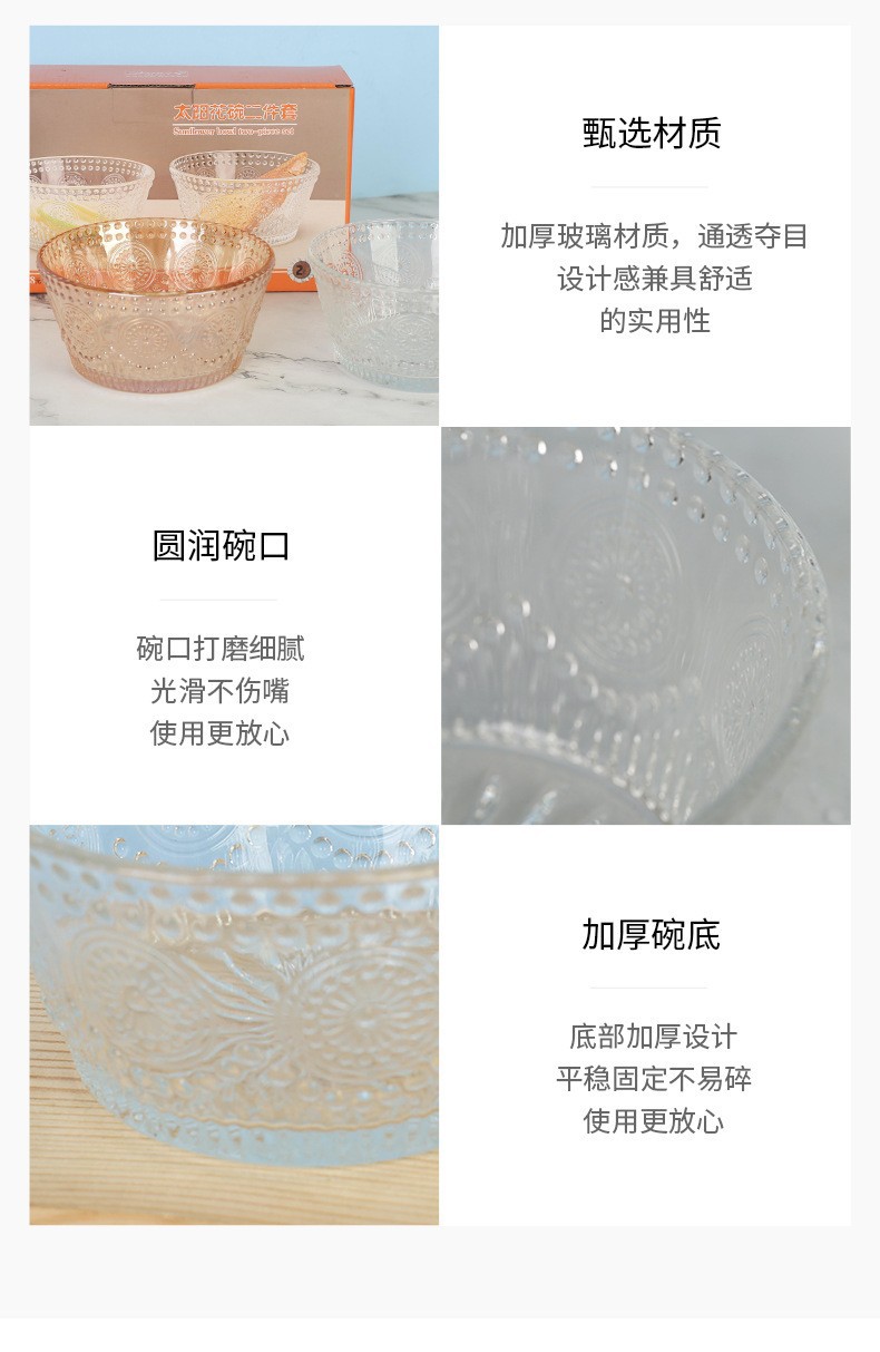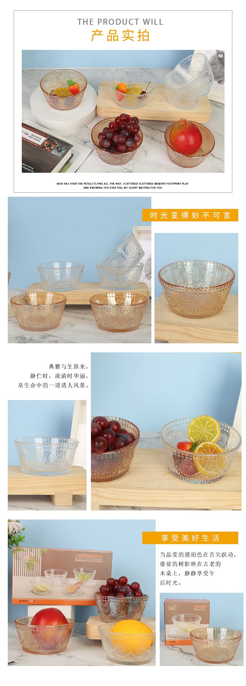 纳钙玻璃太阳花浮雕碗盘套装沙拉碗