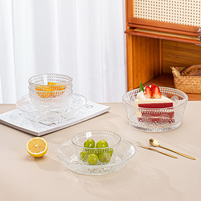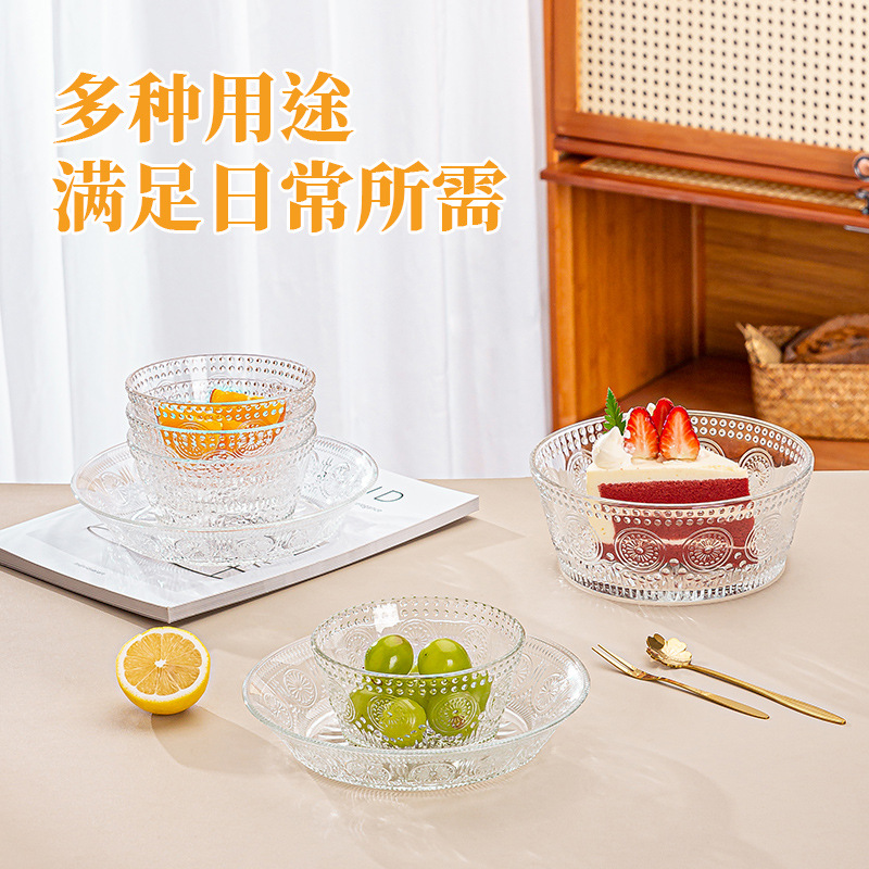 纳钙玻璃太阳花浮雕碗盘套装沙拉碗耐高温酒店用品