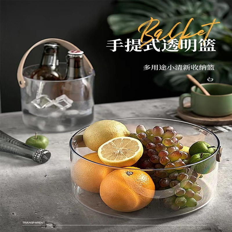 手提透明玻璃水果篮水果盘干果盘耐高温酒店用品