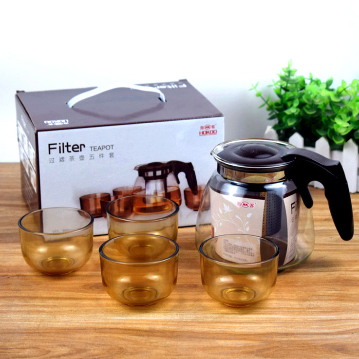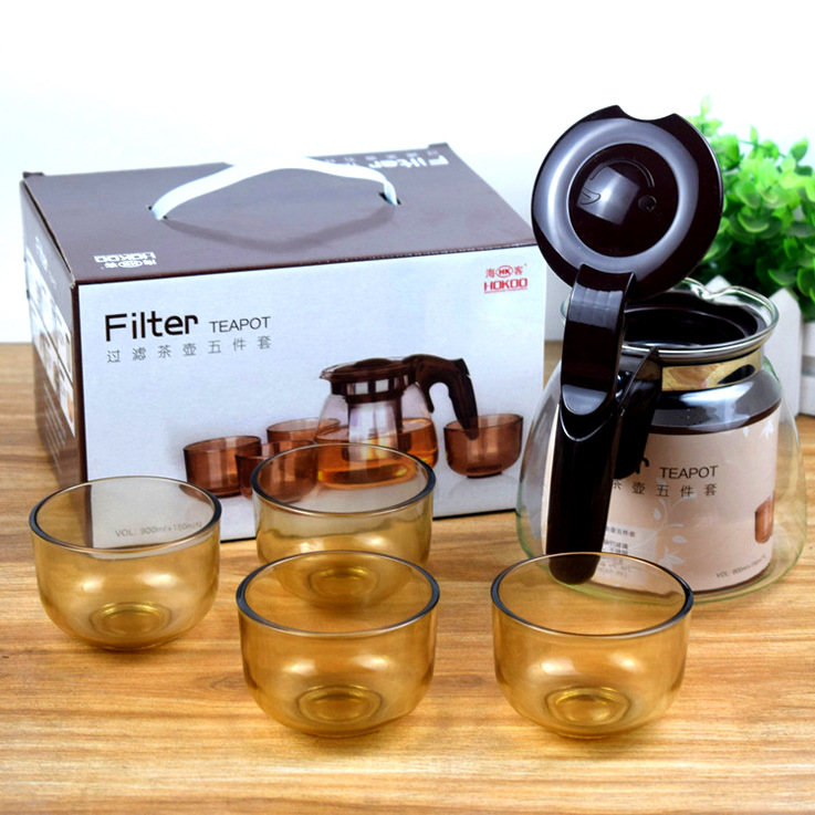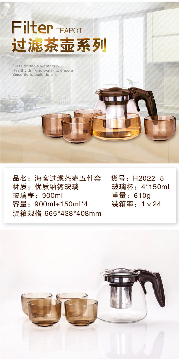 过滤网茶壶5件套功夫茶具套装玻璃不锈钢酒店用品