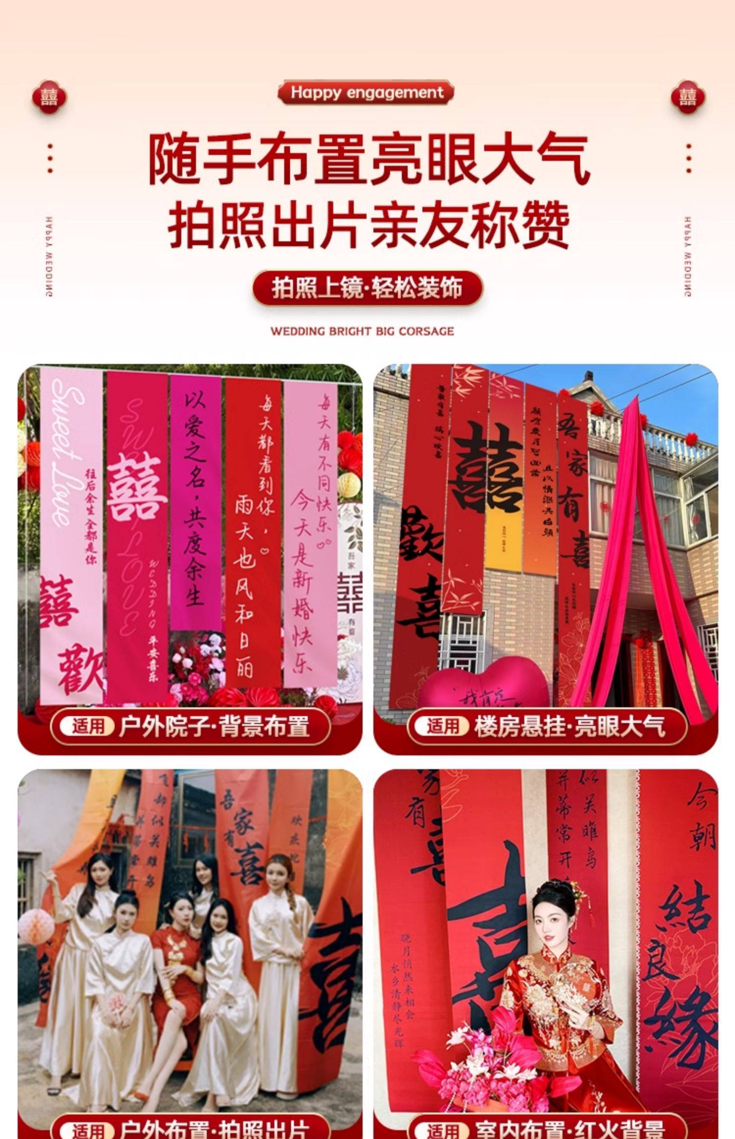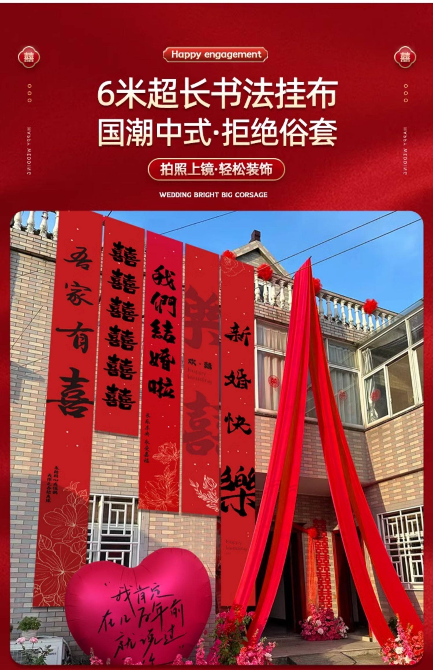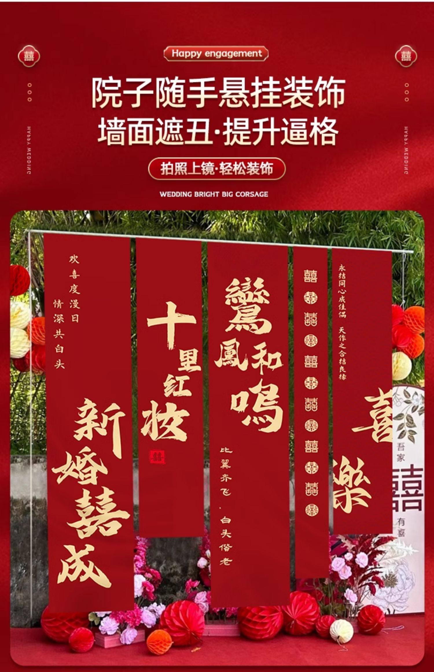 农村院子结婚装饰书法条幅挂布户外庭院室外横幅喜字婚礼婚房布置