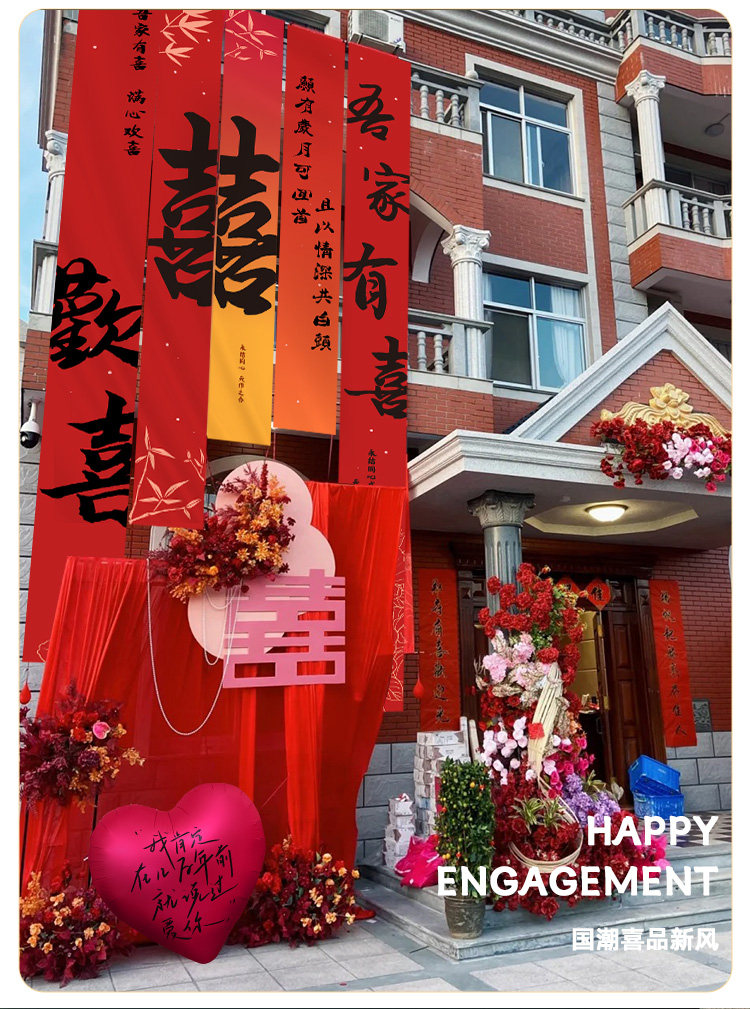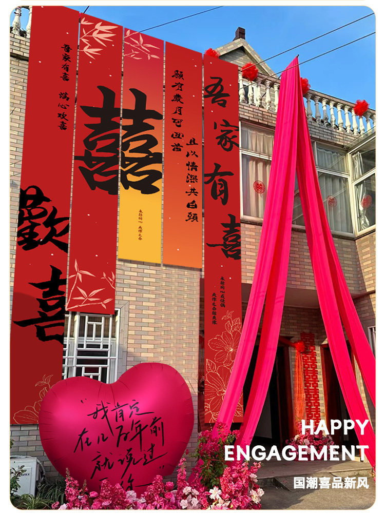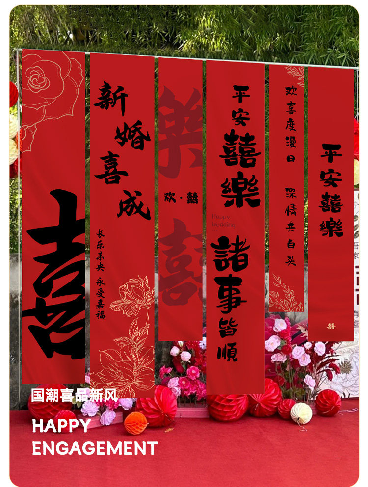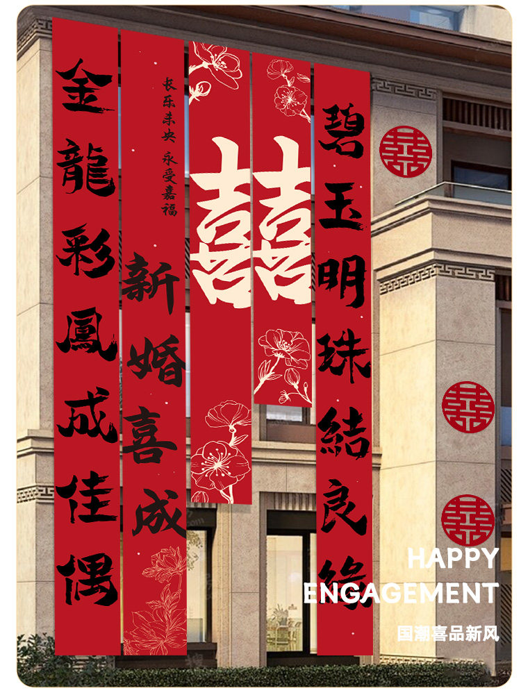 农村院子结婚装饰书法条幅挂布户外庭院室外横幅喜字婚礼婚房布置