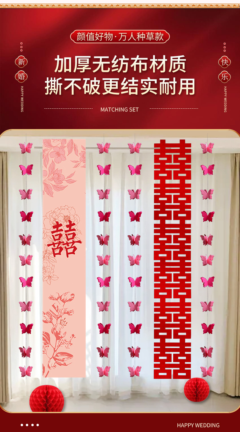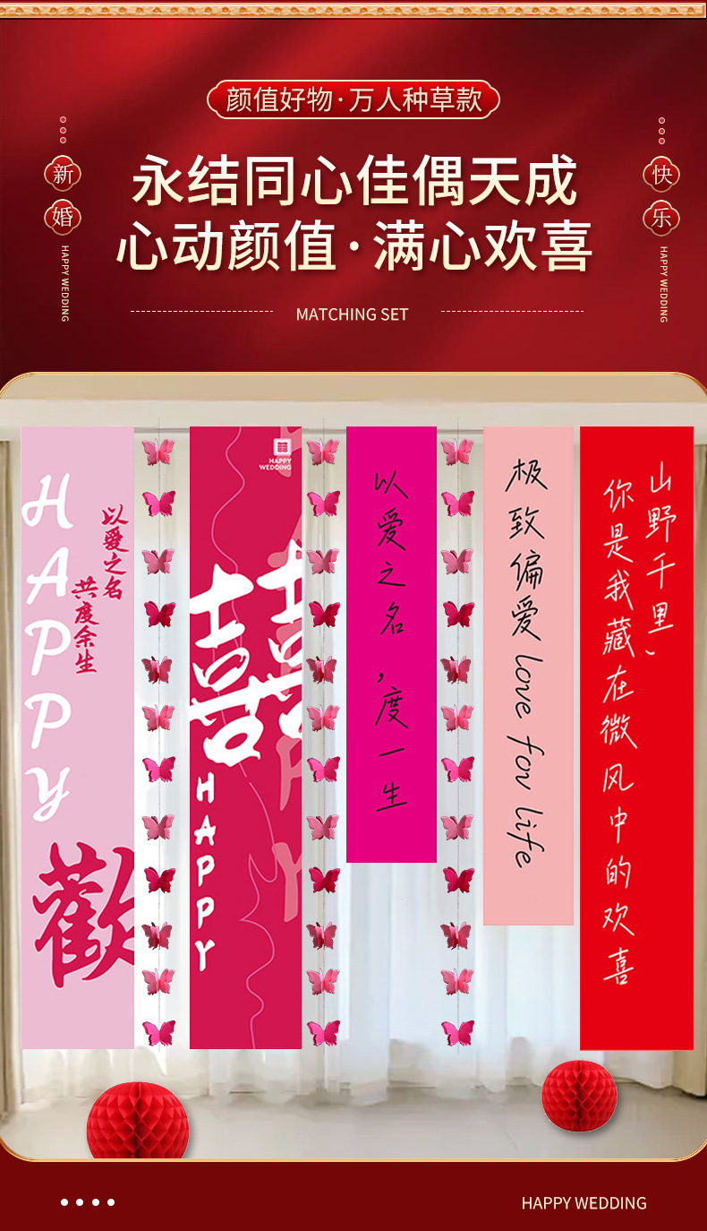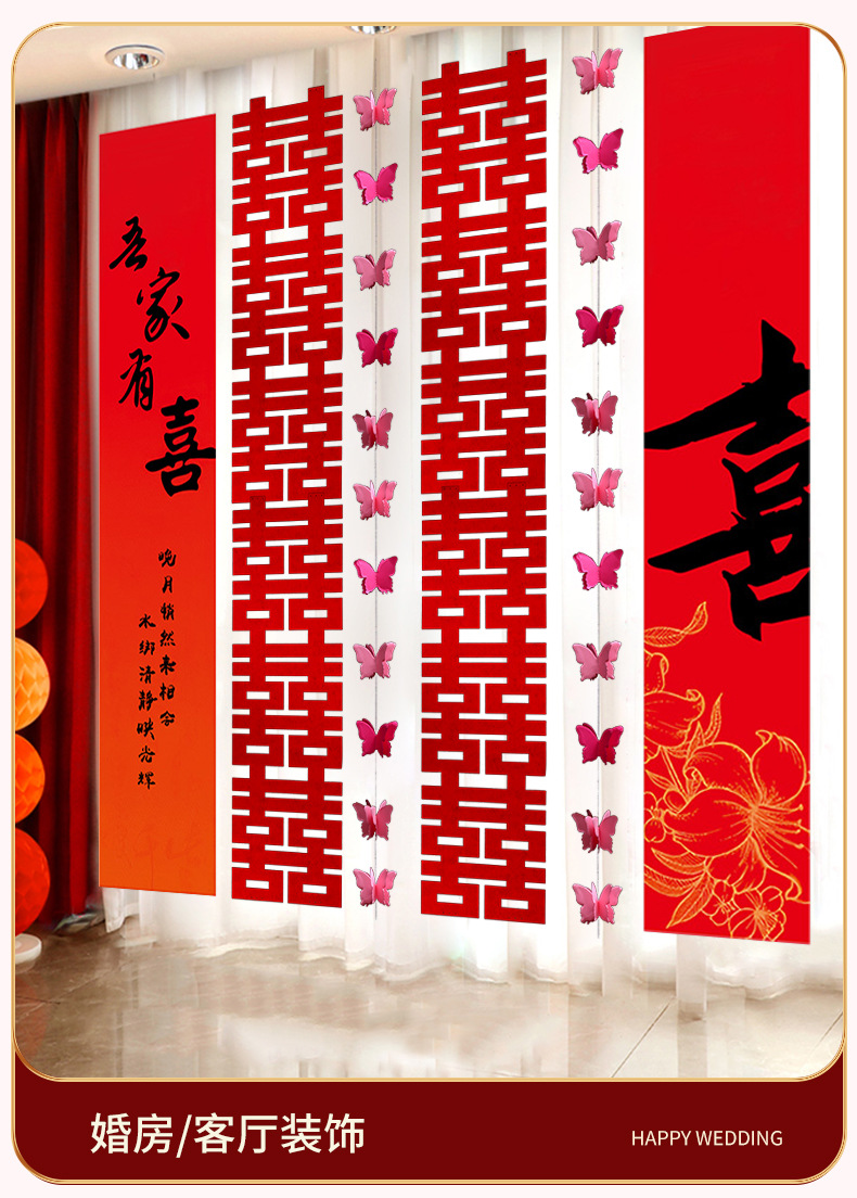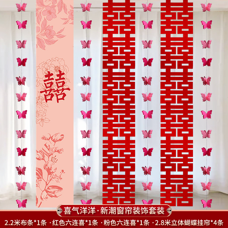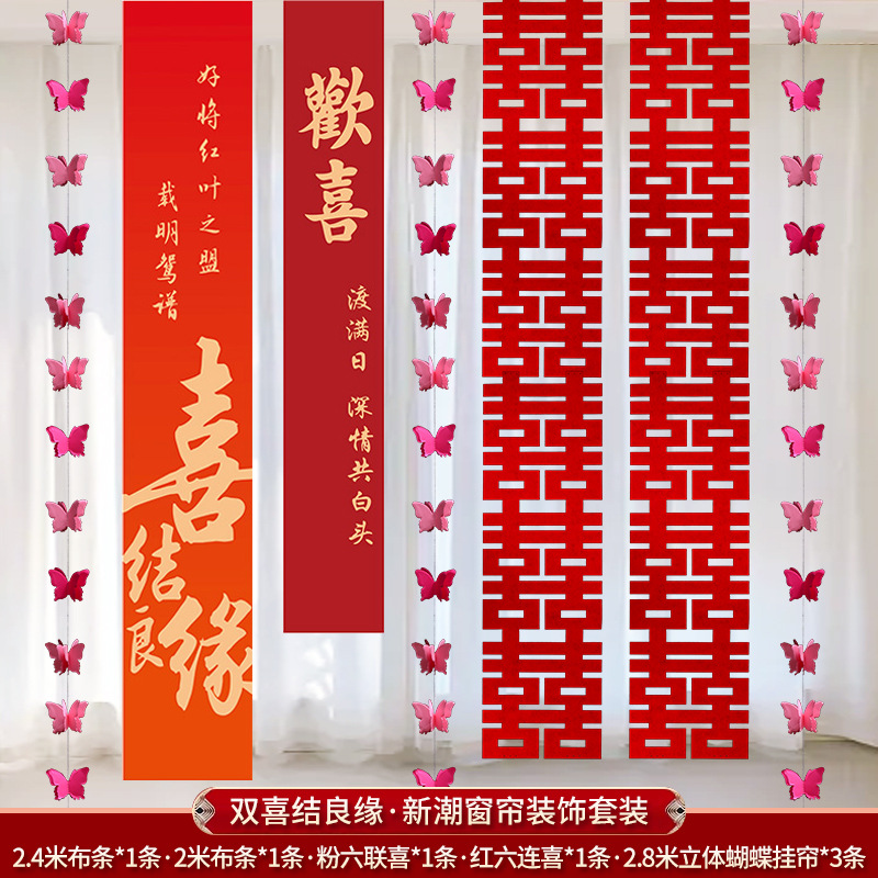结婚条幅挂布喜字挂件拉花婚房布置套装拍照背景墙订婚礼窗帘装饰