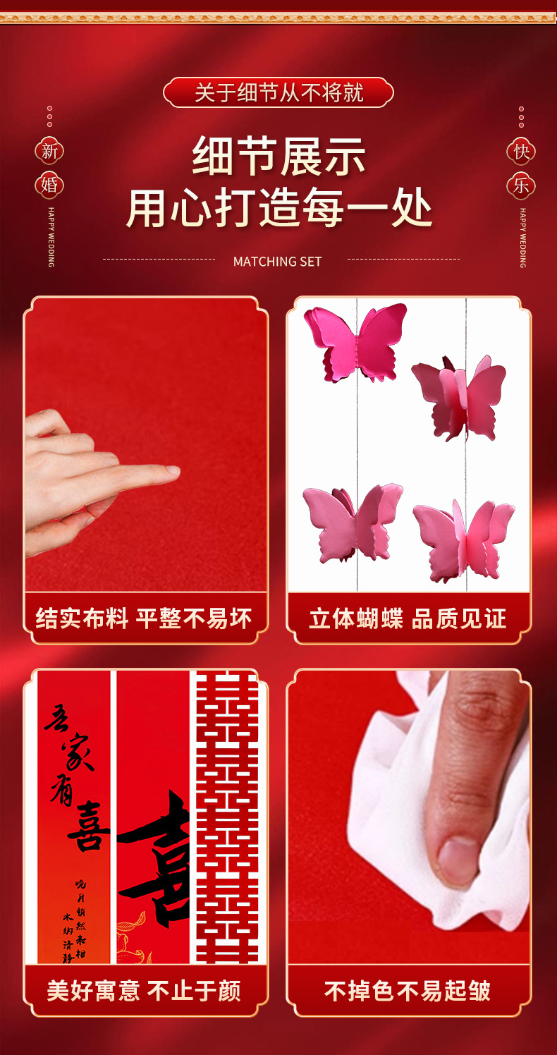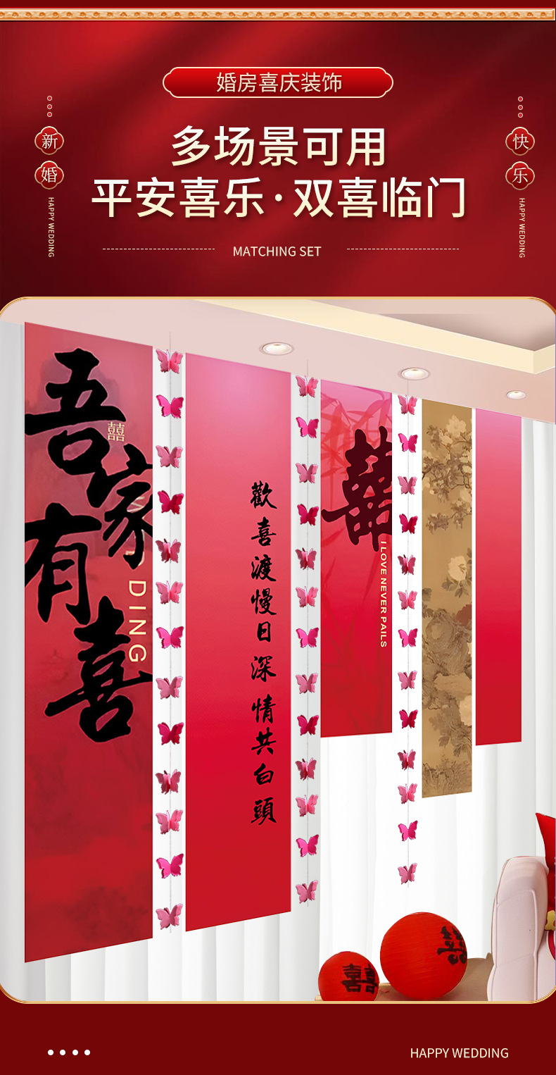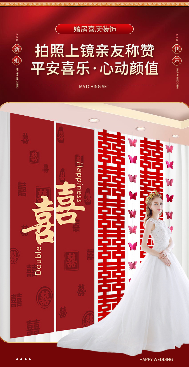 结婚条幅挂布喜字挂件拉花婚房布置套装拍照背景墙订婚礼窗帘装饰