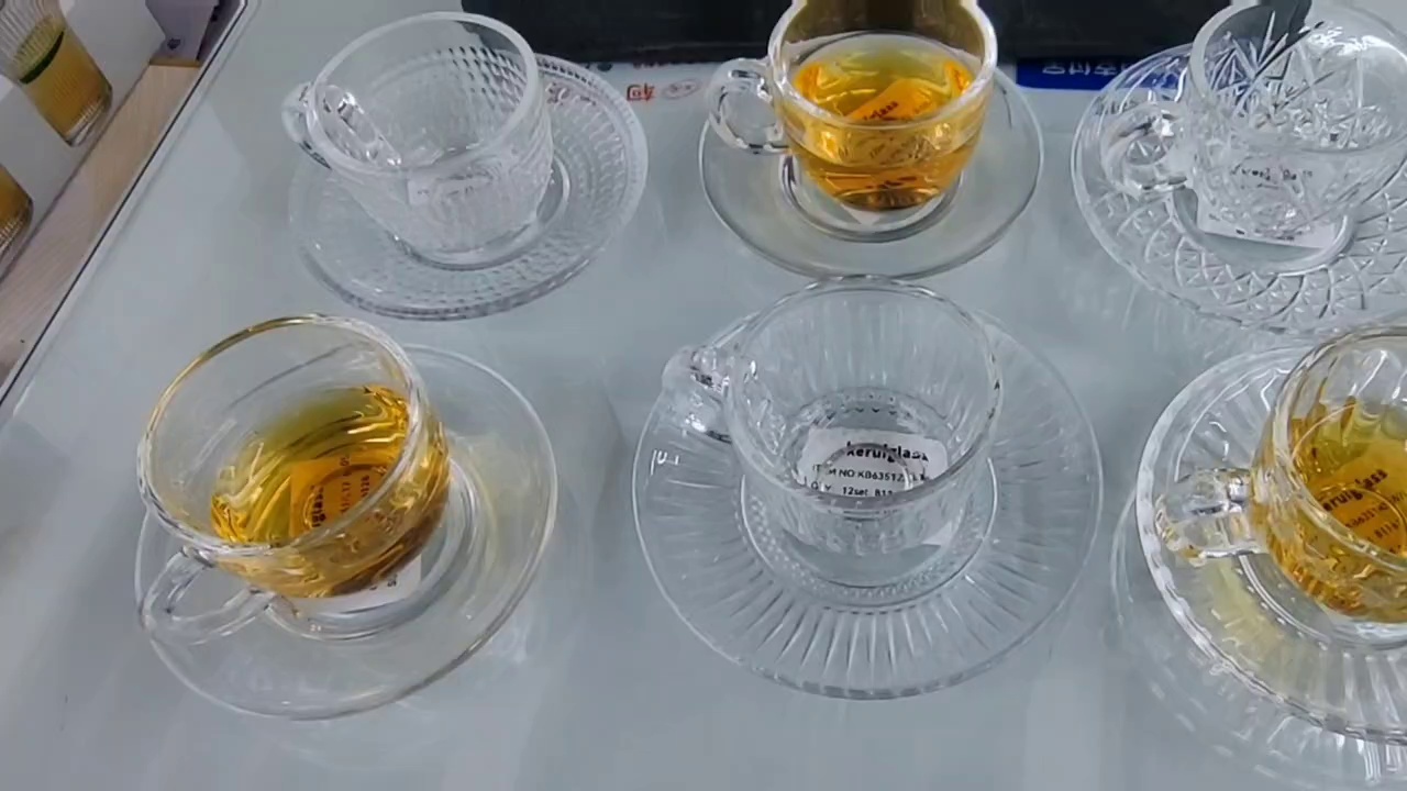 新款玻璃咖啡杯碟:杯6.3*5.1cm 85ml 碟10.8*1.5cm 共9个款,6杯6碟一盒,一箱12盒,体积0.054 量大从优