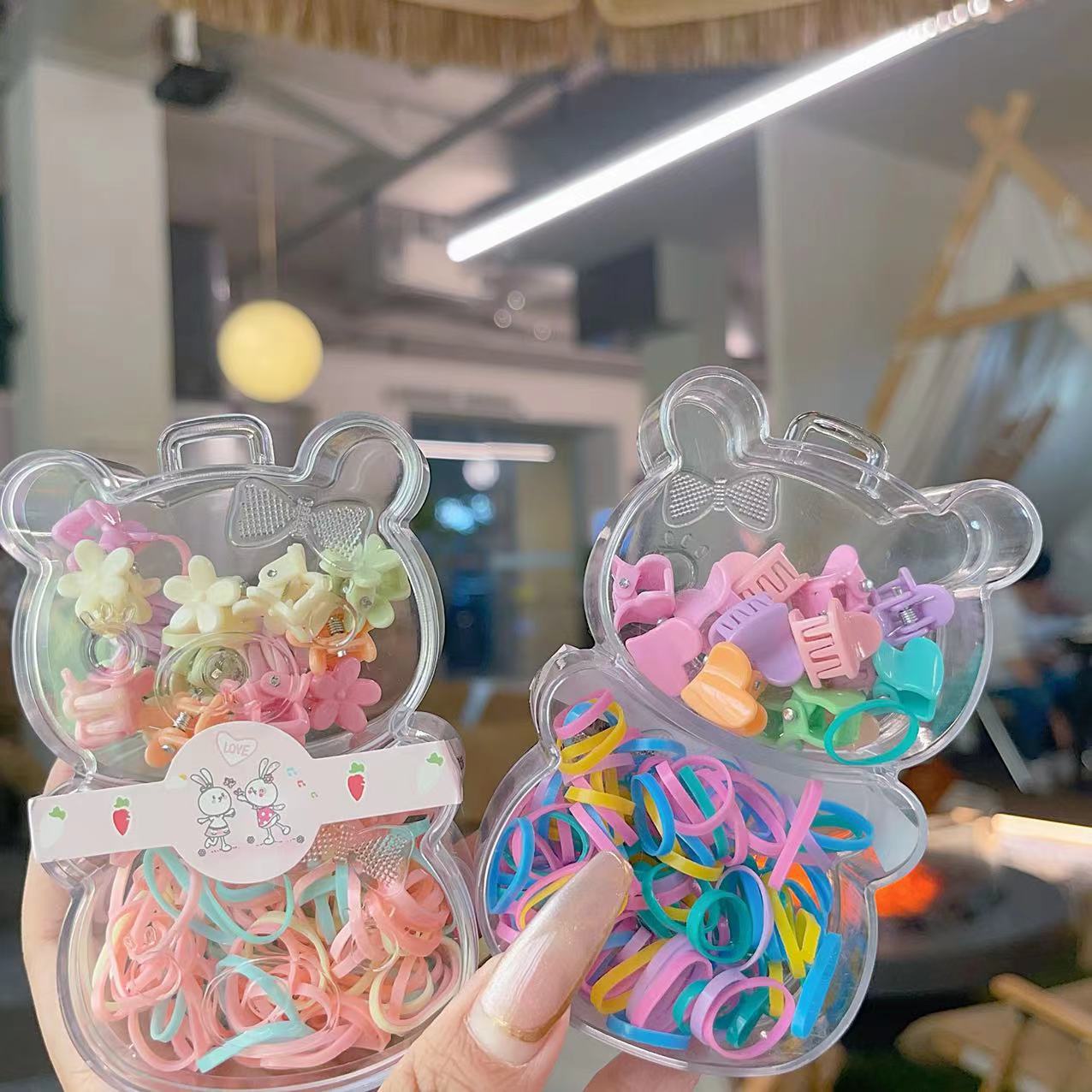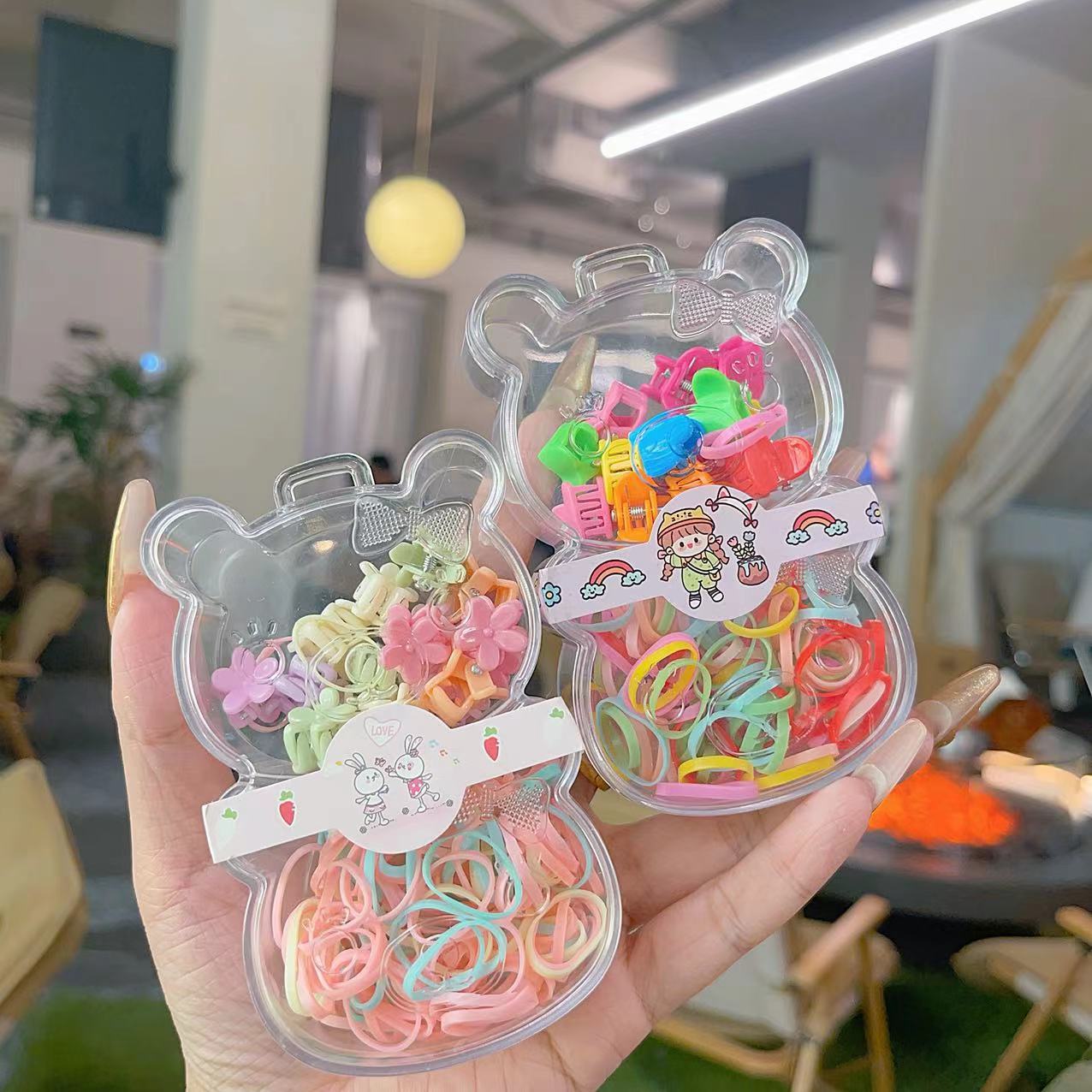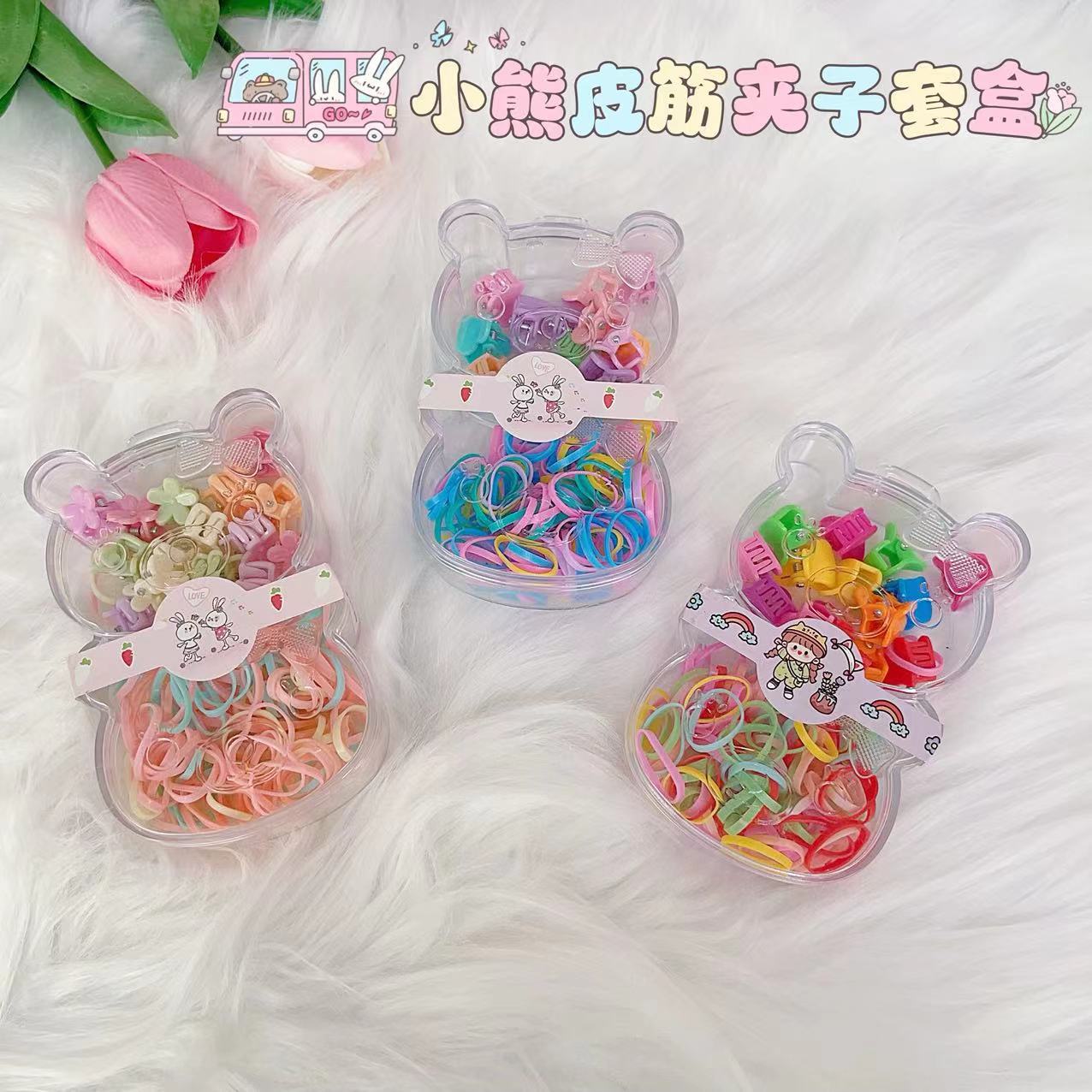 批发新款网红小熊盒套装小皮筋小抓夹宝宝发圈糖果色高弹力不伤发