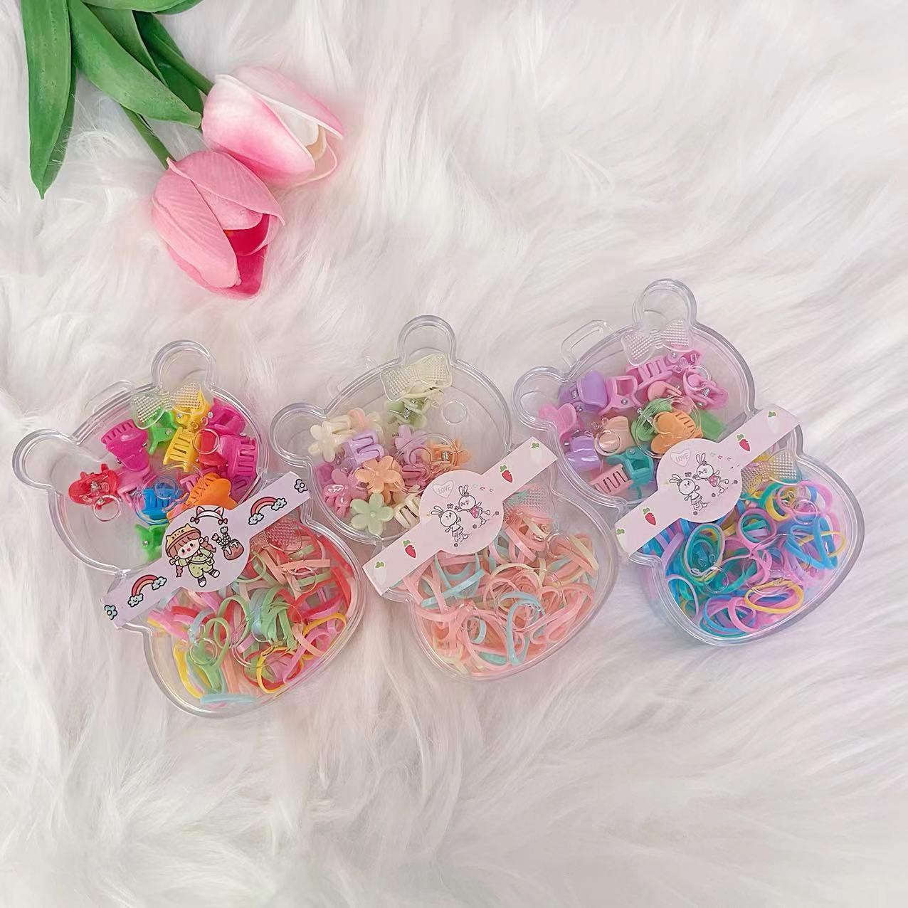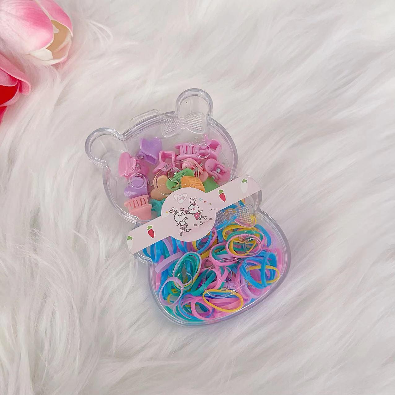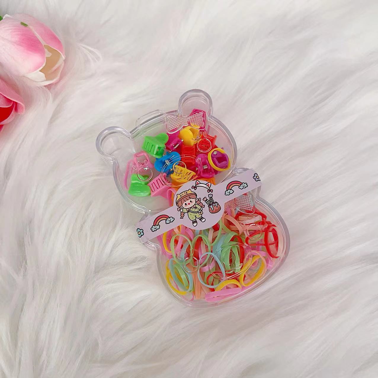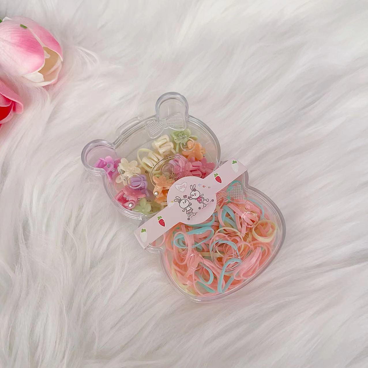 批发新款网红小熊盒套装小皮筋小抓夹宝宝发圈糖果色高弹力不伤发