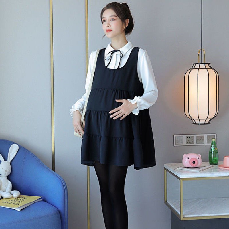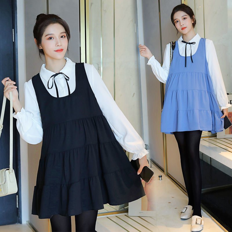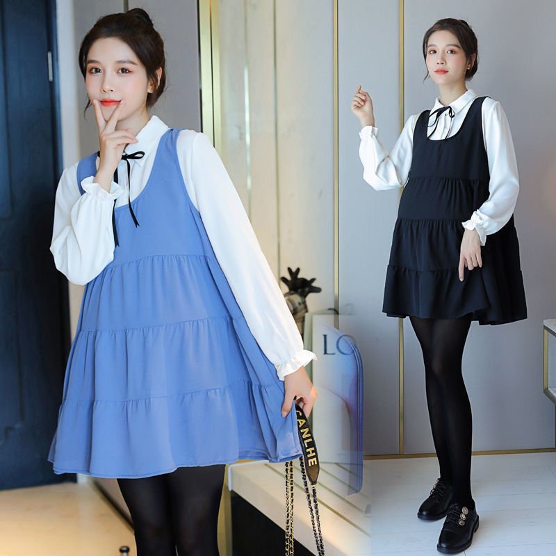 孕妇秋装连衣裙高端网红孕妇装春秋款上衣两件套时尚款小香风套装
