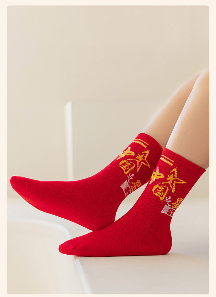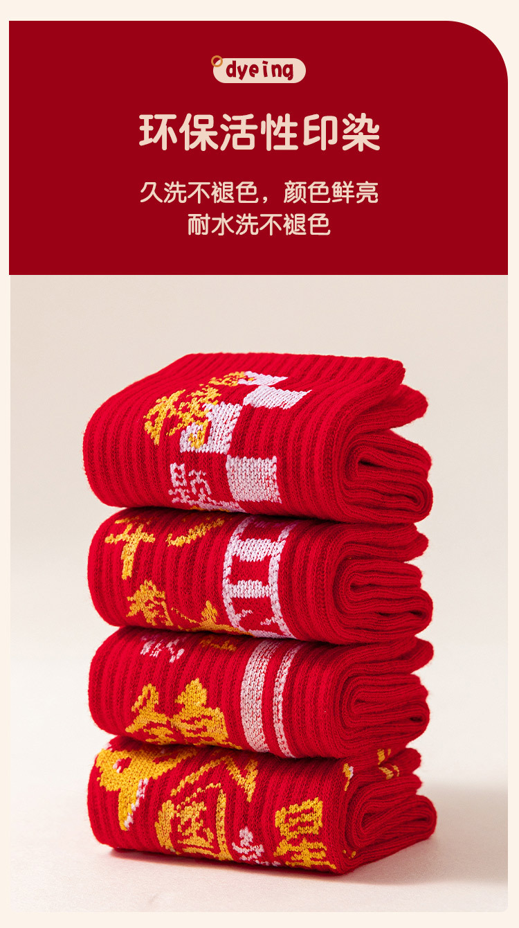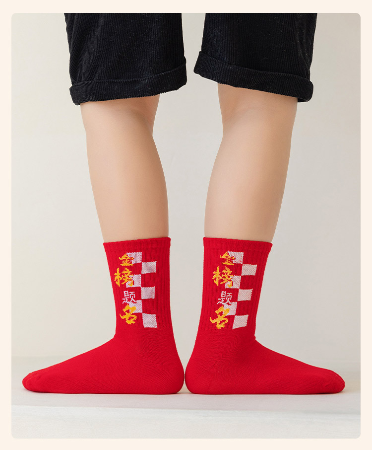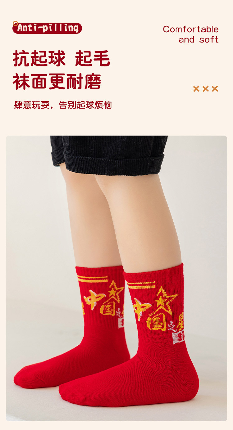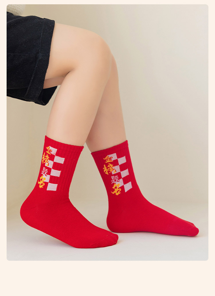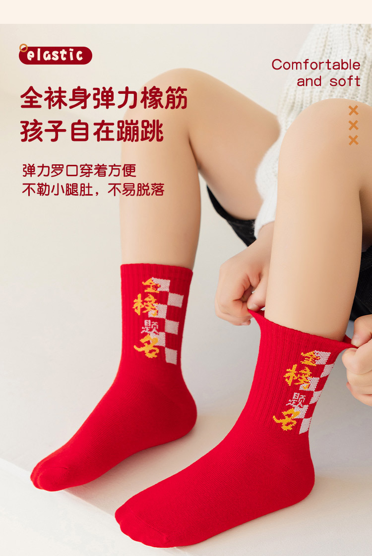 2025冬季新年新款男童袜子批发青少年本命年大红色中长筒精梳棉袜