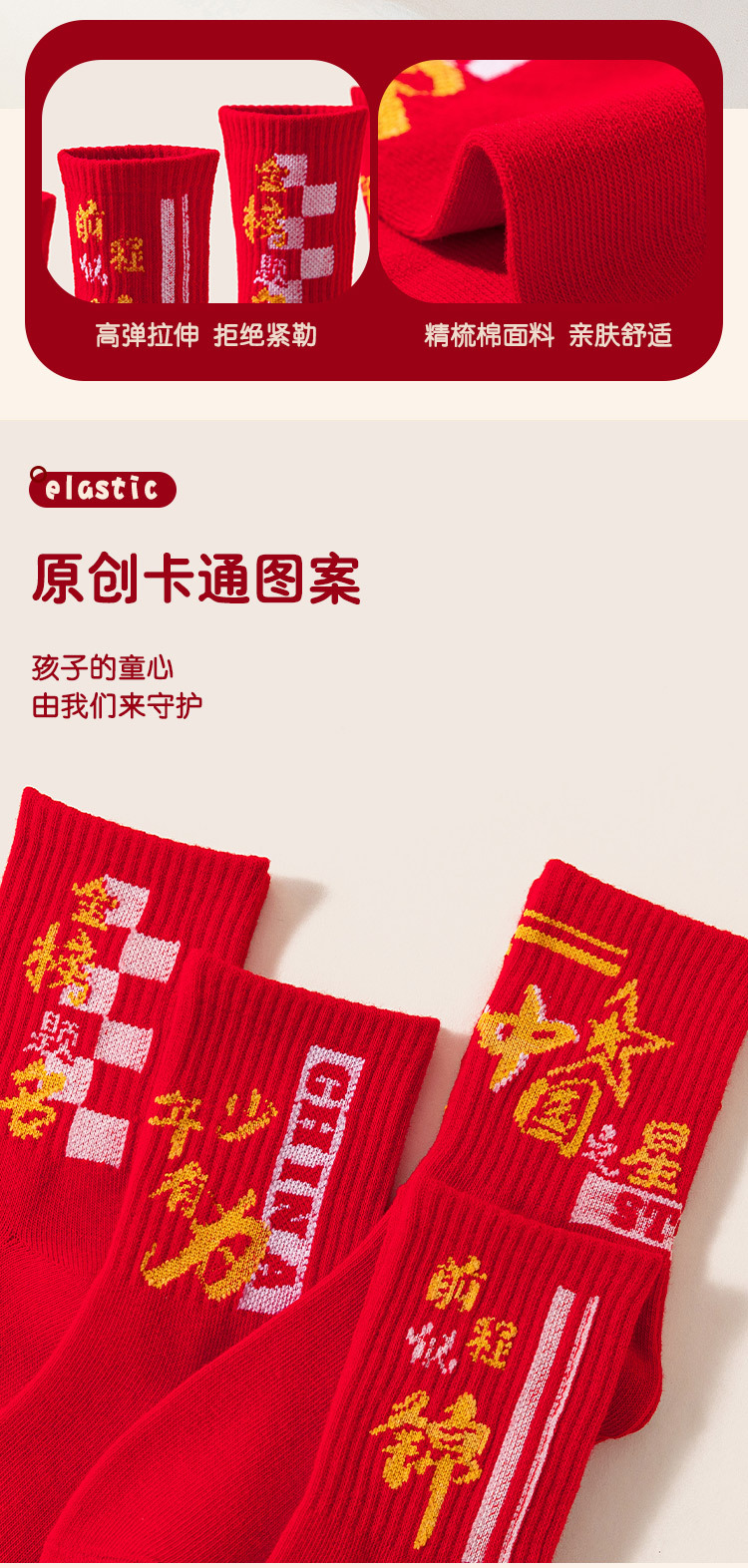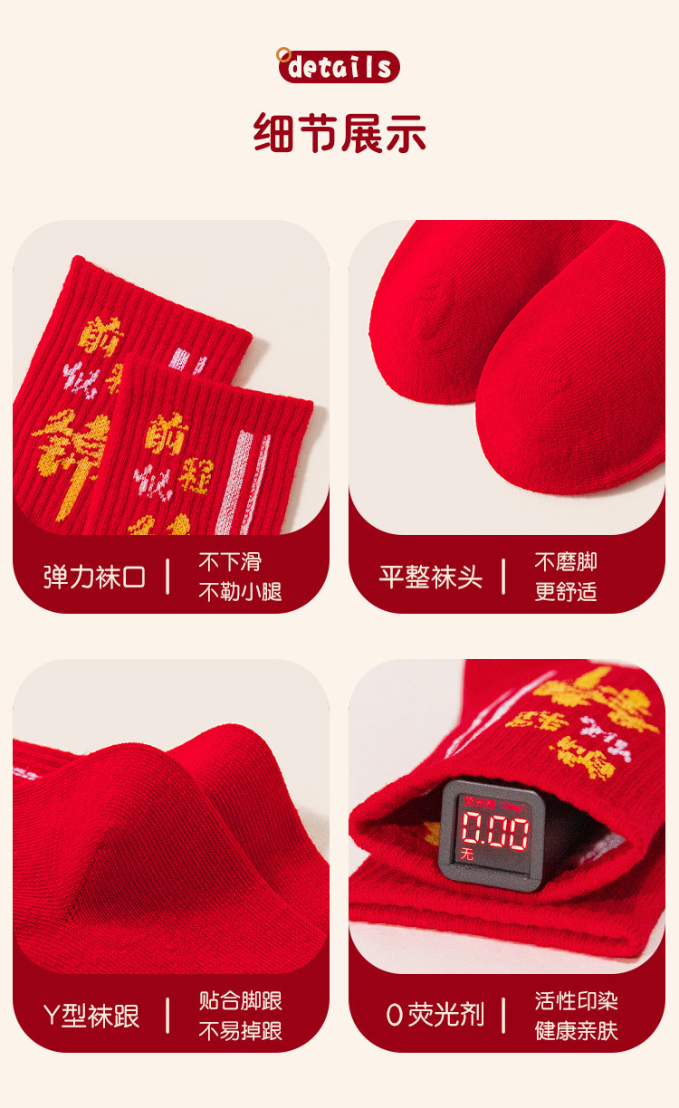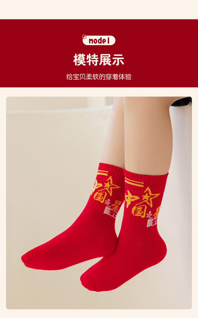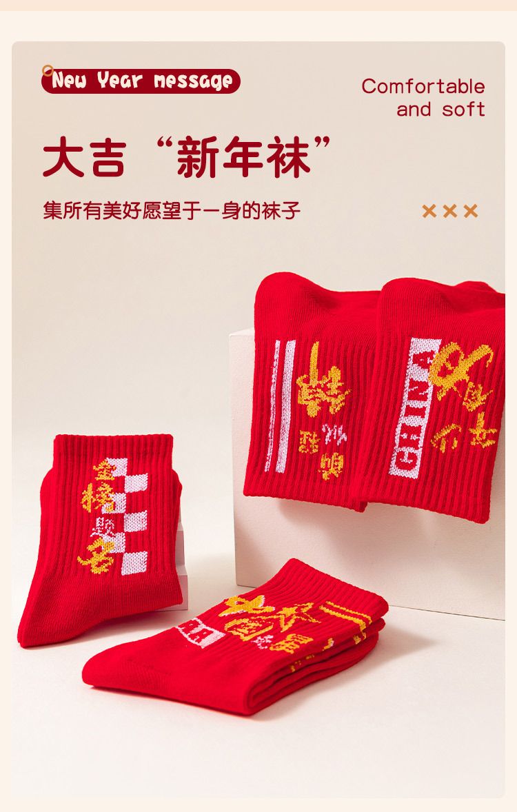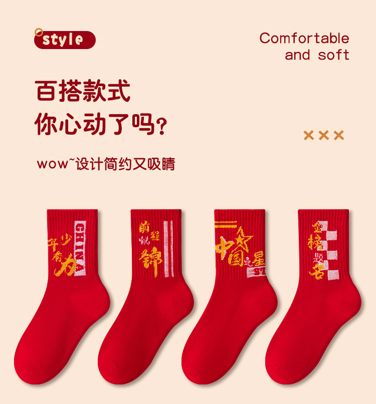 2025冬季新年新款男童袜子批发青少年本命年大红色中长筒精梳棉袜