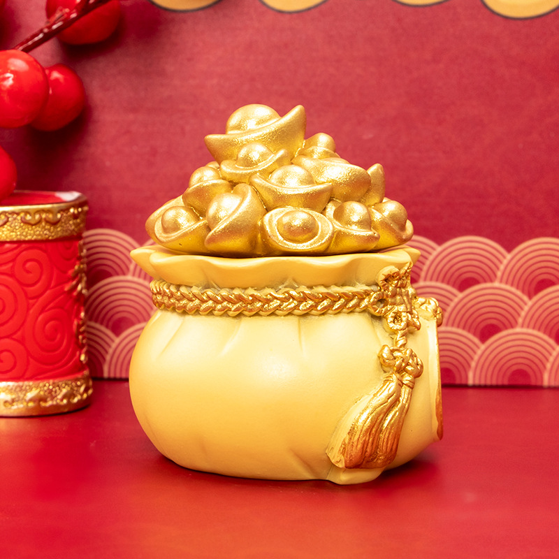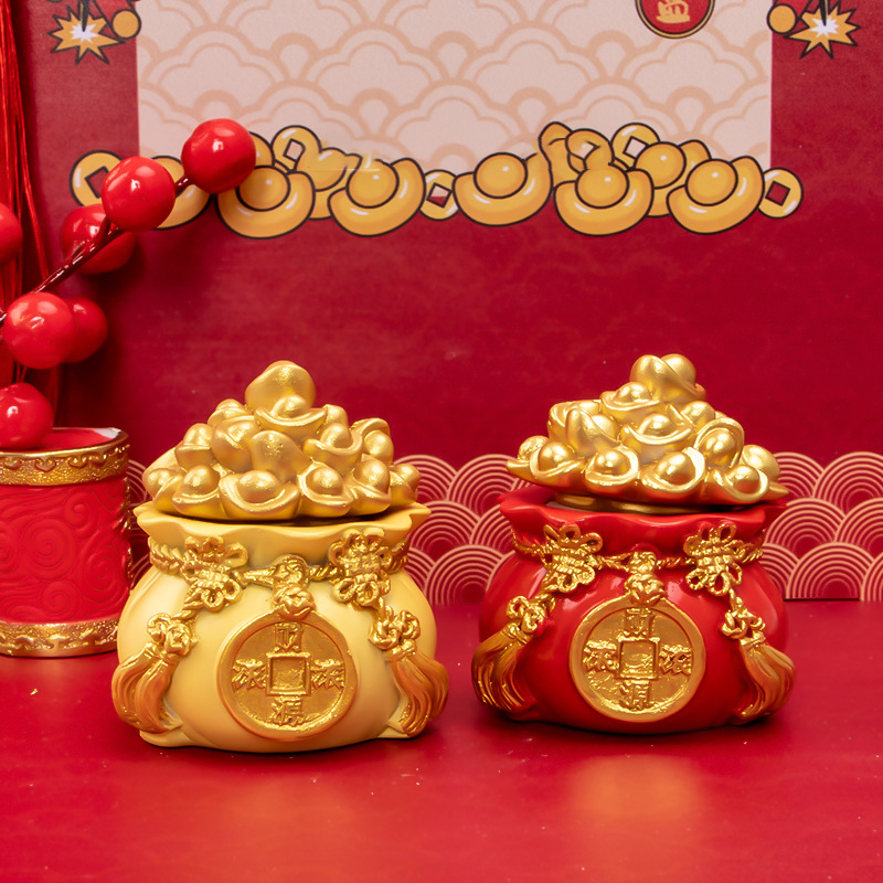 喜庆财源广进福袋钱袋红色家居装饰摆件国潮桌面树脂工艺品小摆件