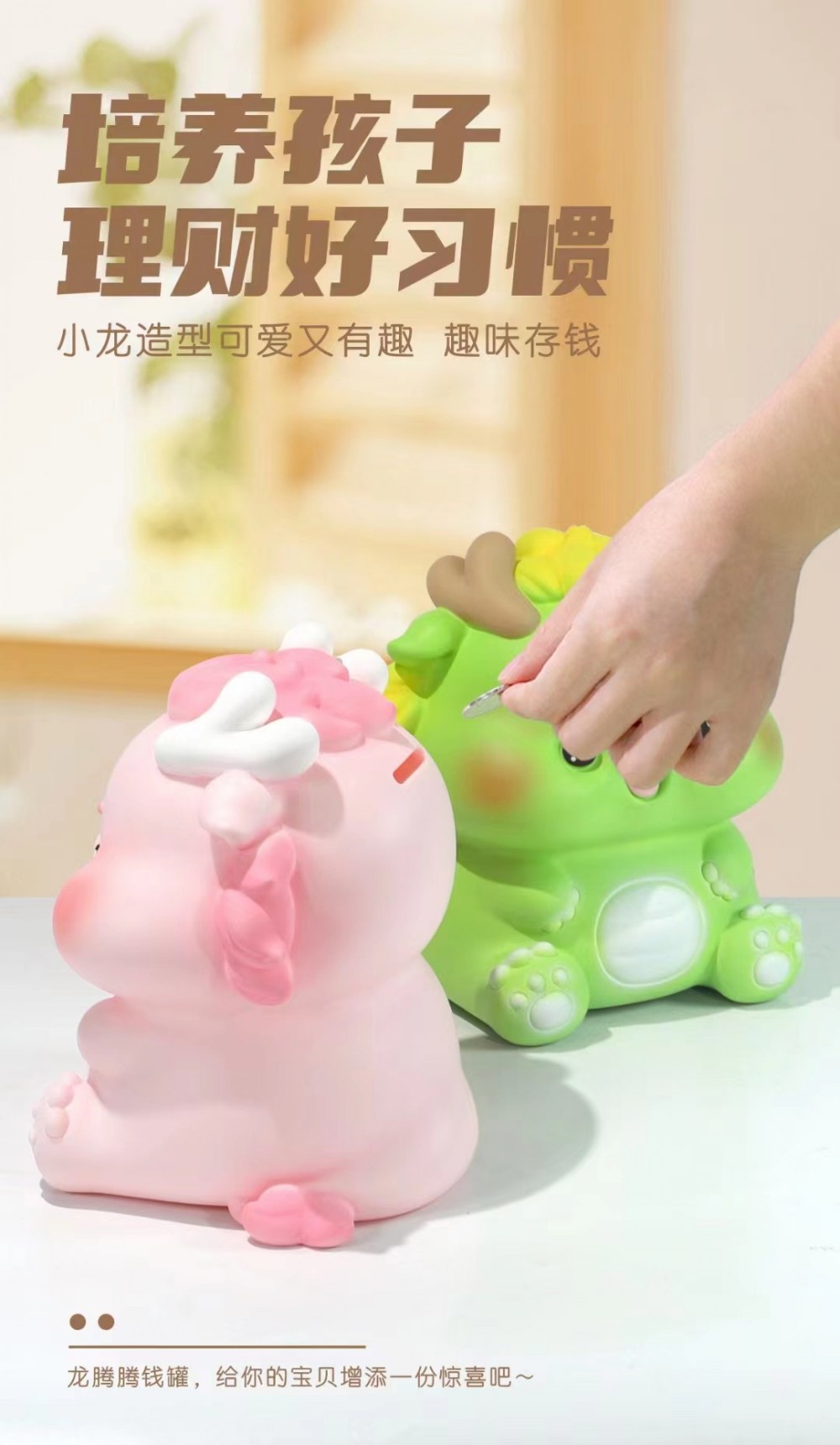 龙腾腾钱罐桌面可爱大容量可进可出卡通搪胶储蓄罐龙年儿童礼物