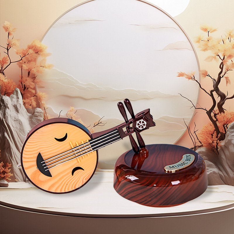复古创意月琴旋转音乐盒客厅装饰摆件情侣生日小礼品工艺跨境货源