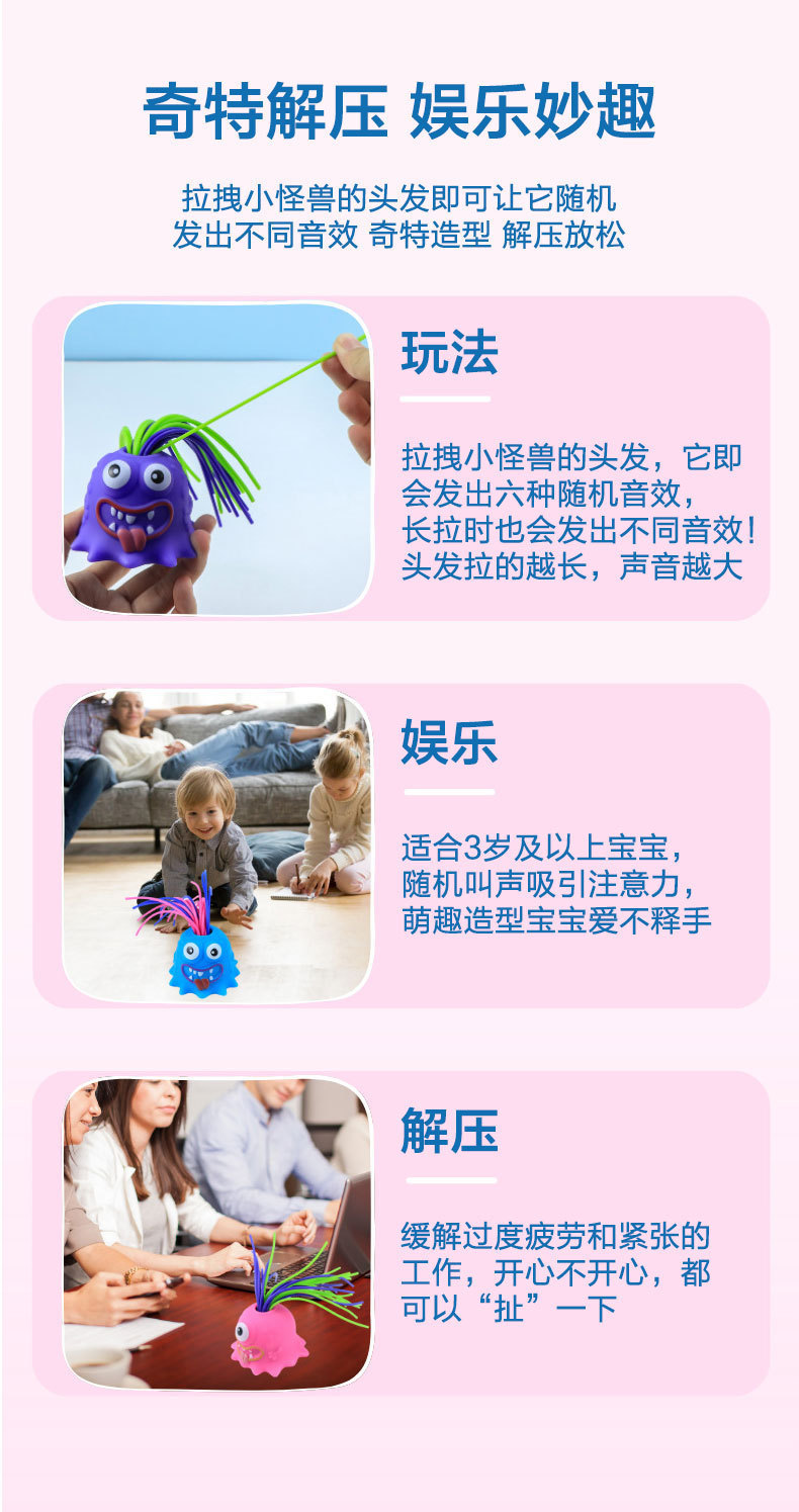 跨境抖音爆款尖叫扯头发玩具解压发泄拔头发益智玩具会叫小怪兽