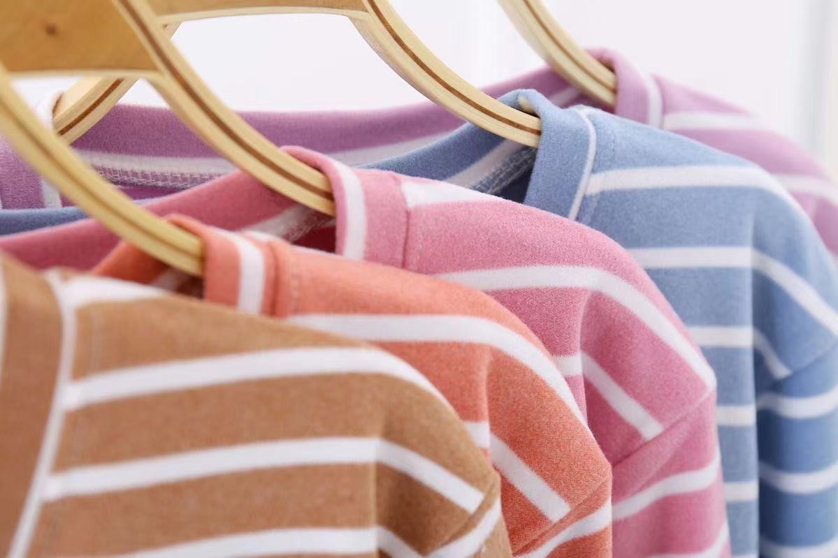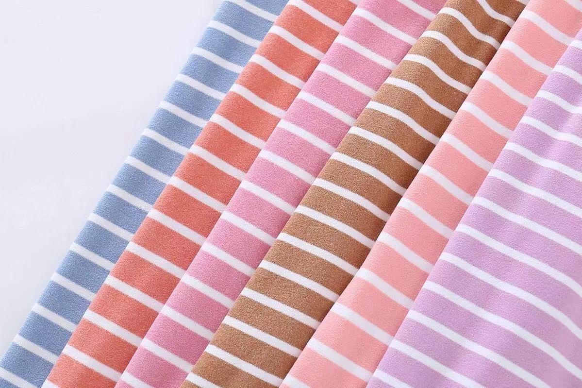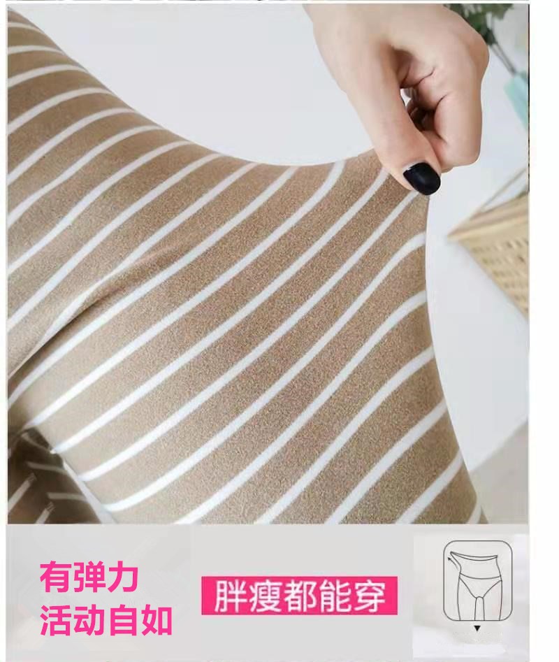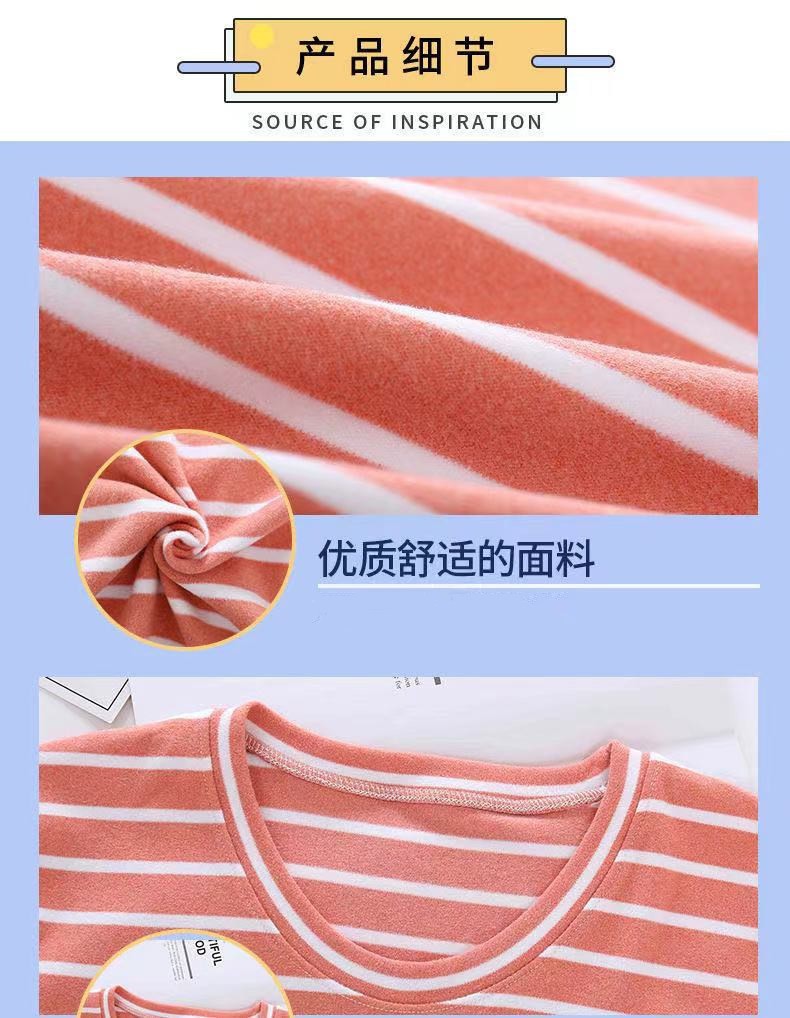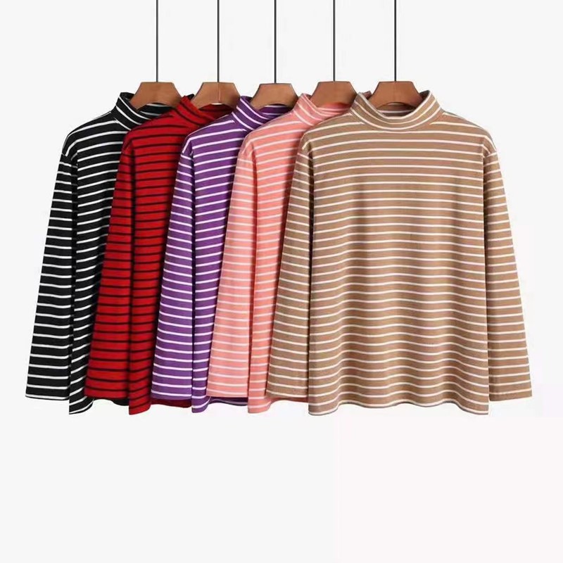 女士条纹德绒保暖衣秋冬半高领打底衫加绒秋衣双面德绒长袖上衣