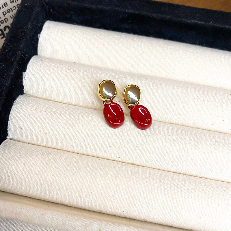 耳环爆款小众复古耳环高级感精致耳饰银针安可拉红爱心花朵耳钉女