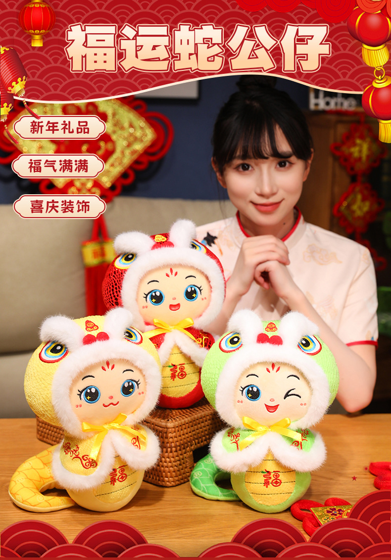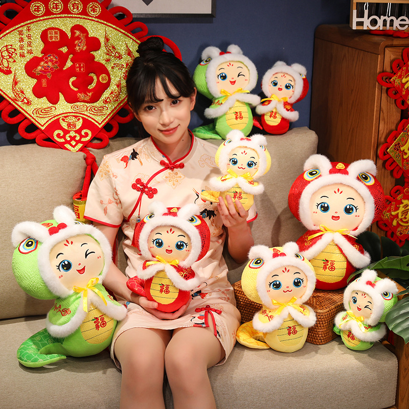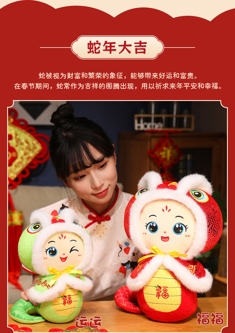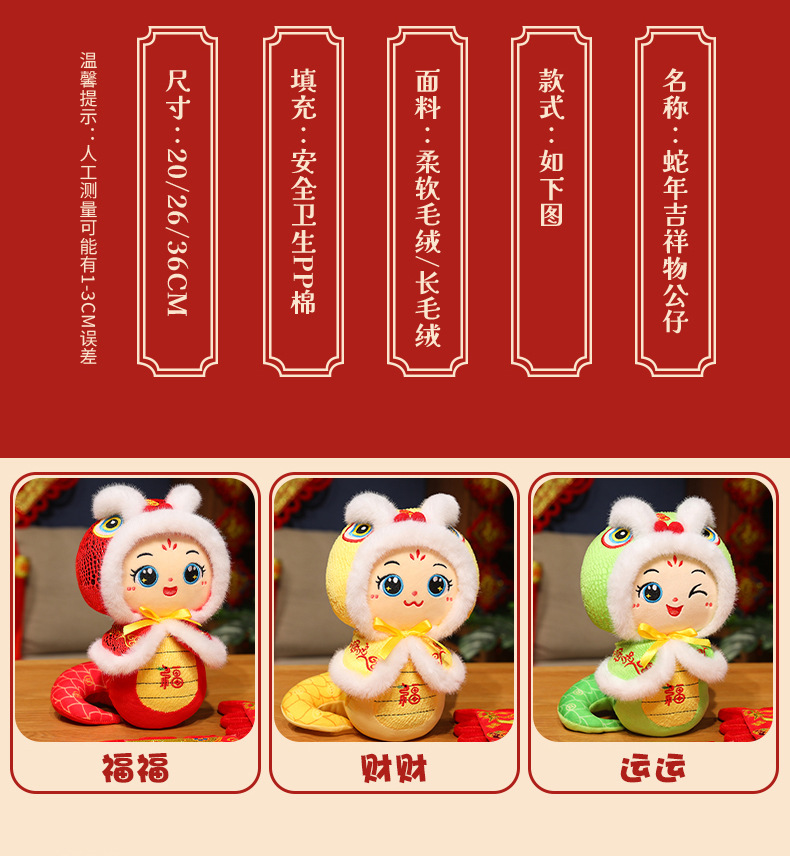 2025蛇年吉祥物披风蛇公仔玩偶公司年会礼物生肖娃娃年货毛绒玩具