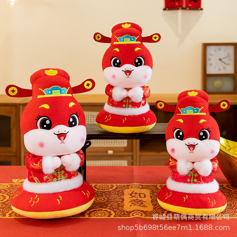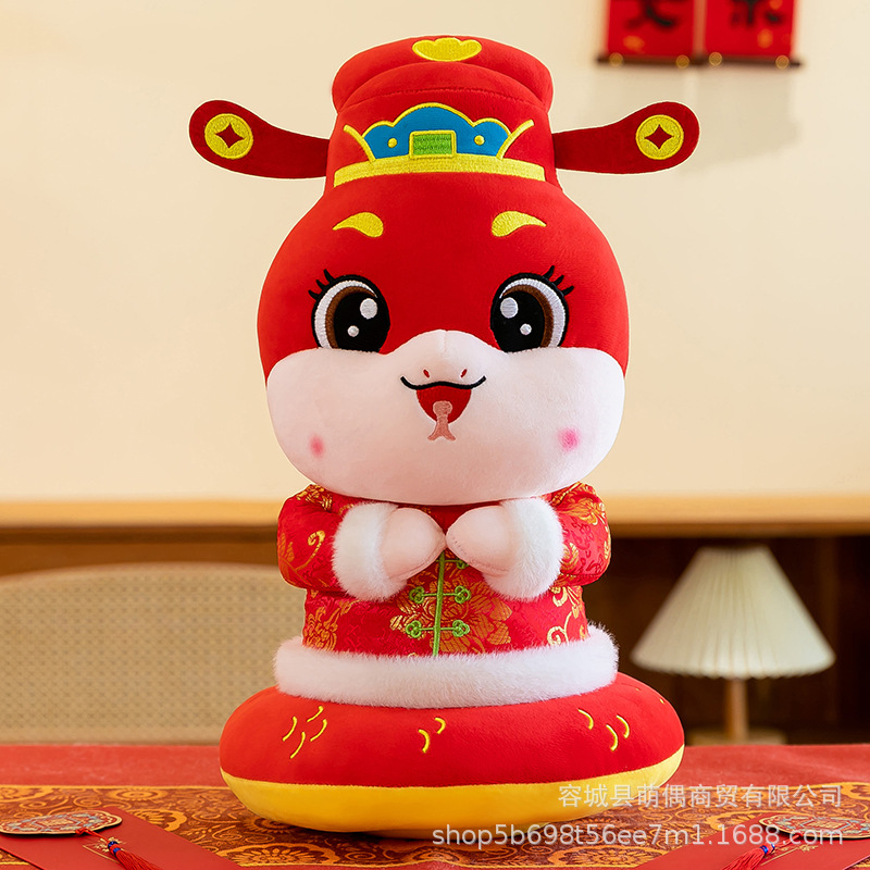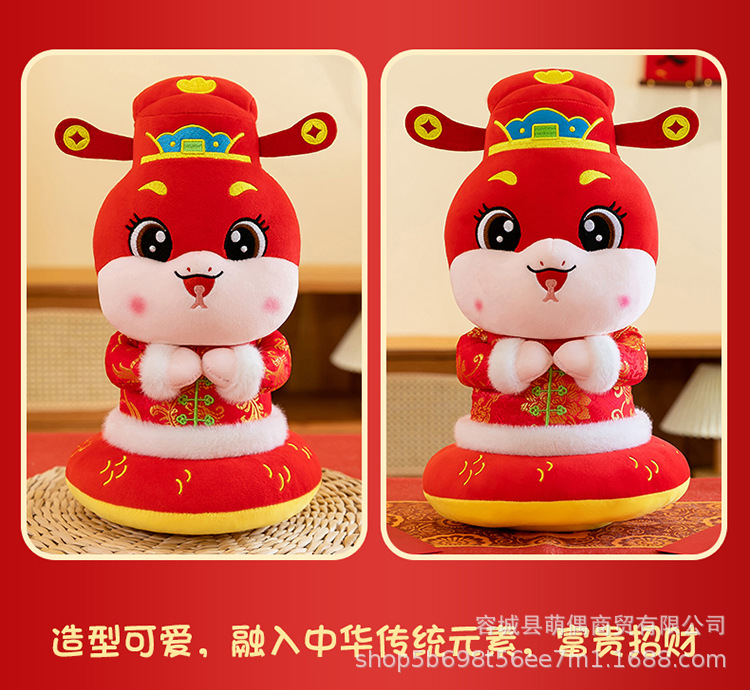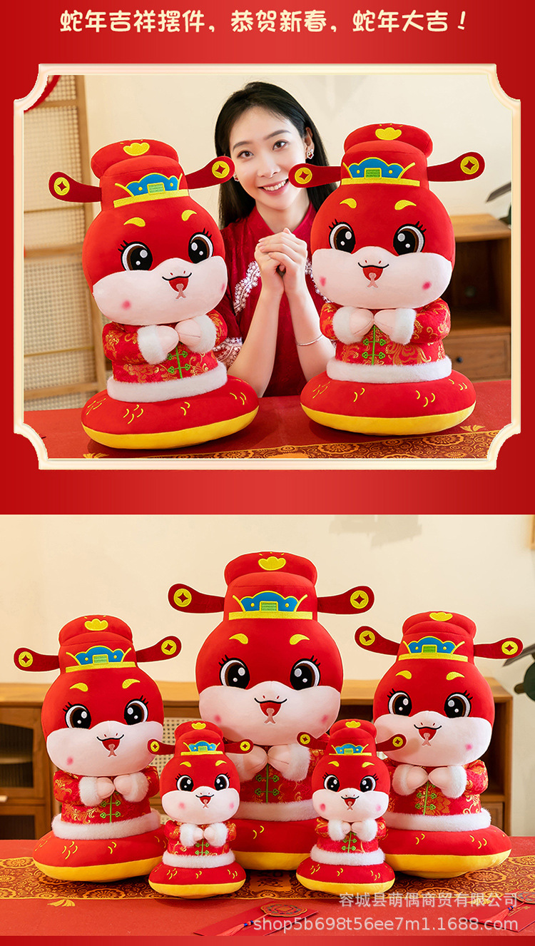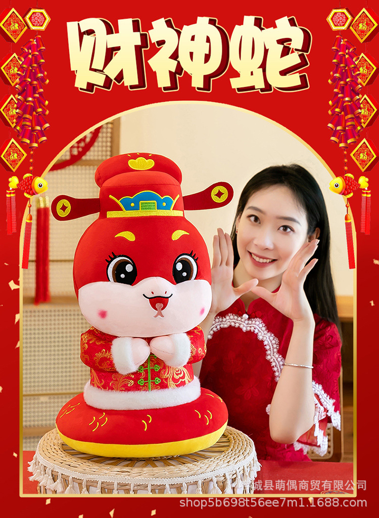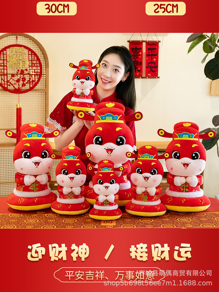 新款蛇年吉祥物公仔年货财神蛇毛绒玩具年会活动礼品庙会抓机娃娃