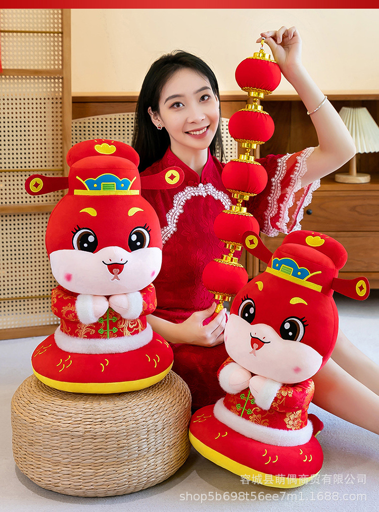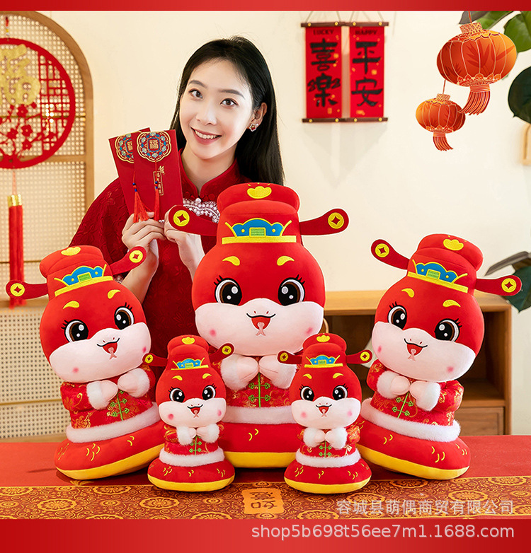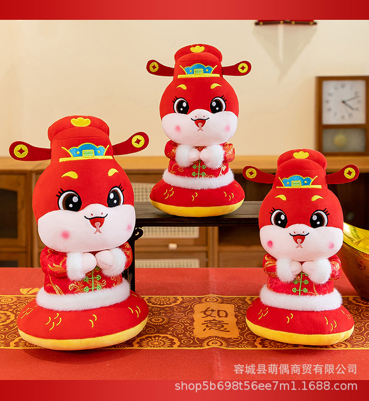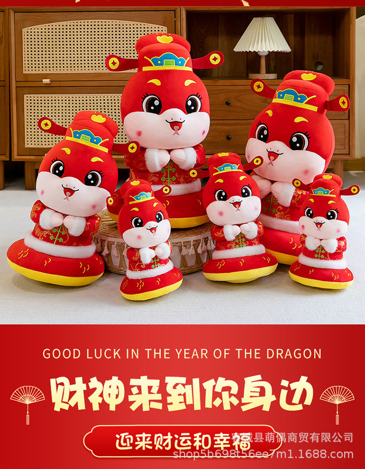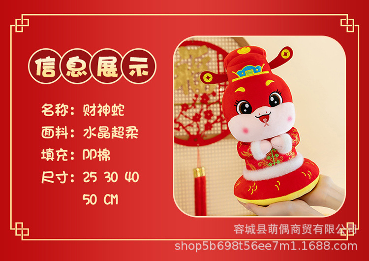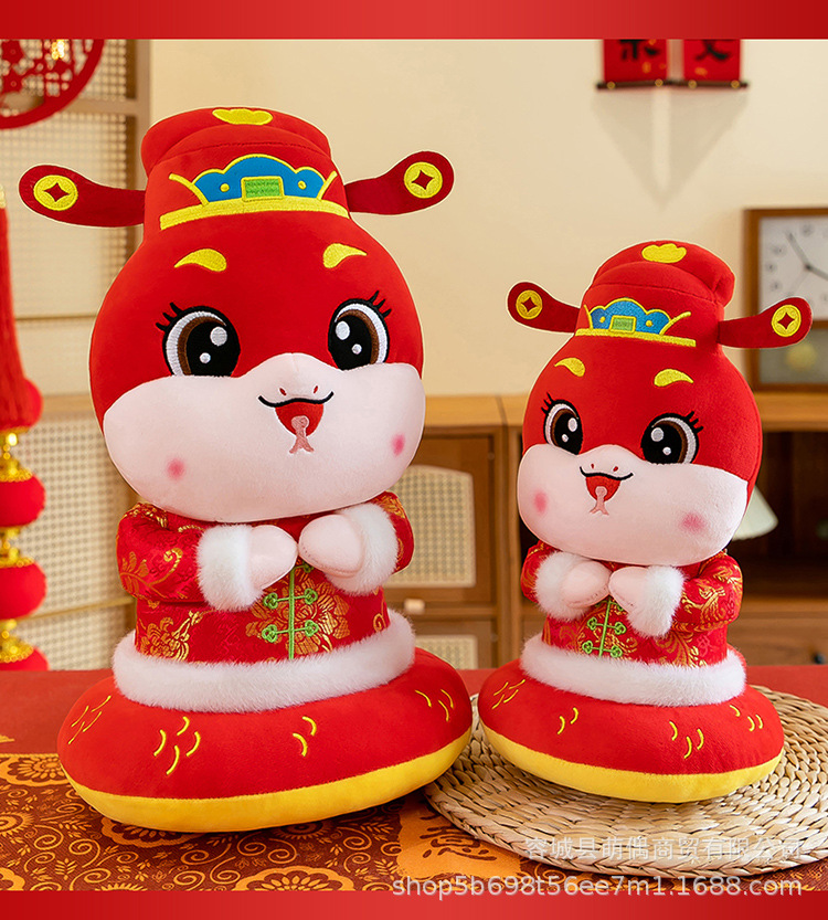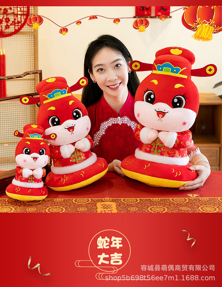 新款蛇年吉祥物公仔年货财神蛇毛绒玩具年会活动礼品庙会抓机娃娃