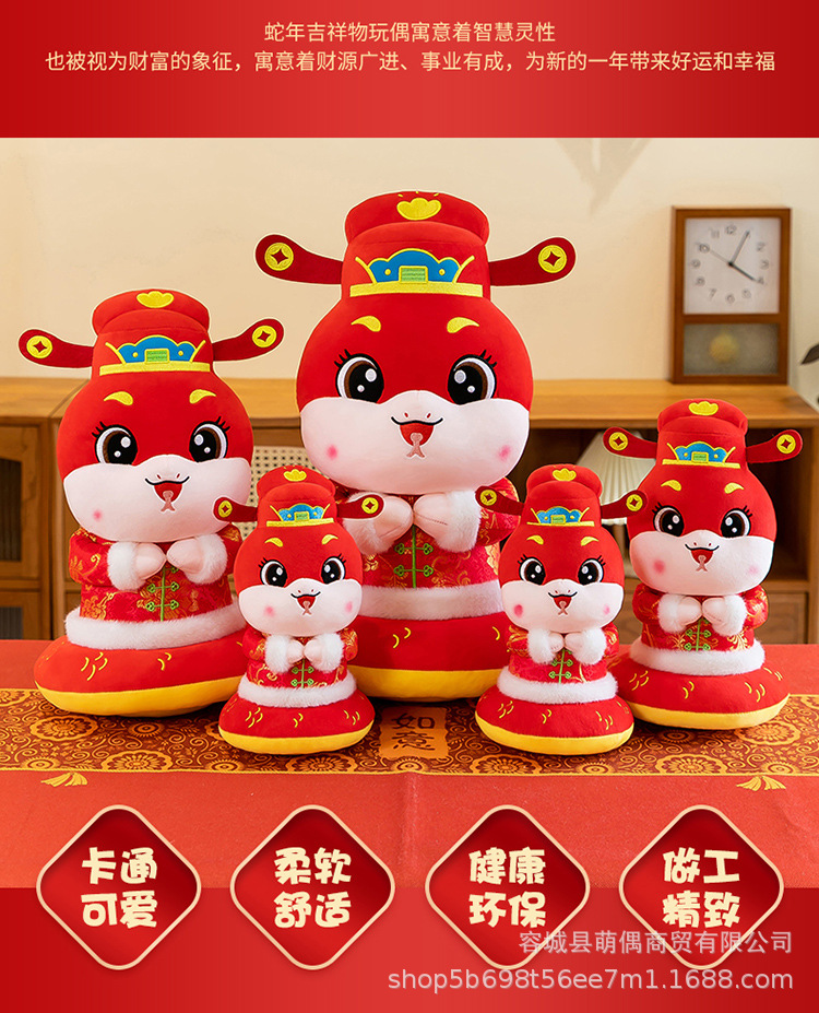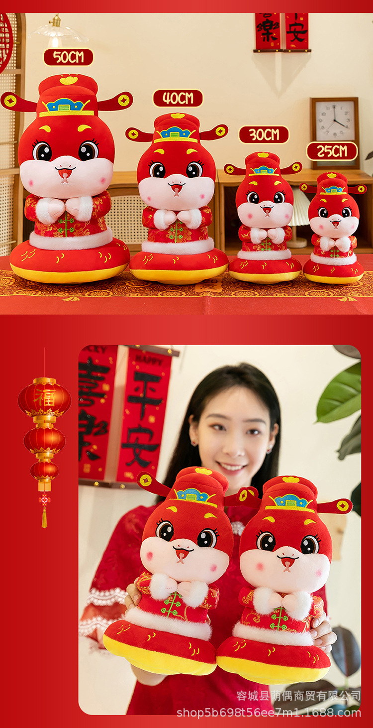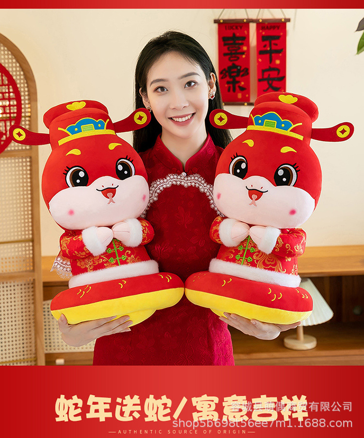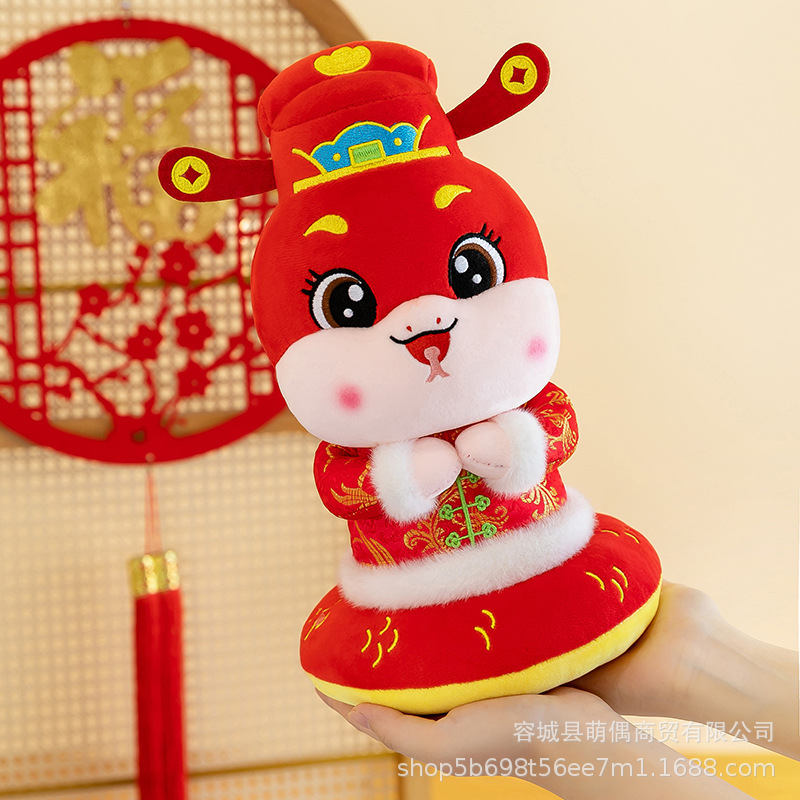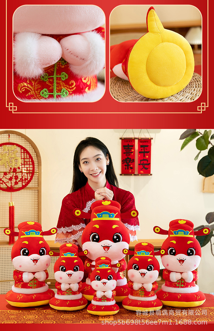 新款蛇年吉祥物公仔年货财神蛇毛绒玩具年会活动礼品庙会抓机娃娃