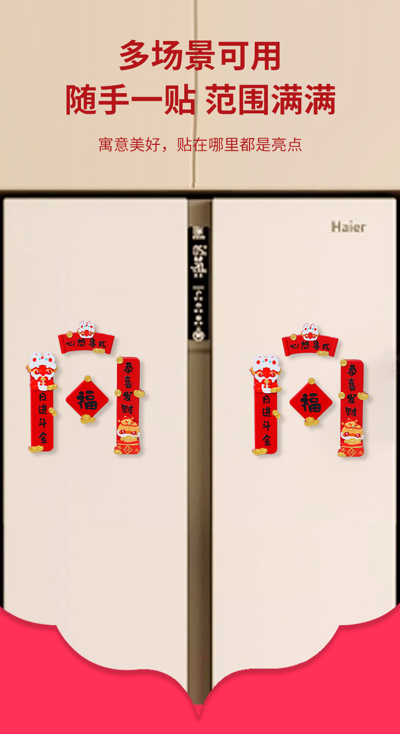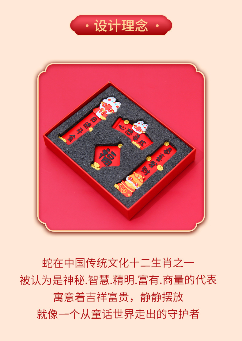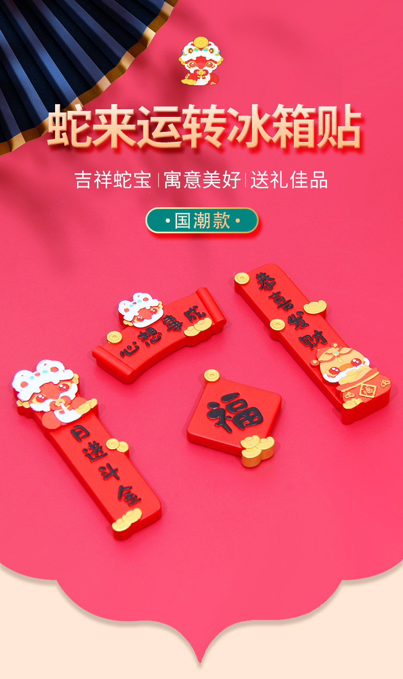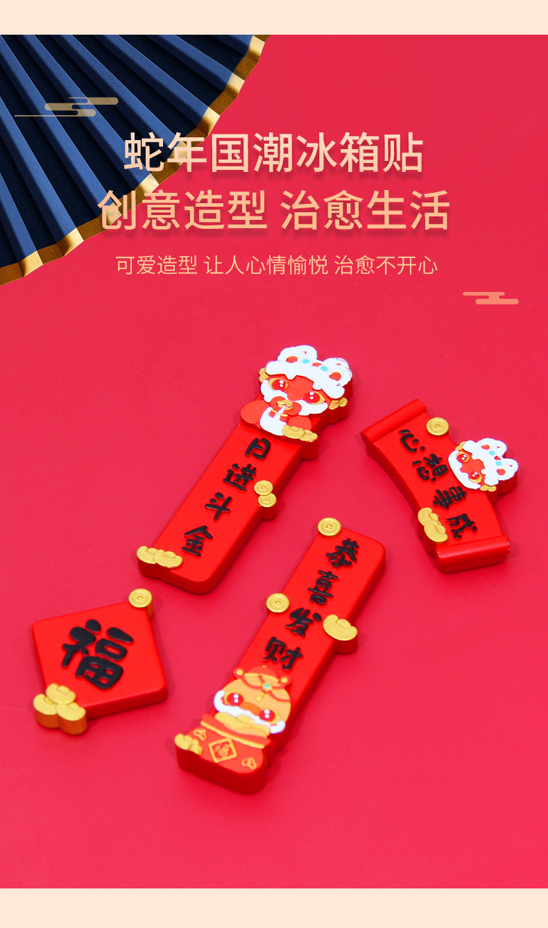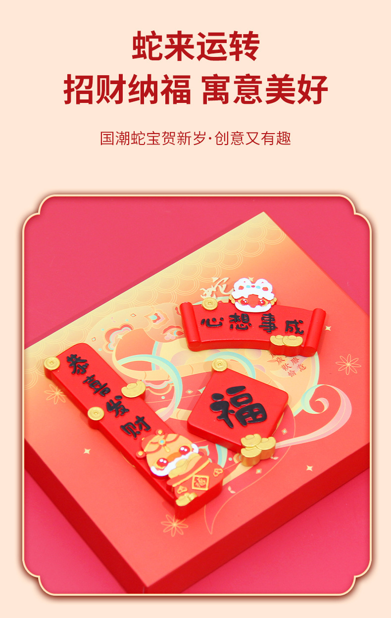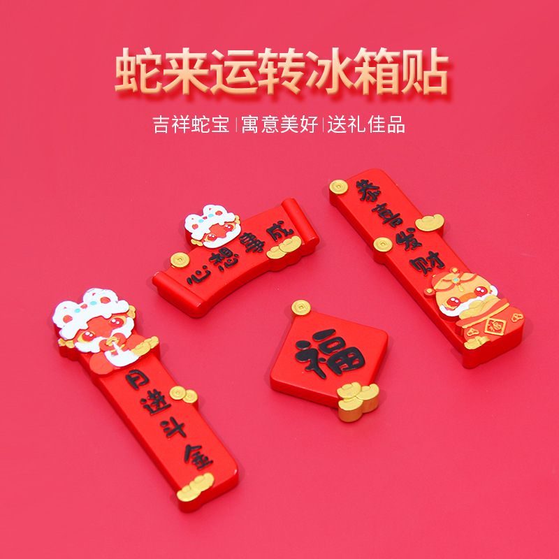 蛇年礼品蛇来运转磁吸冰箱贴春节3D立体福字贴对联磁性贴新年礼物