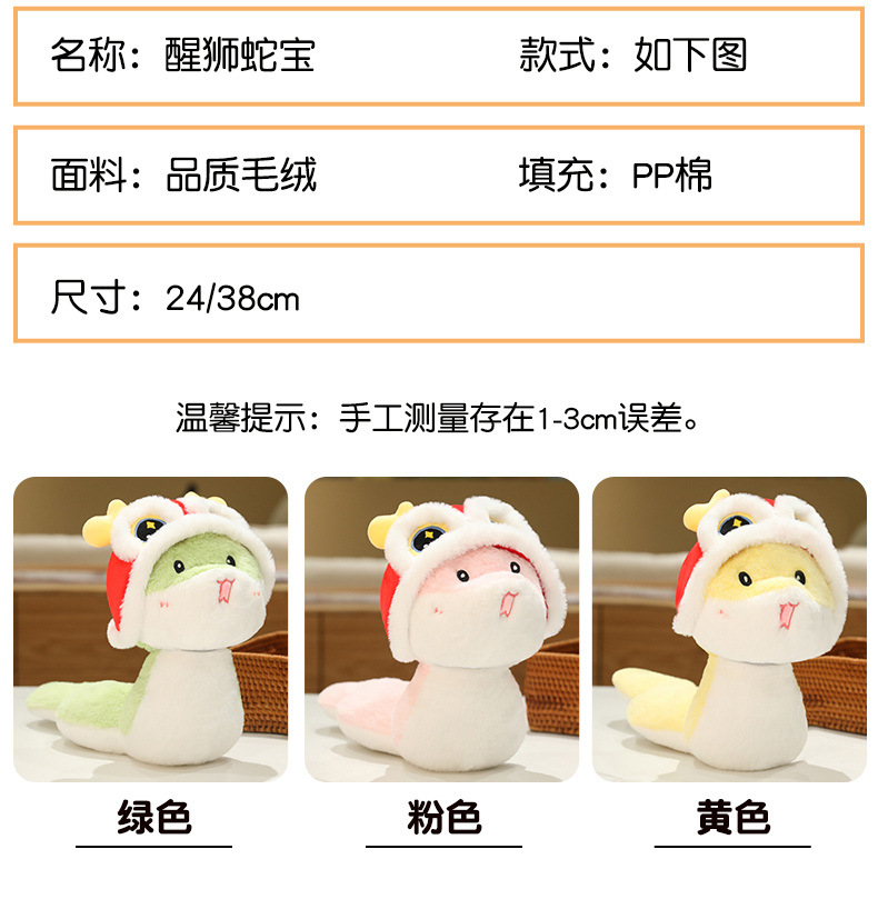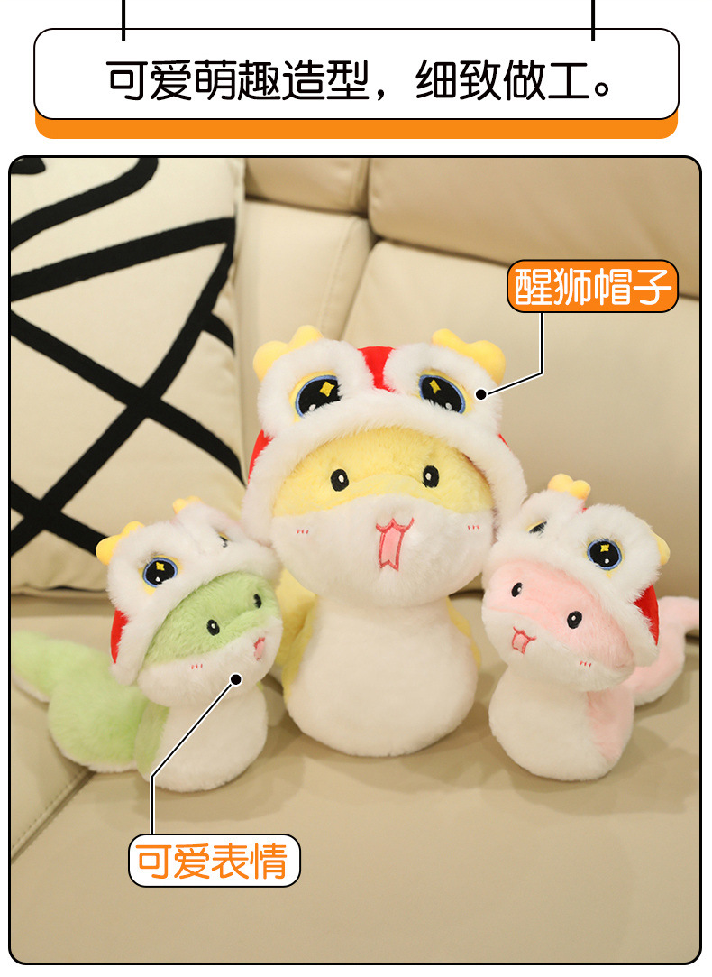 蛇年吉祥物公仔毛绒玩具醒狮蛇玩偶布娃娃生肖蛇公司年会礼物批发