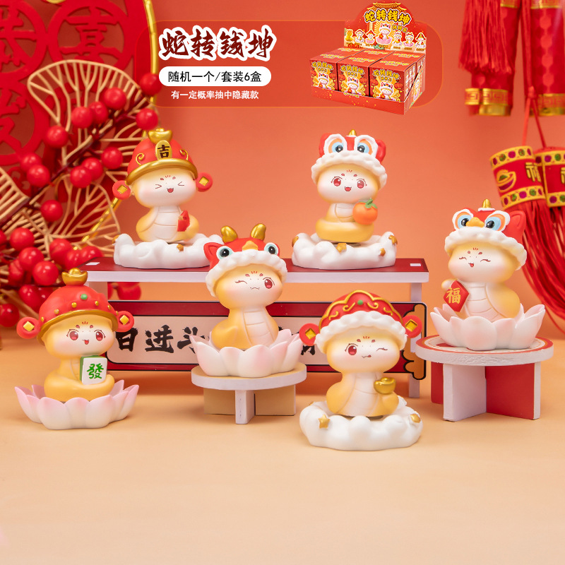 蛇转钱坤转转乐盲盒创意小蛇公仔批发 喜气手办玩偶 潮玩蛇年礼物