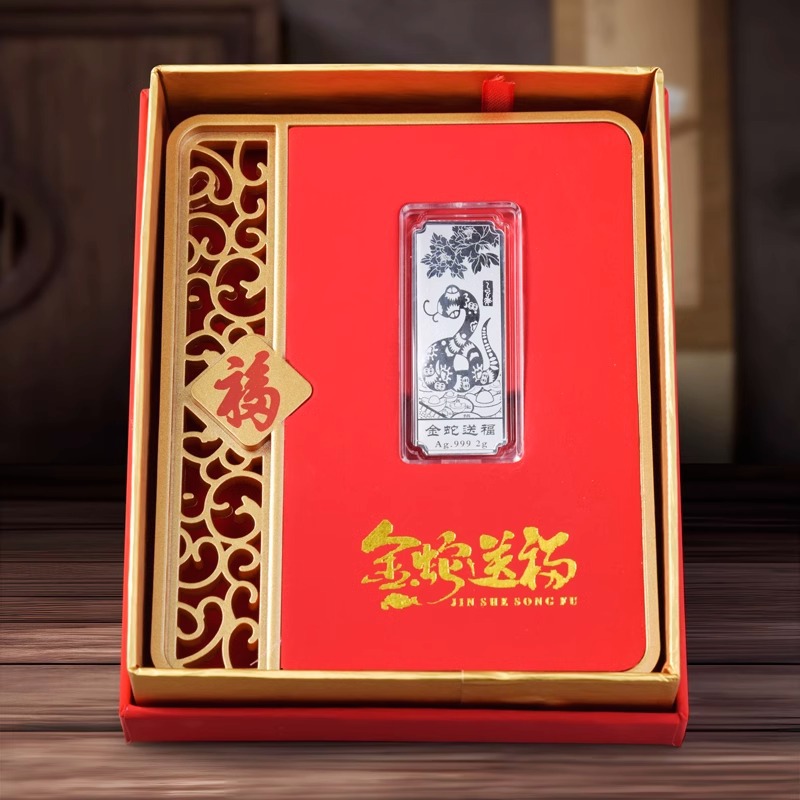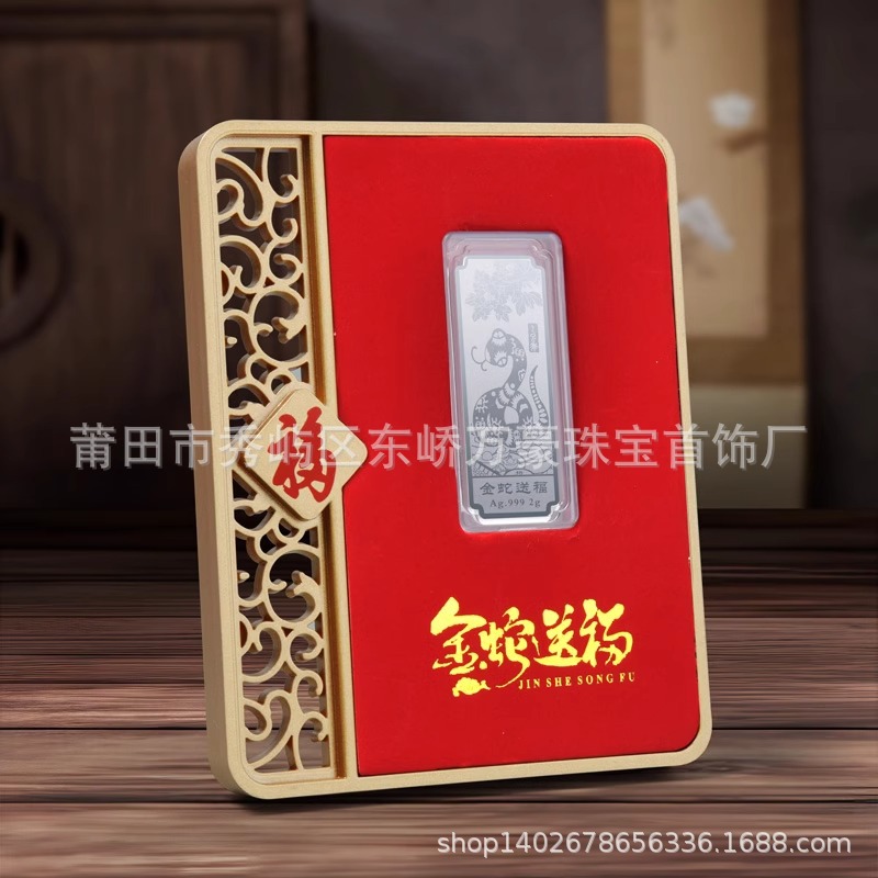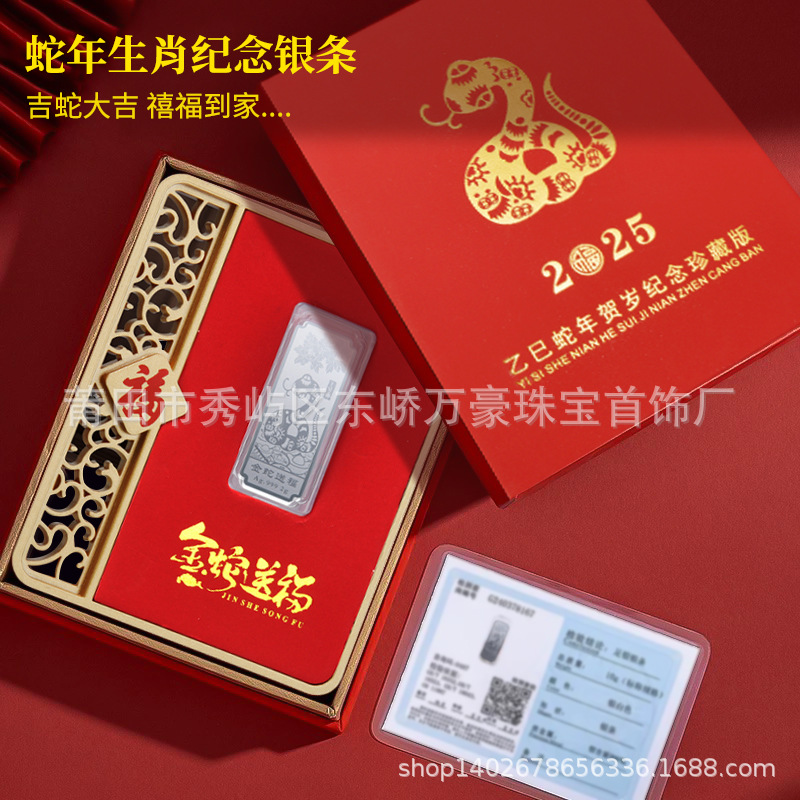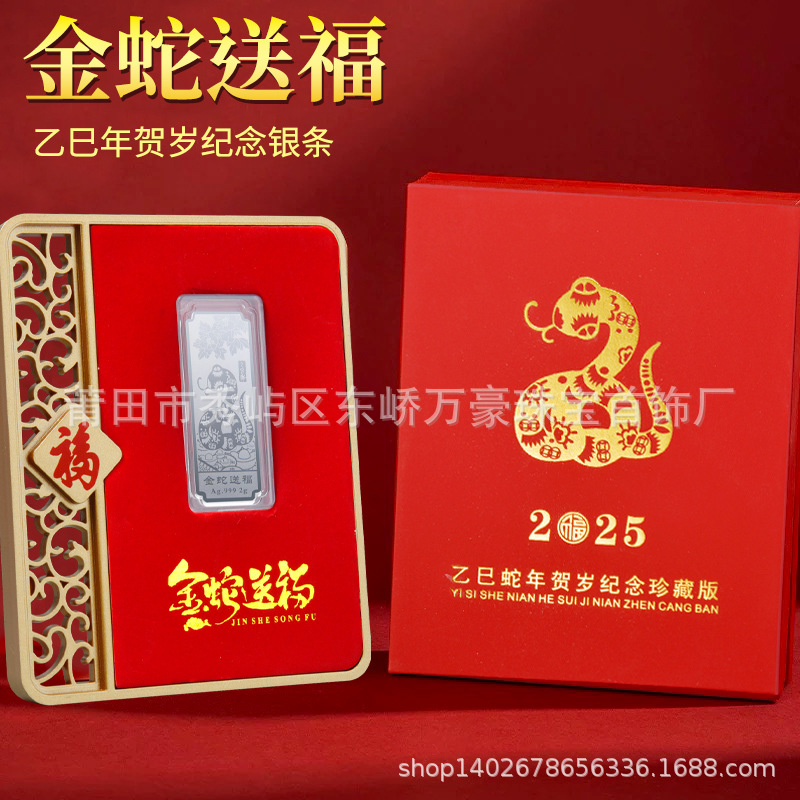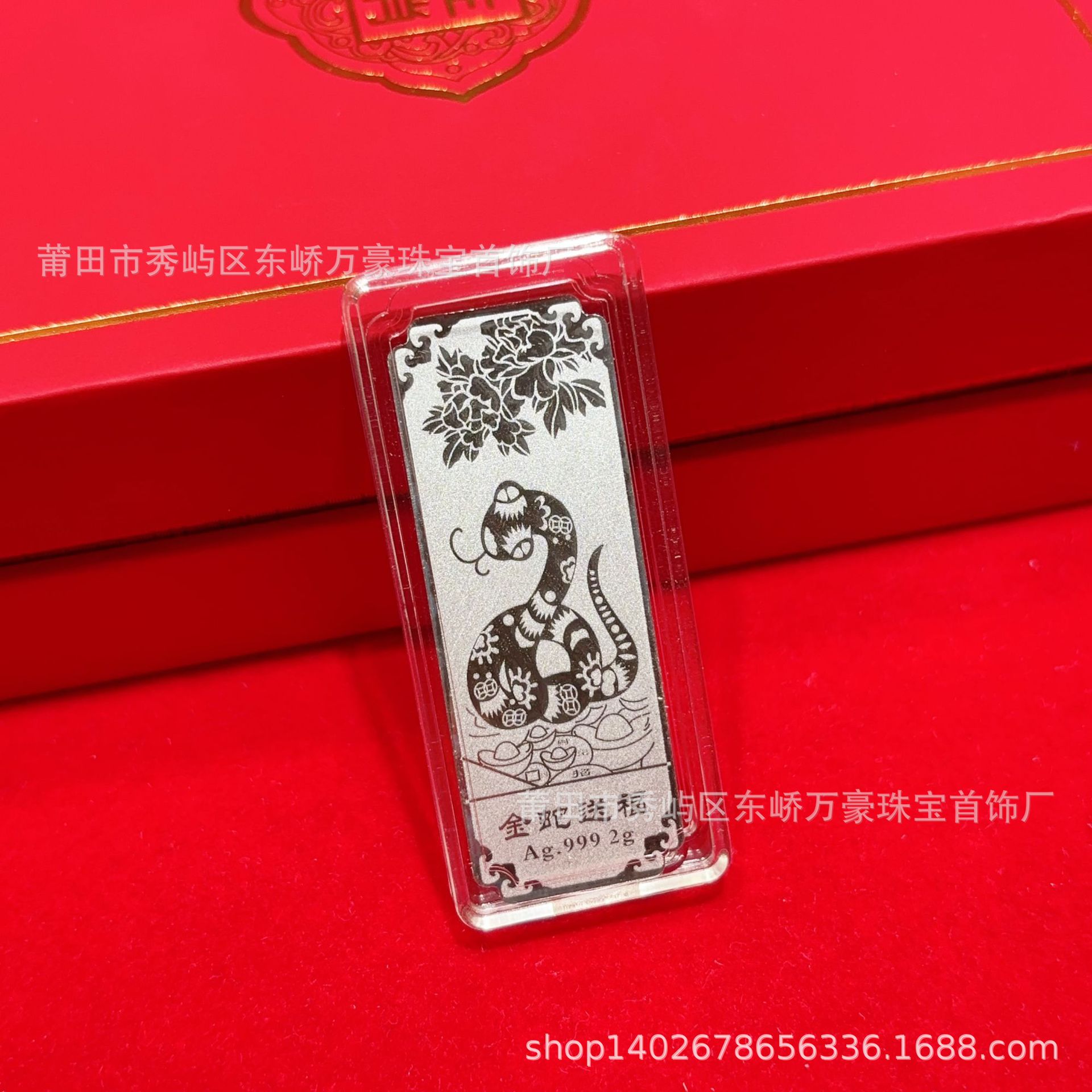 2025蛇年生肖蛇贺岁2克纯银银条摆件开门红纯银保险新年活动礼品