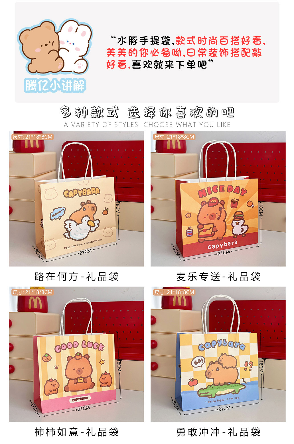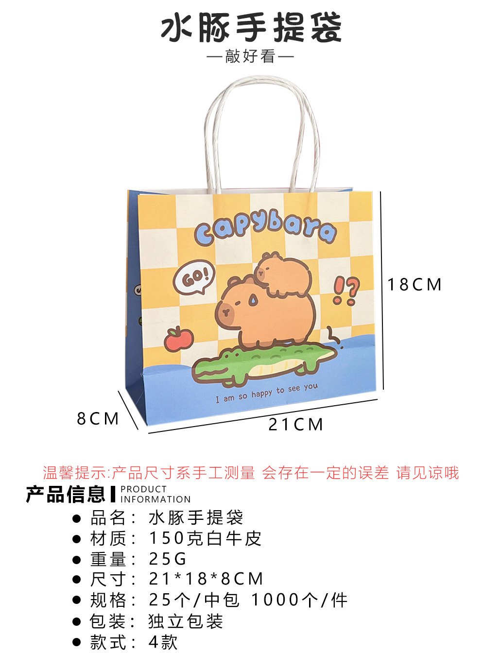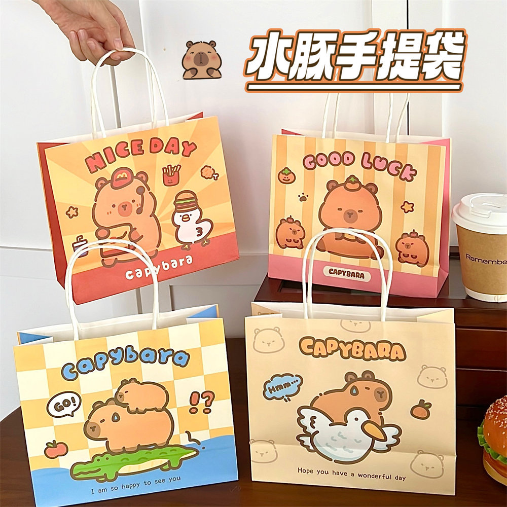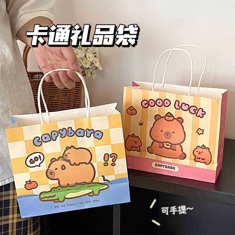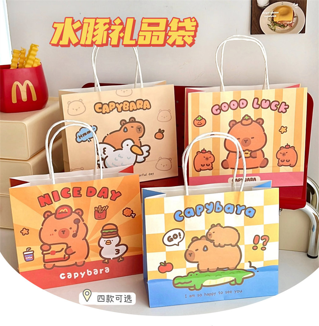 原创可爱水豚礼品袋便携手提礼物包装袋创意纸袋购物袋礼物袋